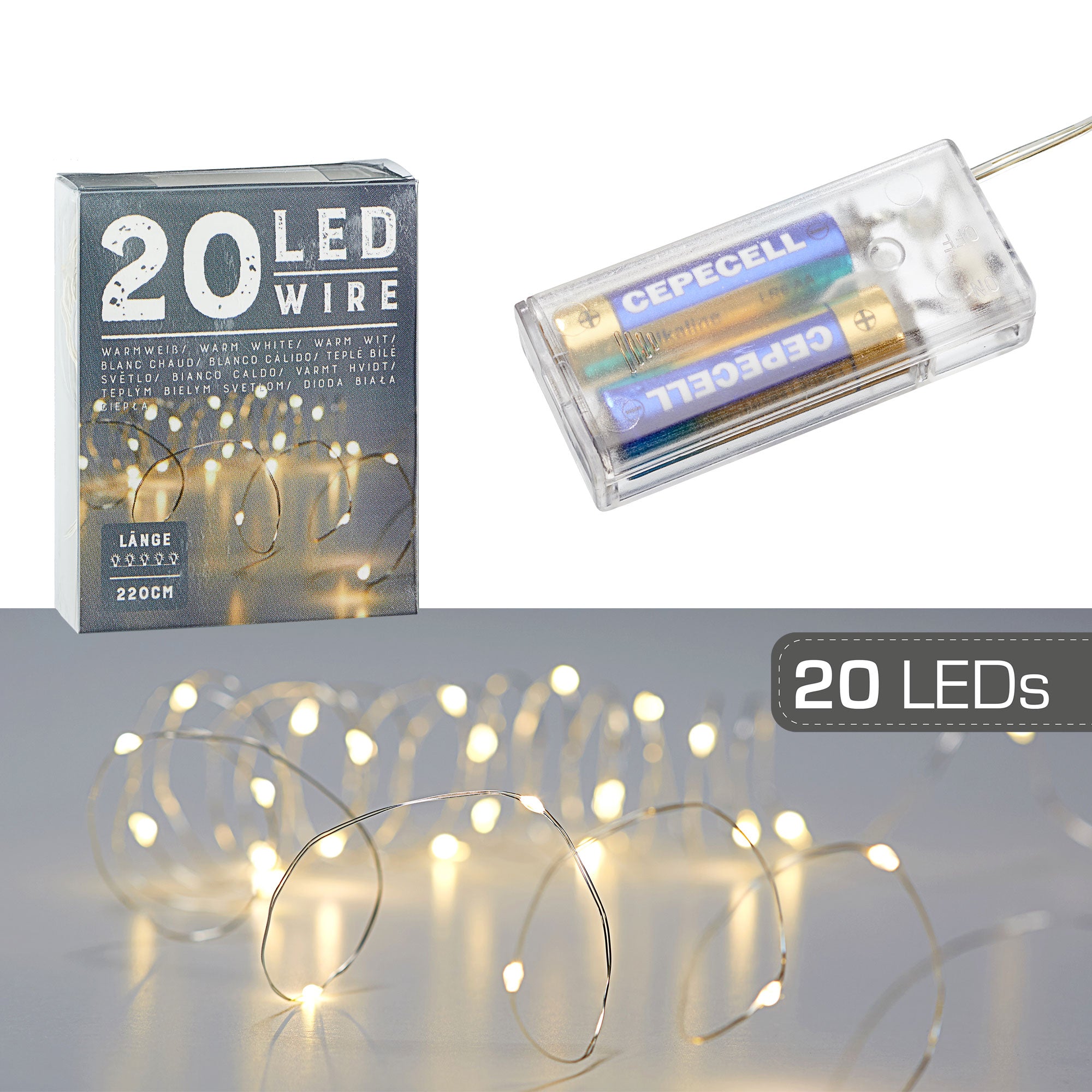 Mikro Lichterkette Draht 20 LEDs L220cm warmweiß Leuchtdraht Lichterdraht