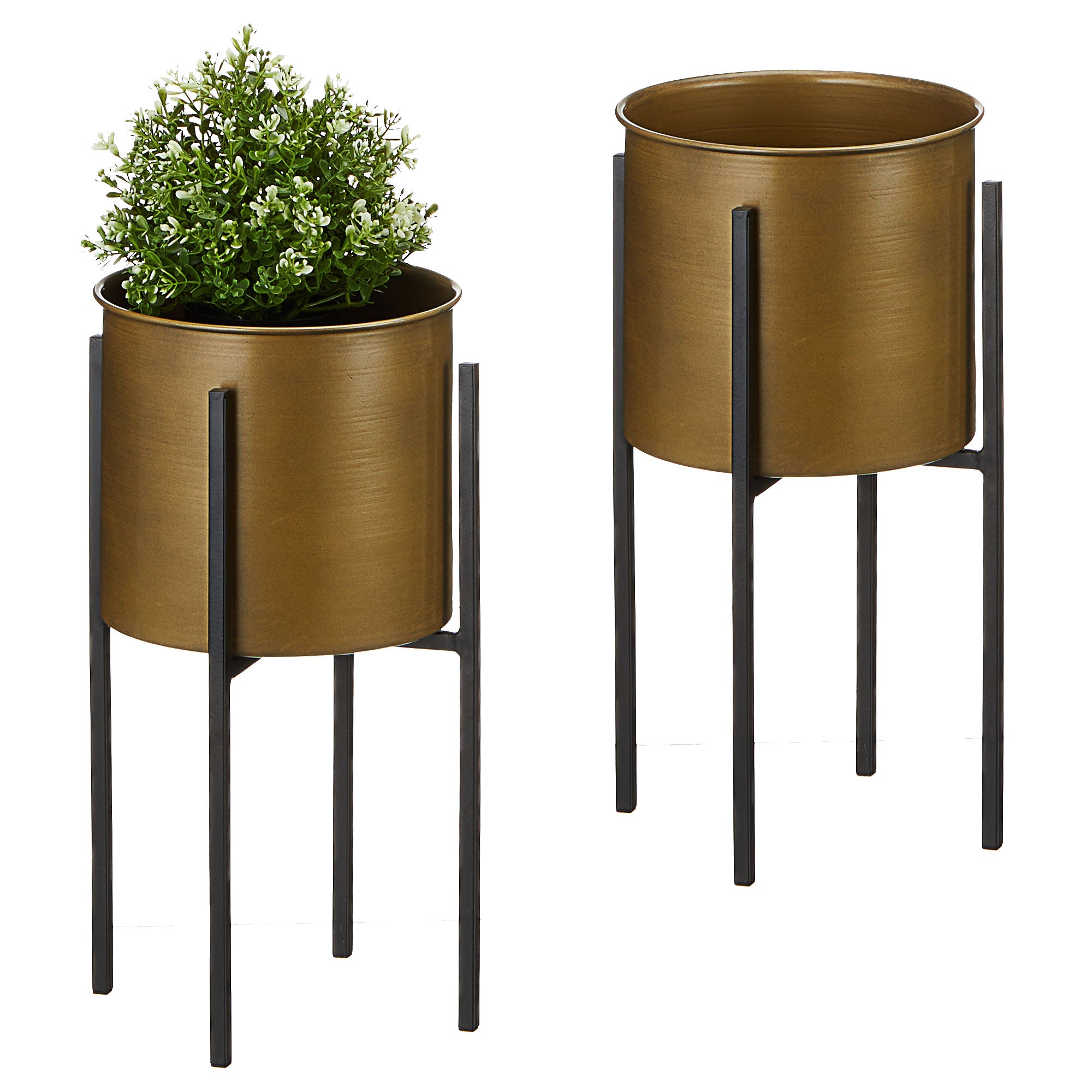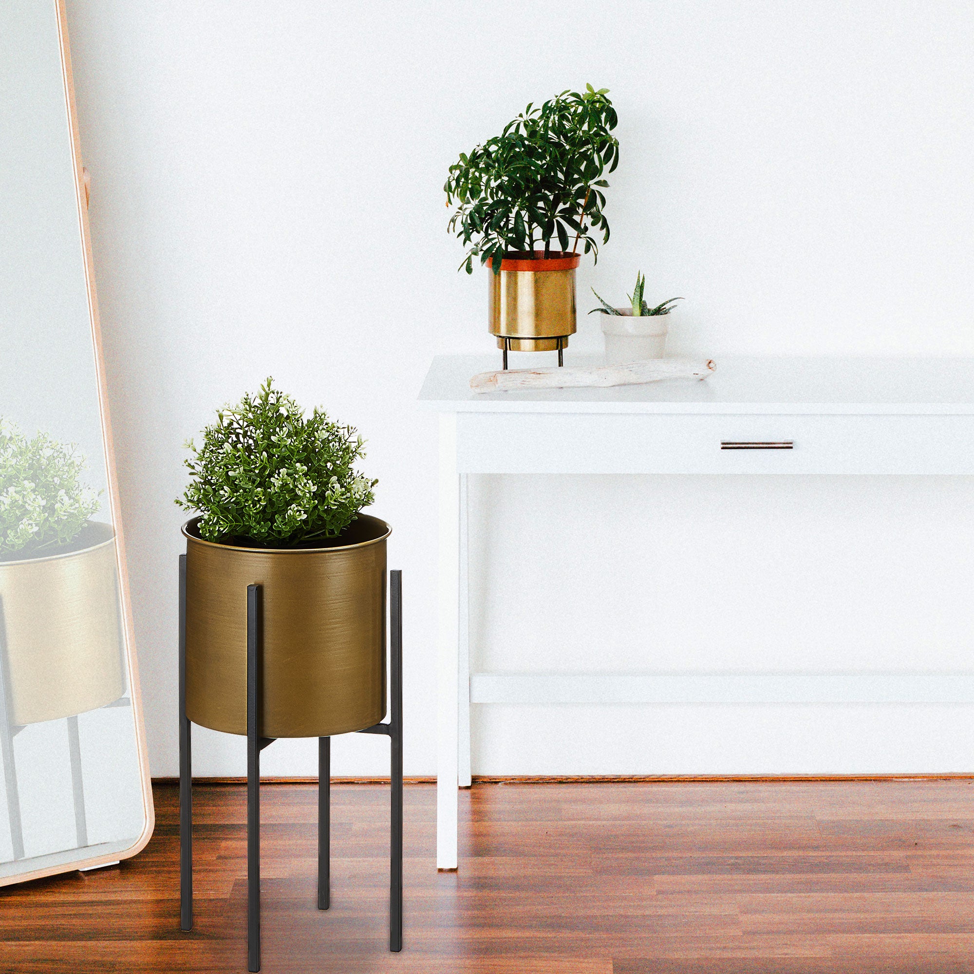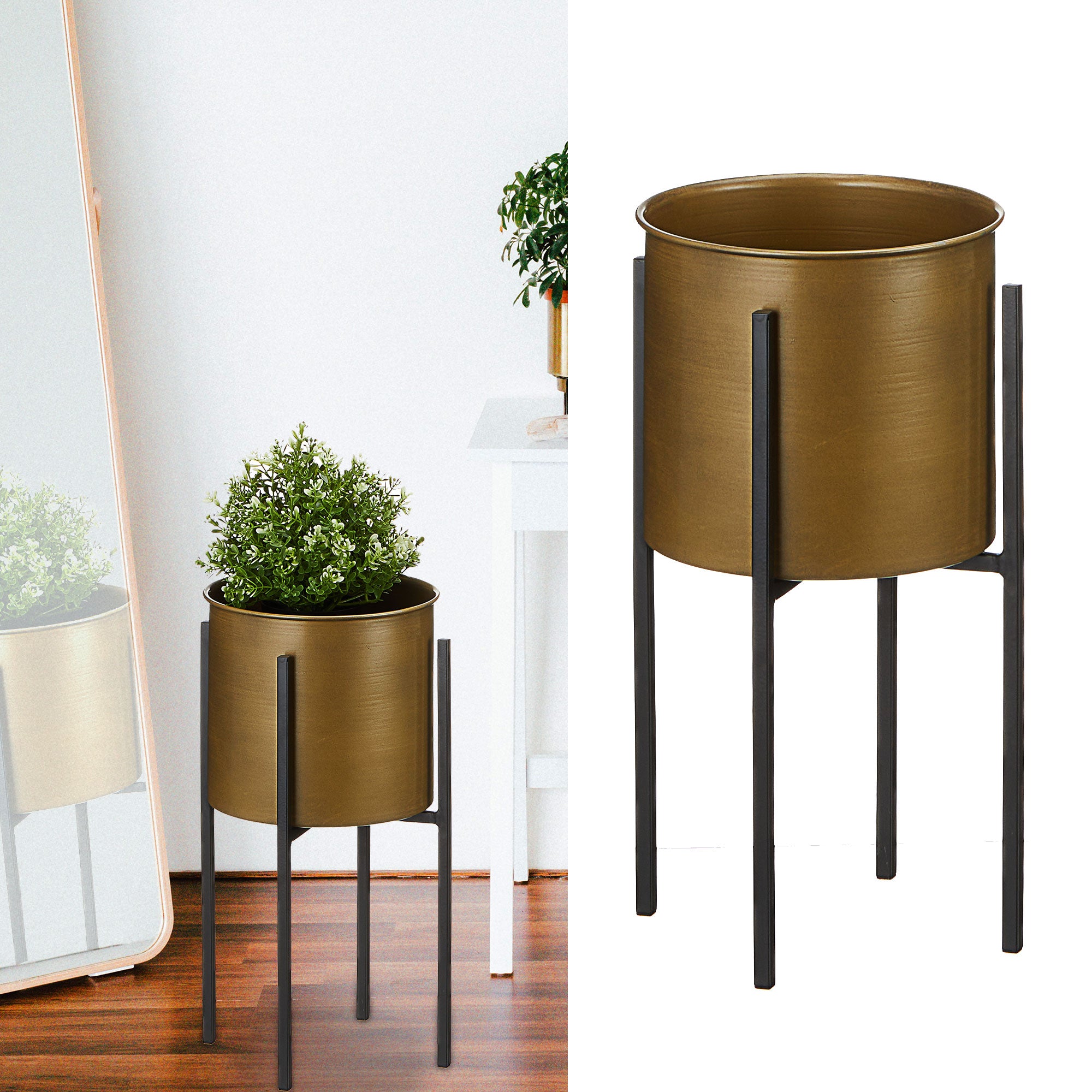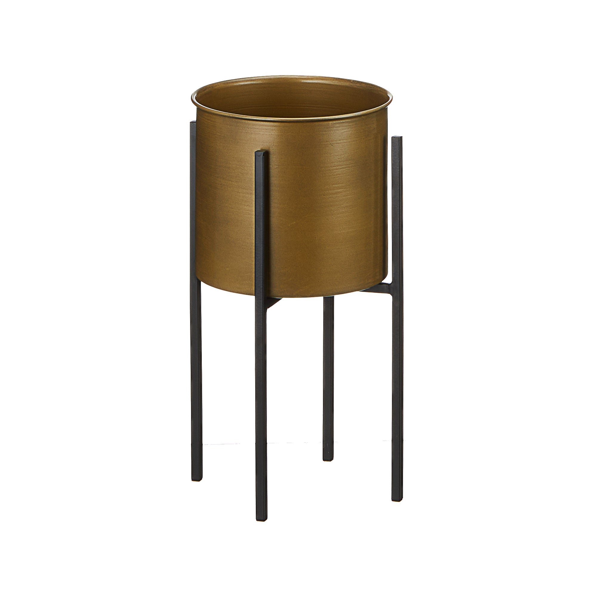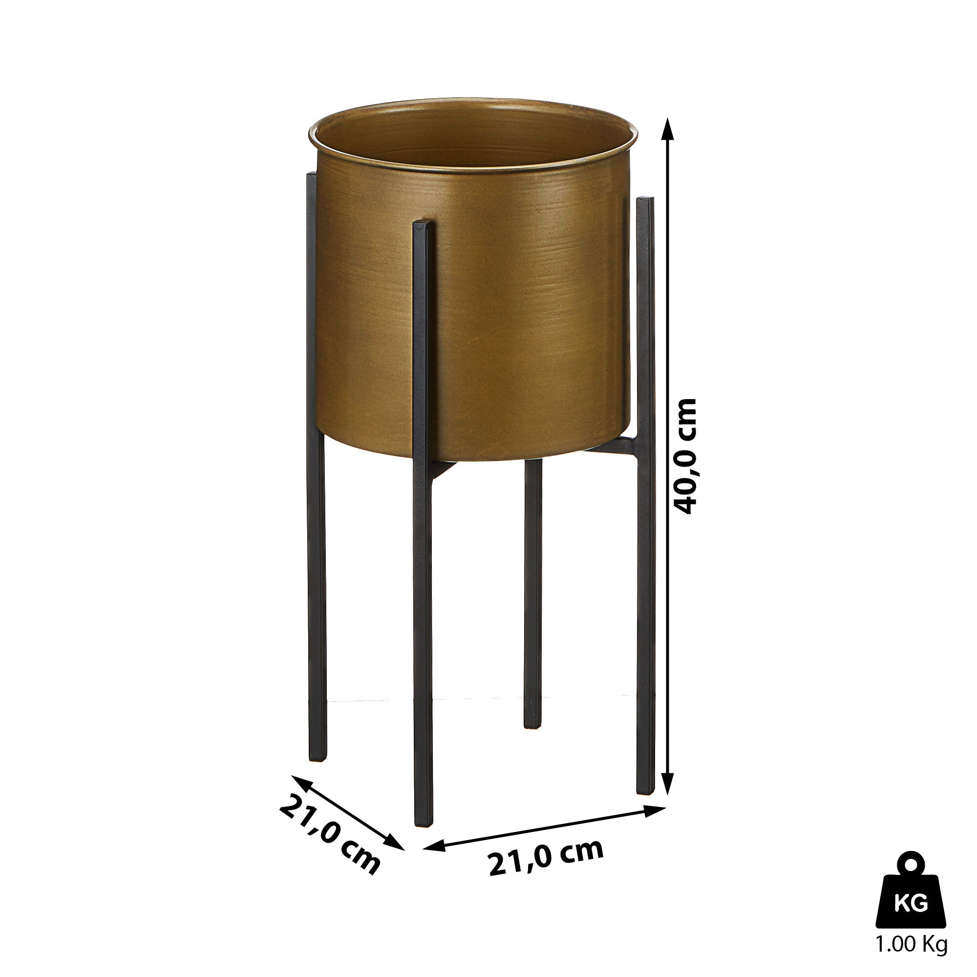 | Goldener Pflanzkübel auf schwarzem Gestell | ||||||||||||