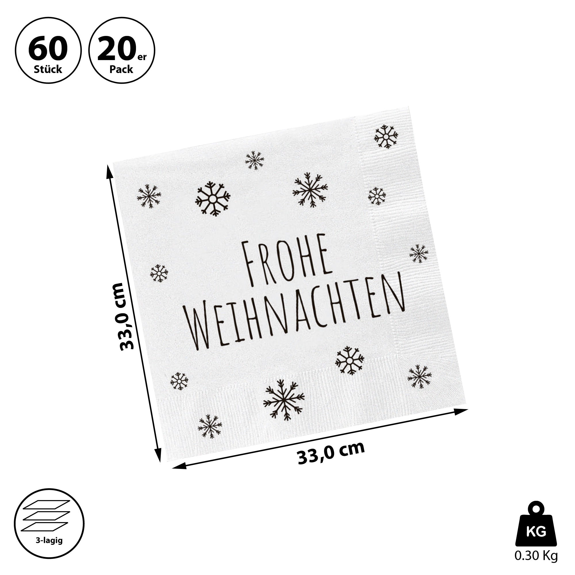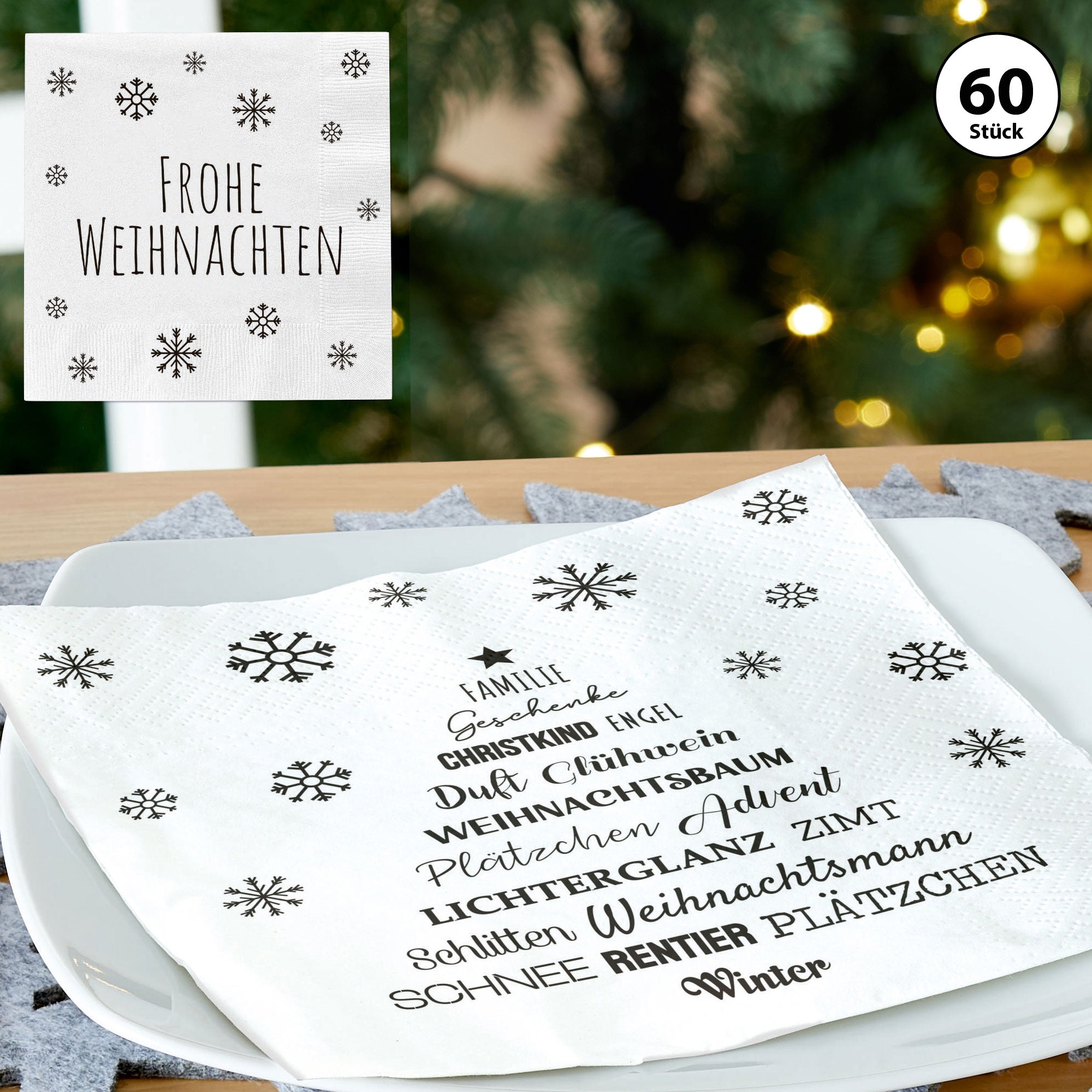Servietten "Christmastree" weiß 60er Set 3lagig Papierserviette Motivserviette stoffähnlich Tuch