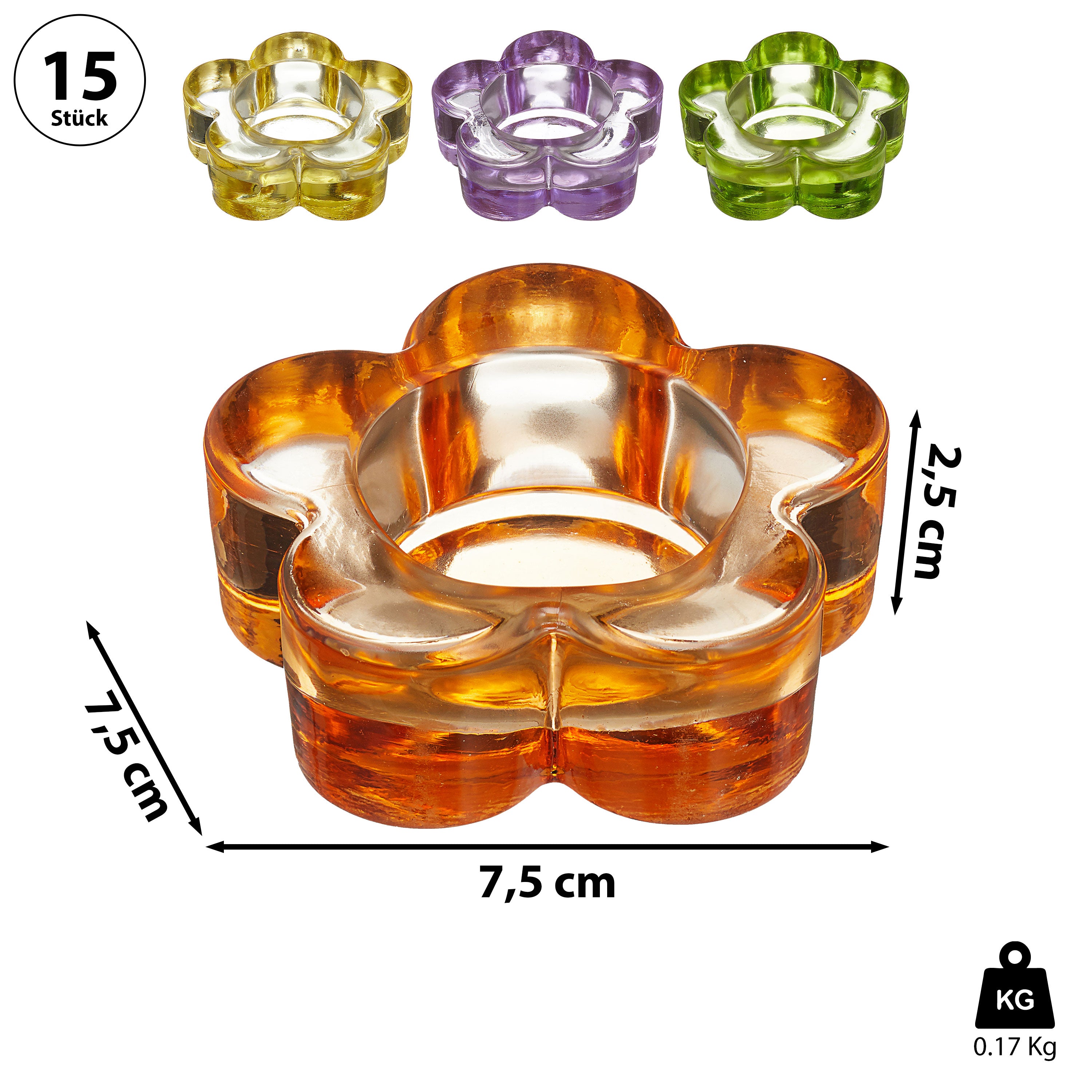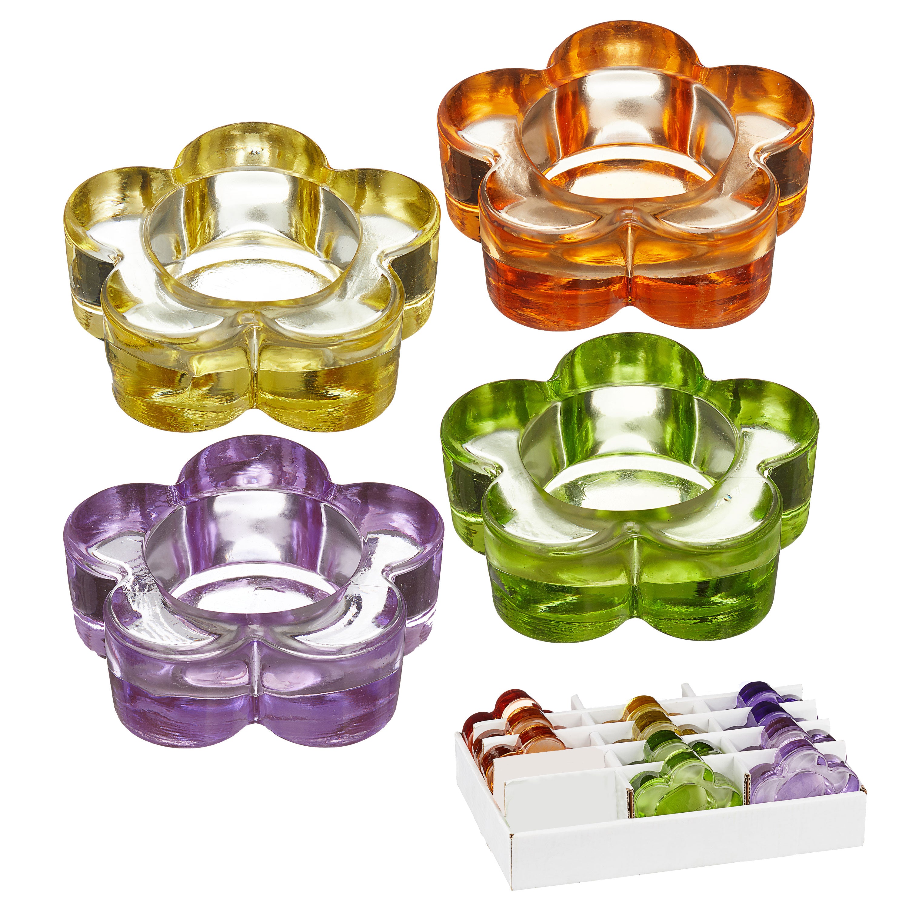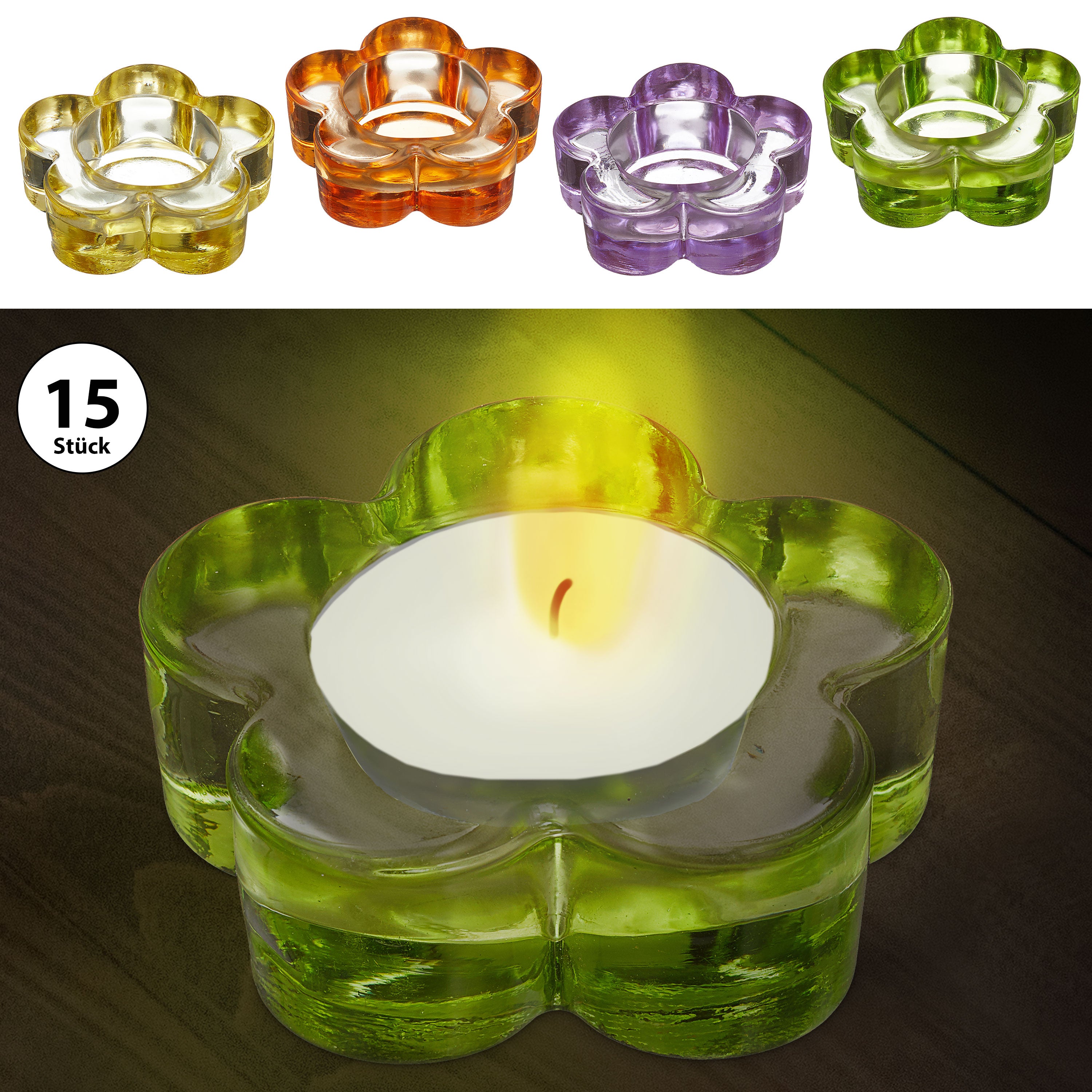 Teelichthalter Blume 15 Stück Display bunt sortiert 4 Farben Windlicht Teelicht Kerze Kerzenständer