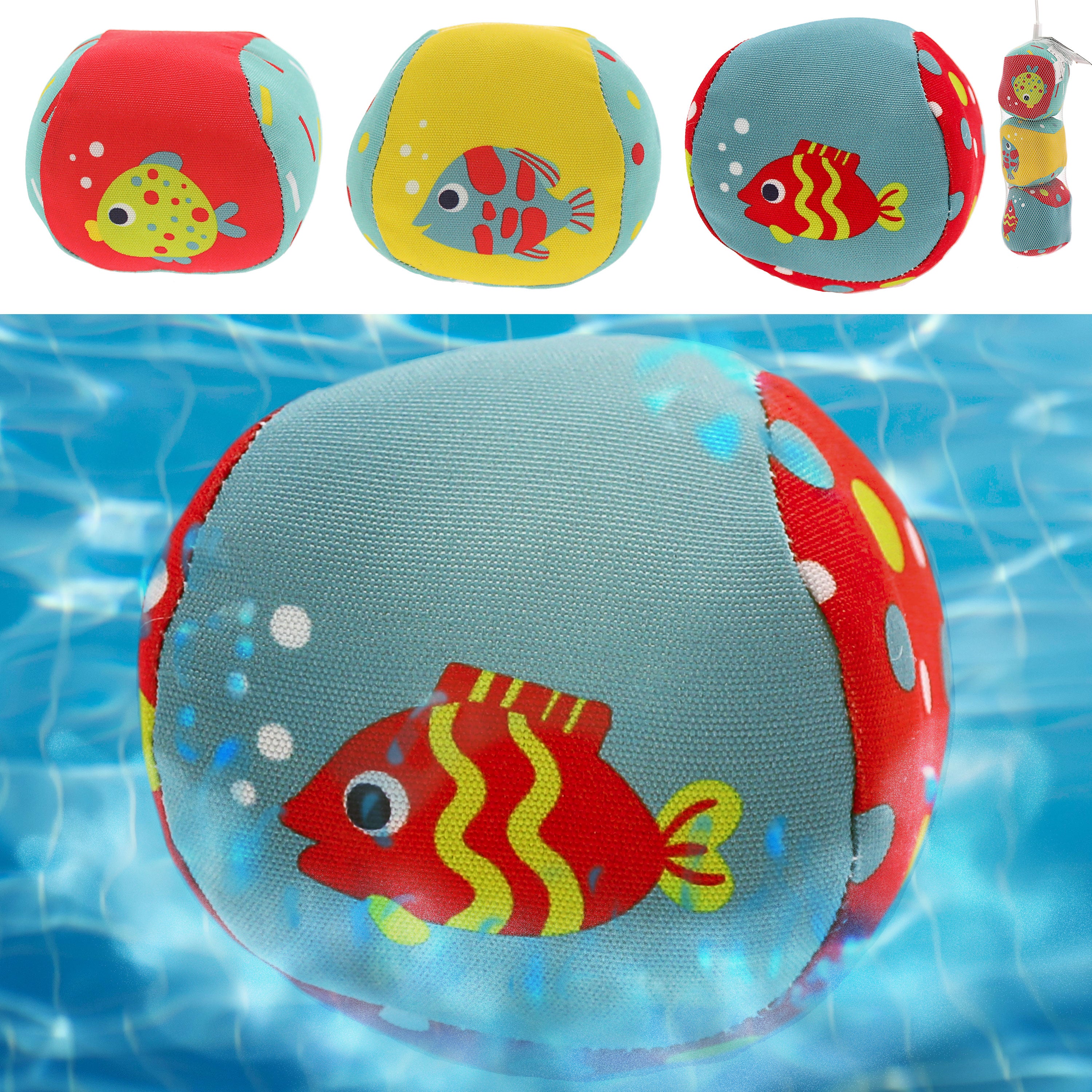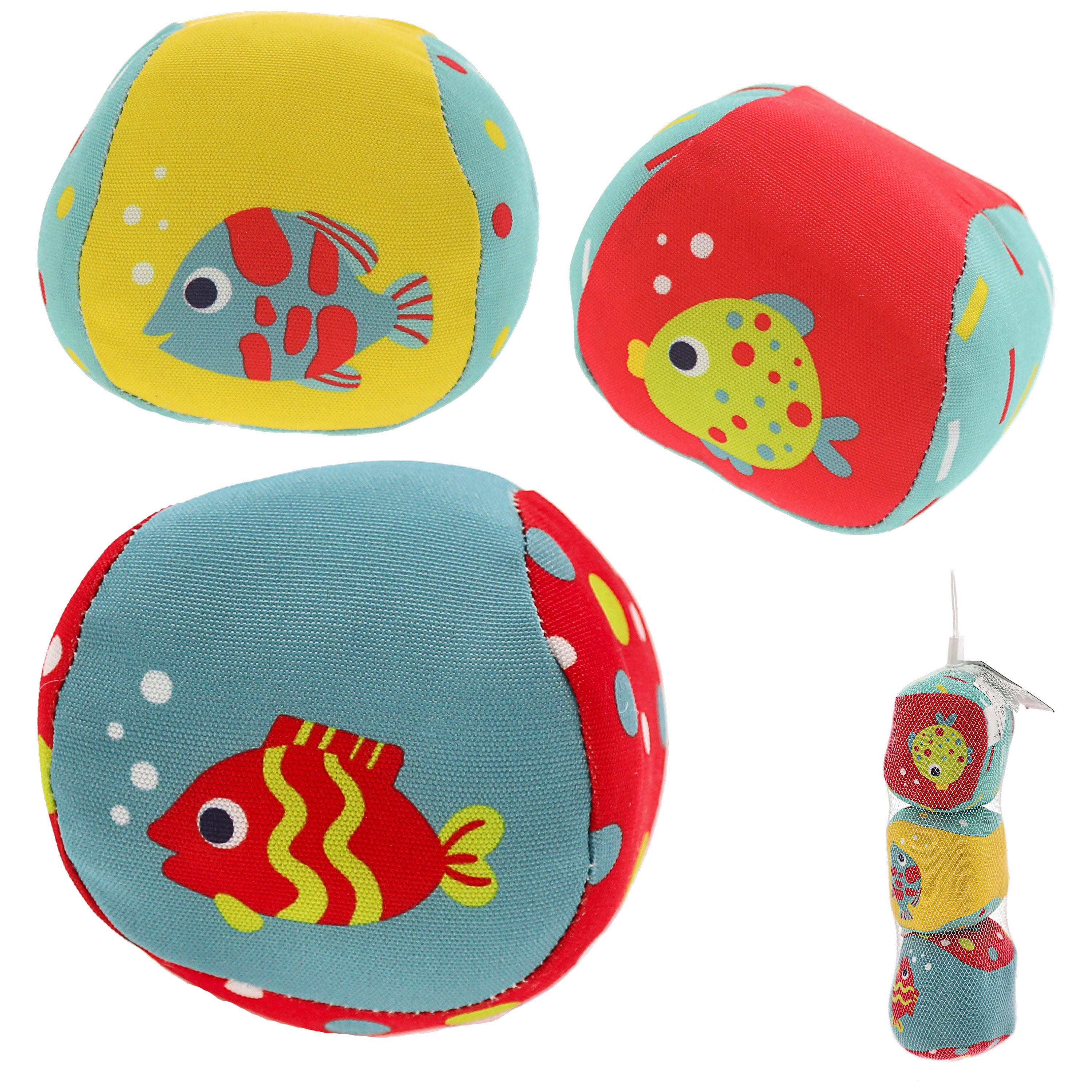Wasserballset 3-tlg Bälle im Netz Ø7cm Polyester bunt Ball Fische Wasserspielzeug Wasserball