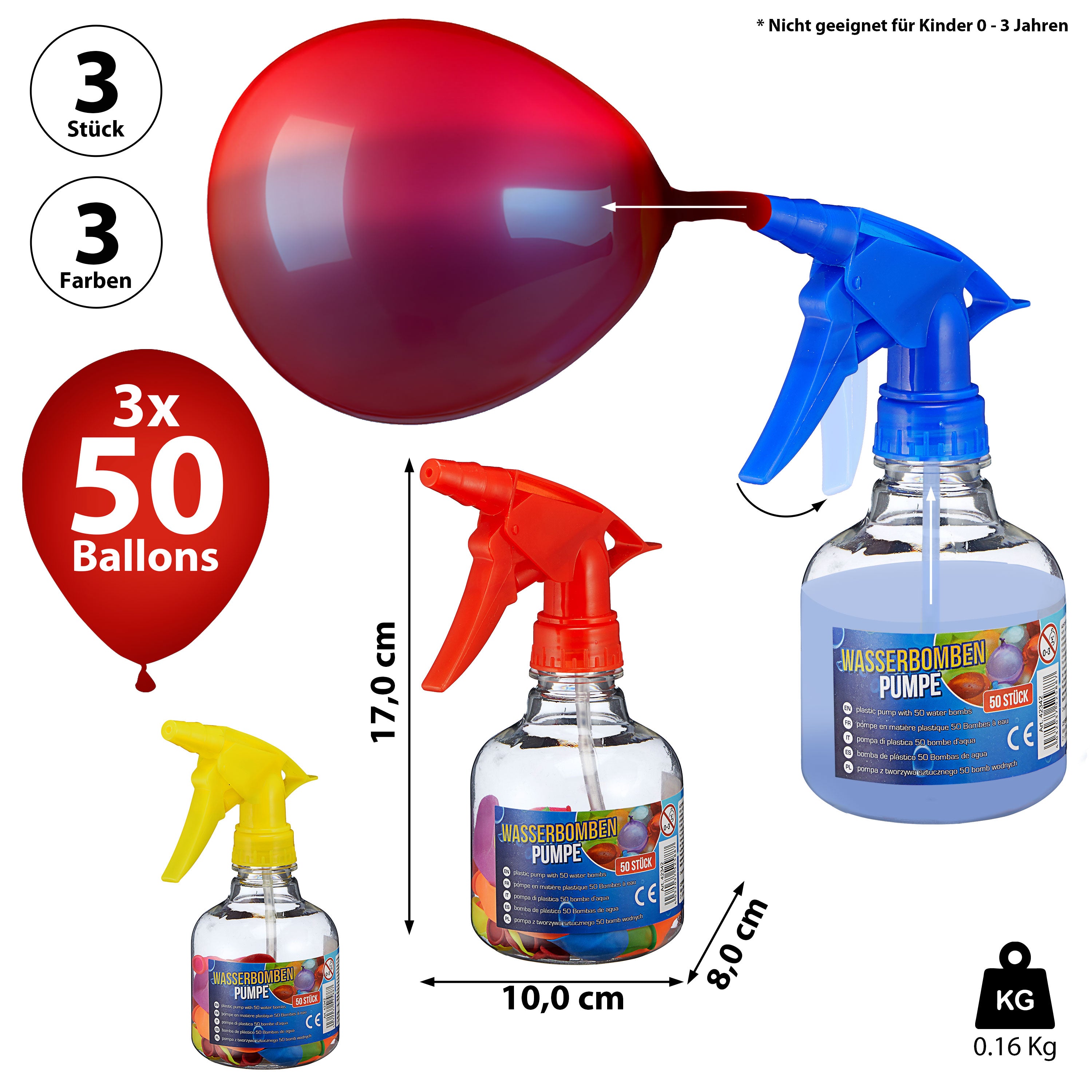 | 3er Set Wasserbomben-Pumpe 3 x 50 Wasserbomben | ||||||||||||