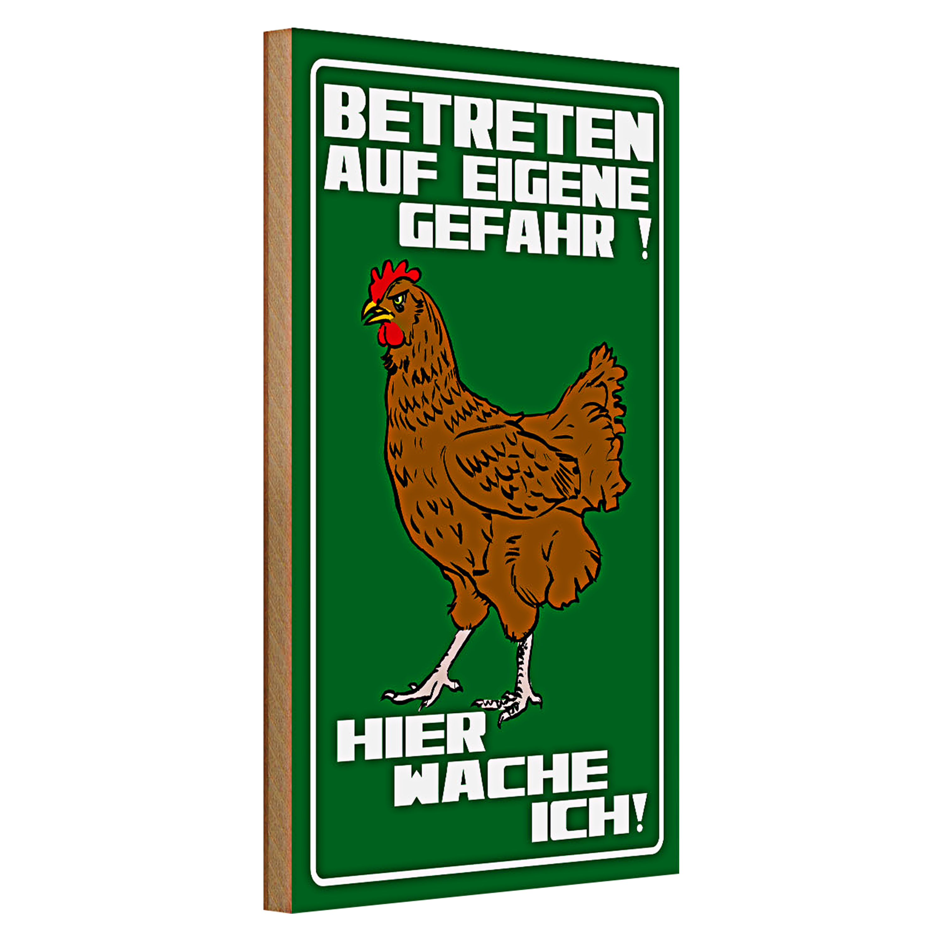 Holzschild Spruch Hinweis 20x30cm Betreten auf eigene Gefahr Hahn