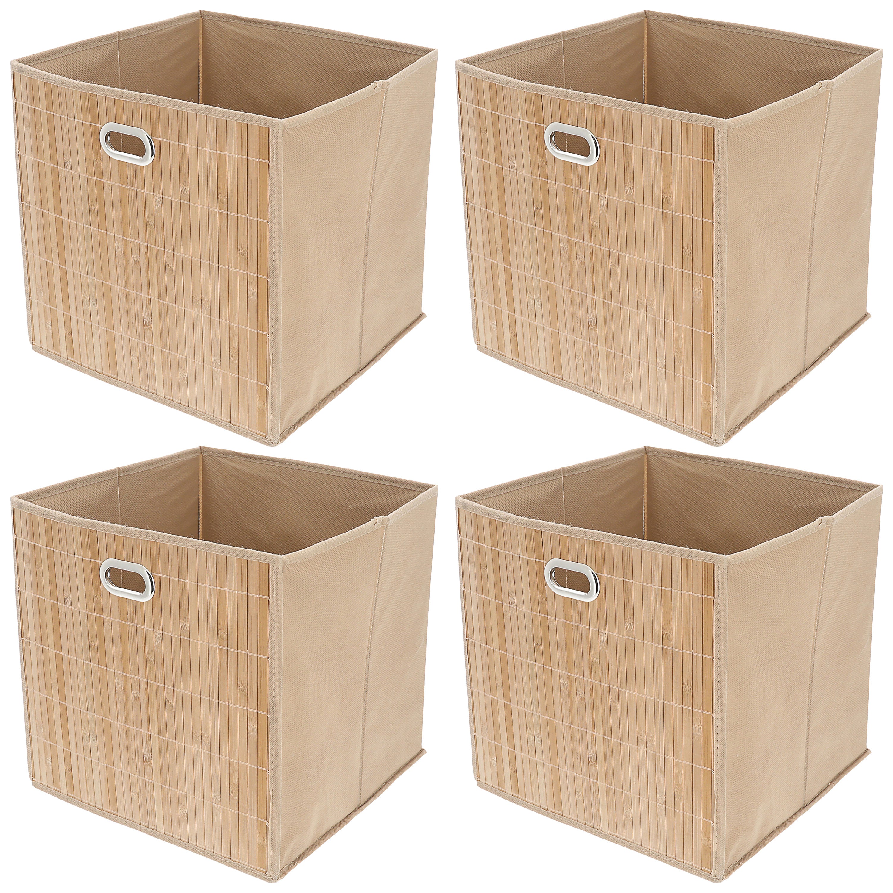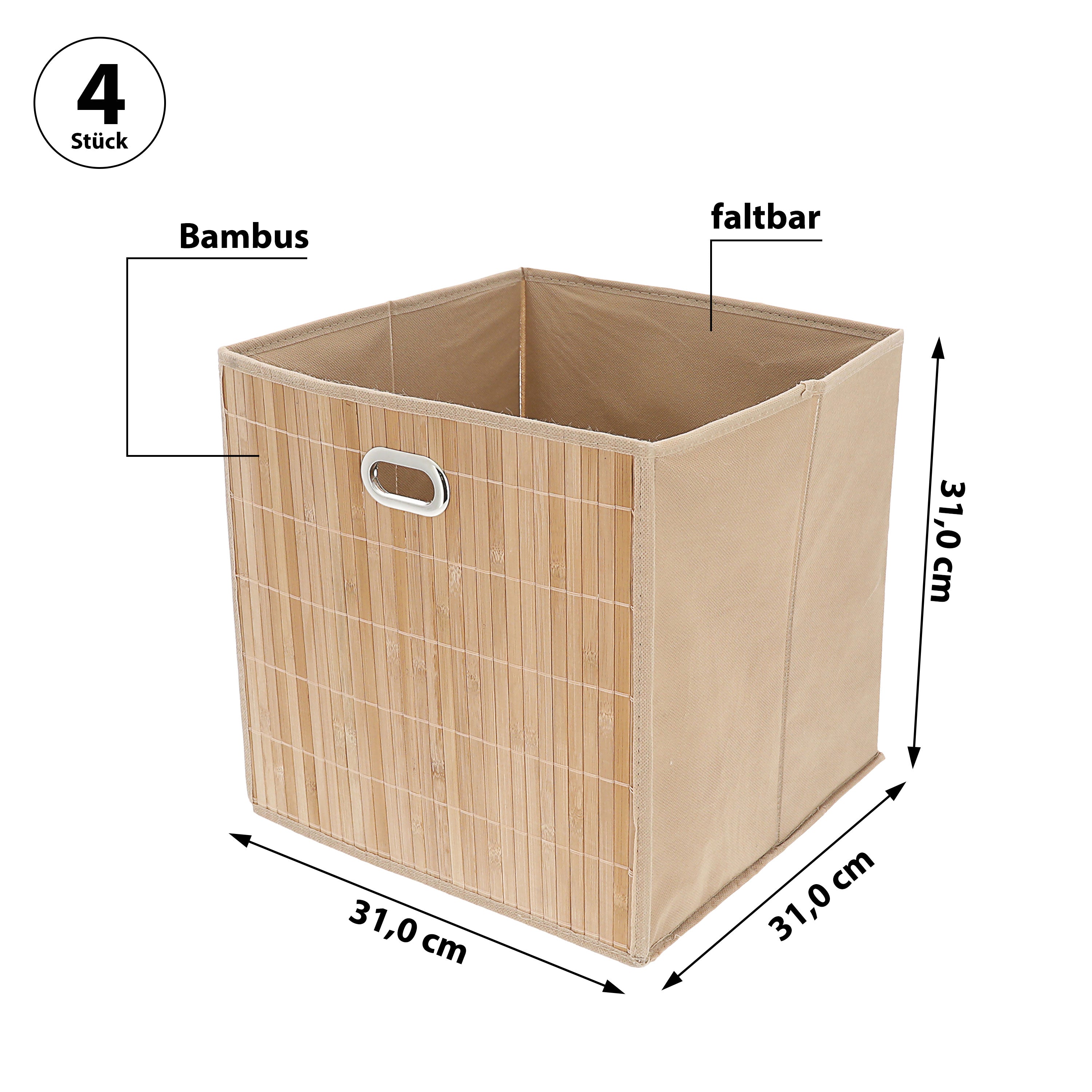 Aufbewahrungskorb Bambus 4er Set faltbar quadratisch 31x31x31cm Metall Grifflöcher Utensilienkorb Badezimmerkorb Bambusbox Faltkorb