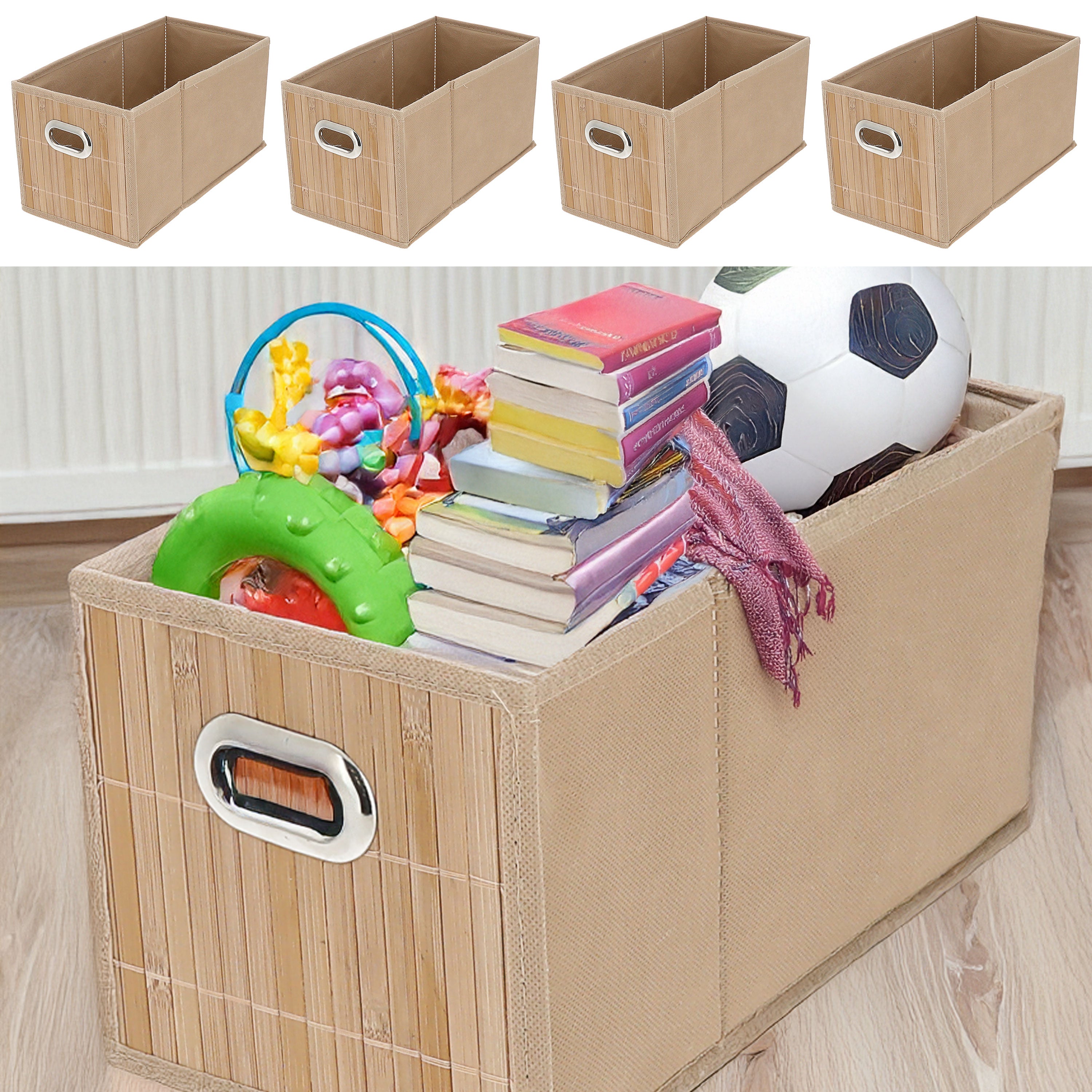 Aufbewahrungskorb Bambus 4er Set faltbar rechteckig 16x16x31cm Metall Grifflöcher Utensilienkorb Badezimmerkorb Bambusbox Faltkorb