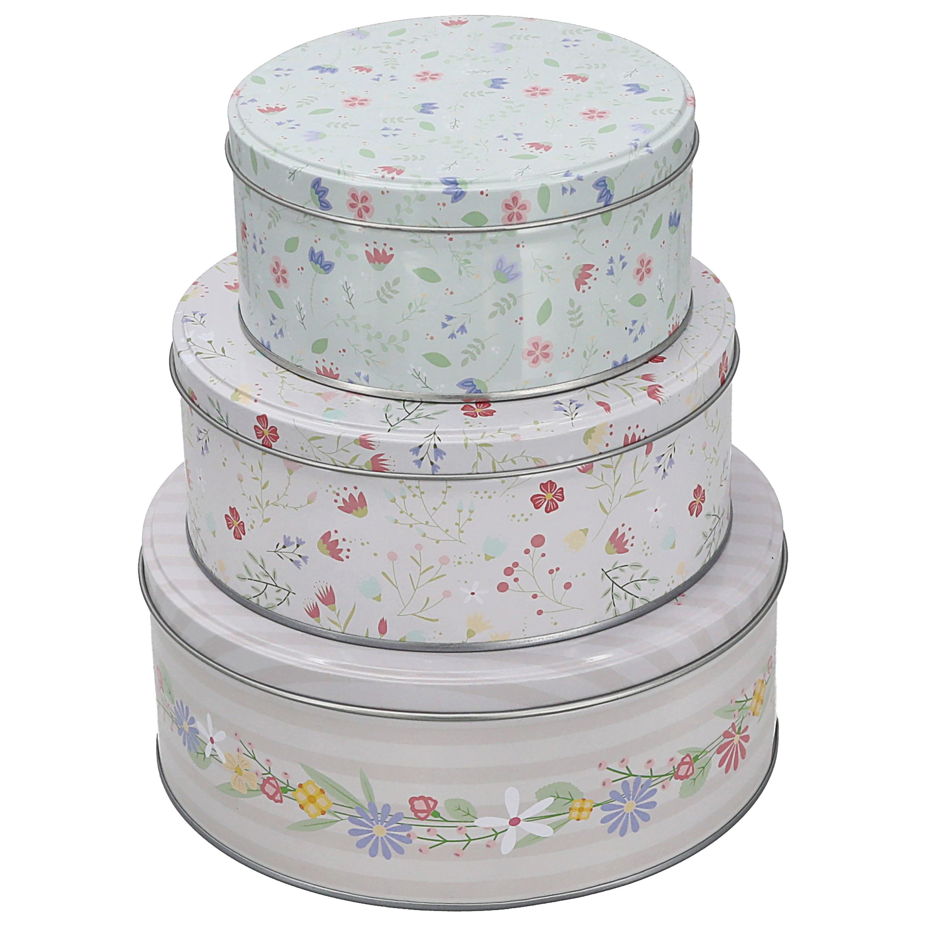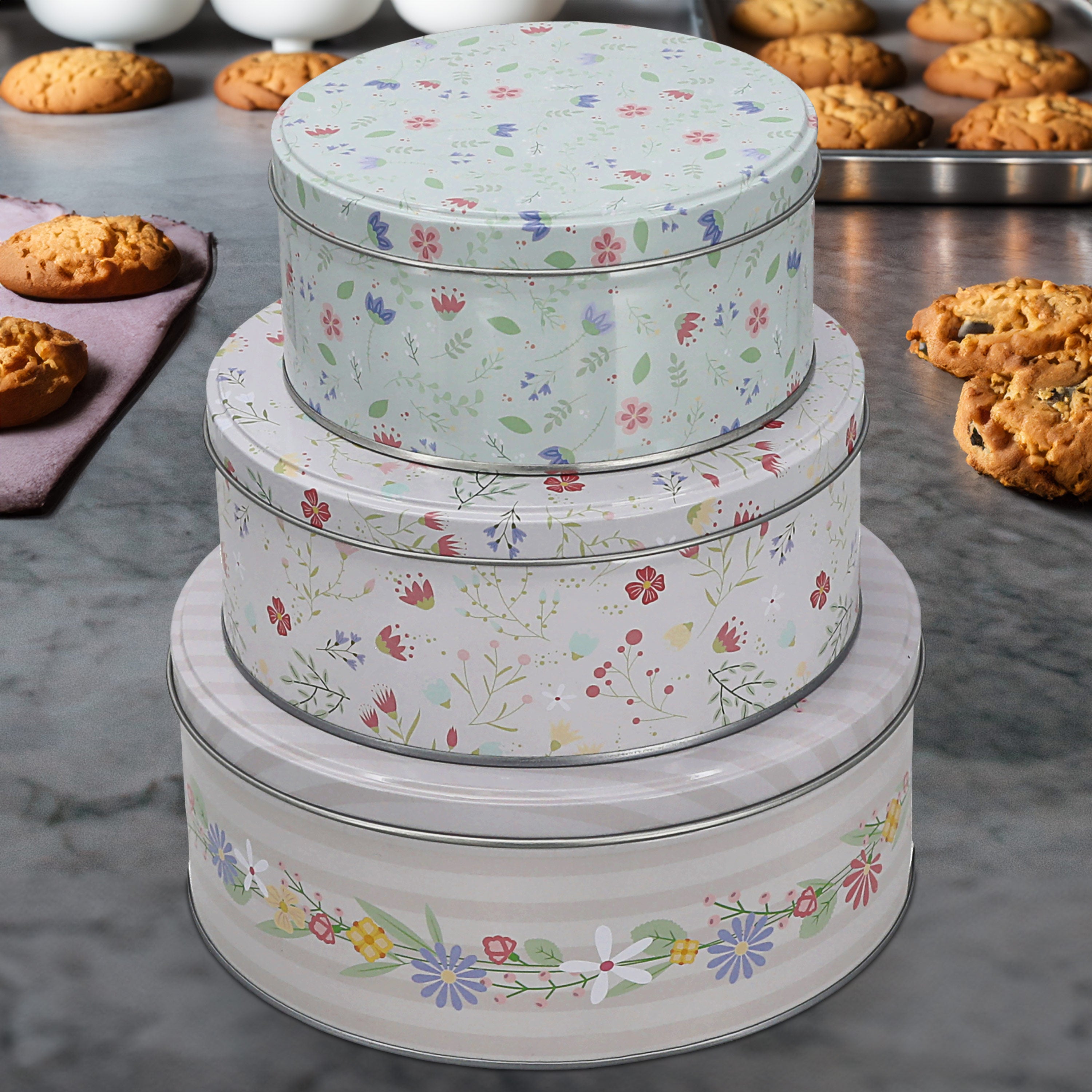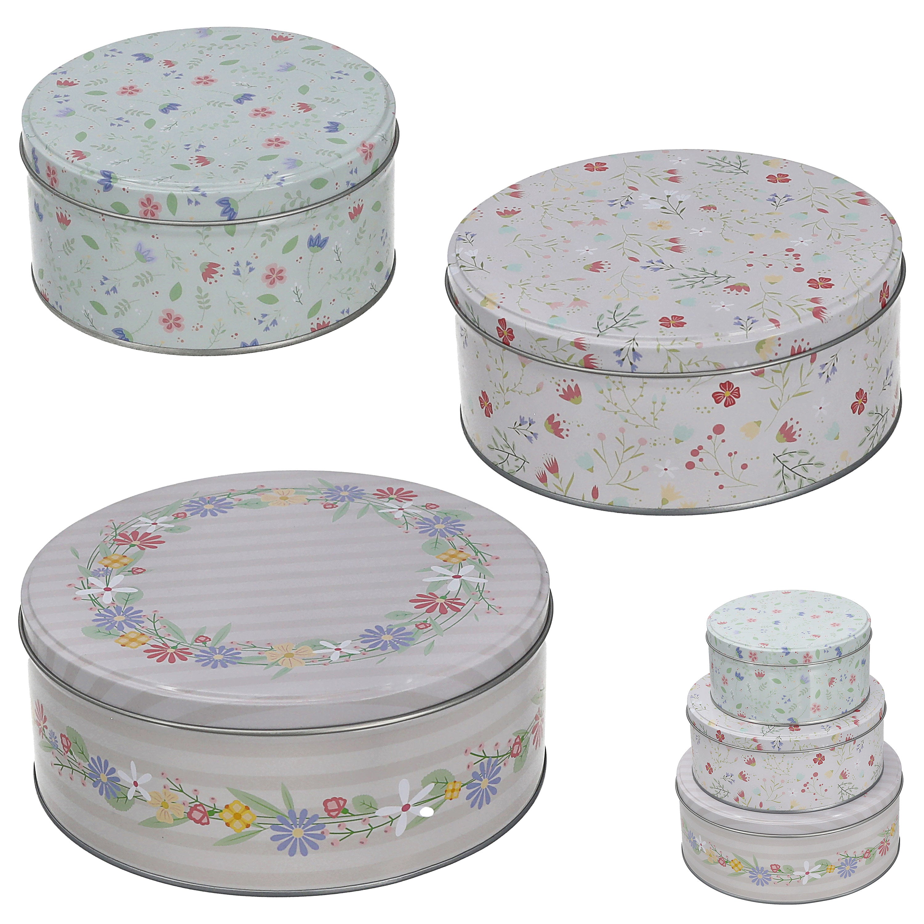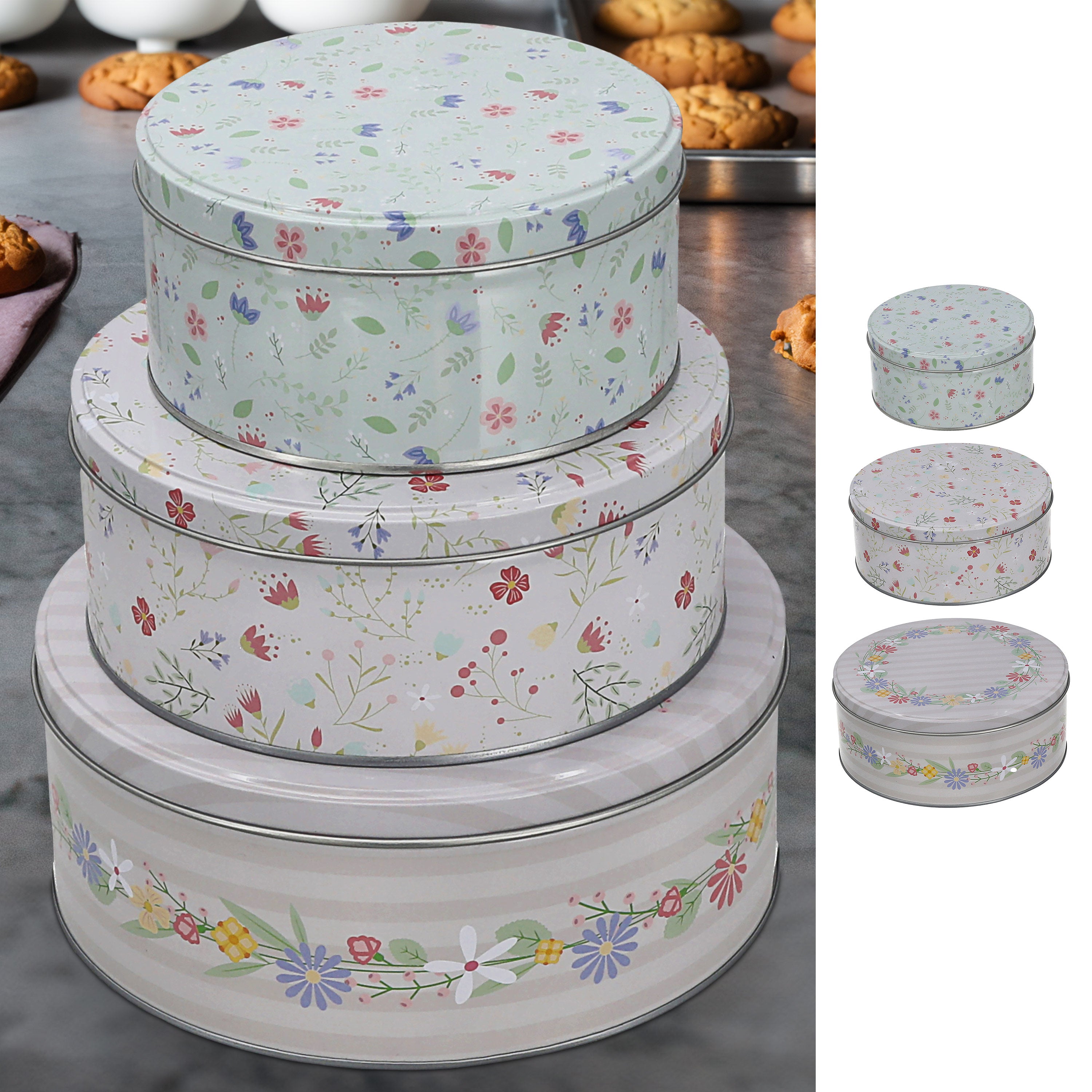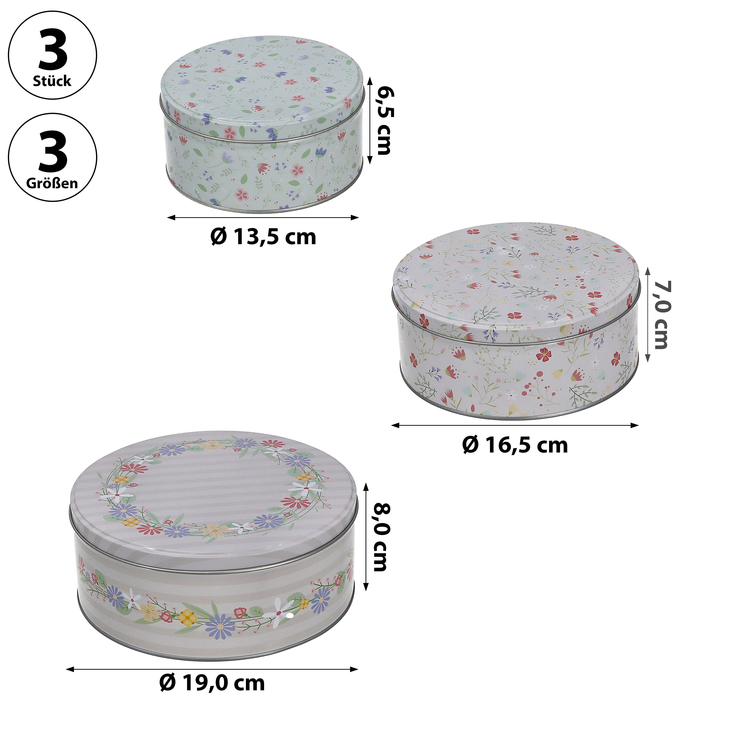 Gebäckdosen florale Muster 3er Set 3 Größen Metall rund Aufbewahrung Keksdose mit Deckel Blumenmuster