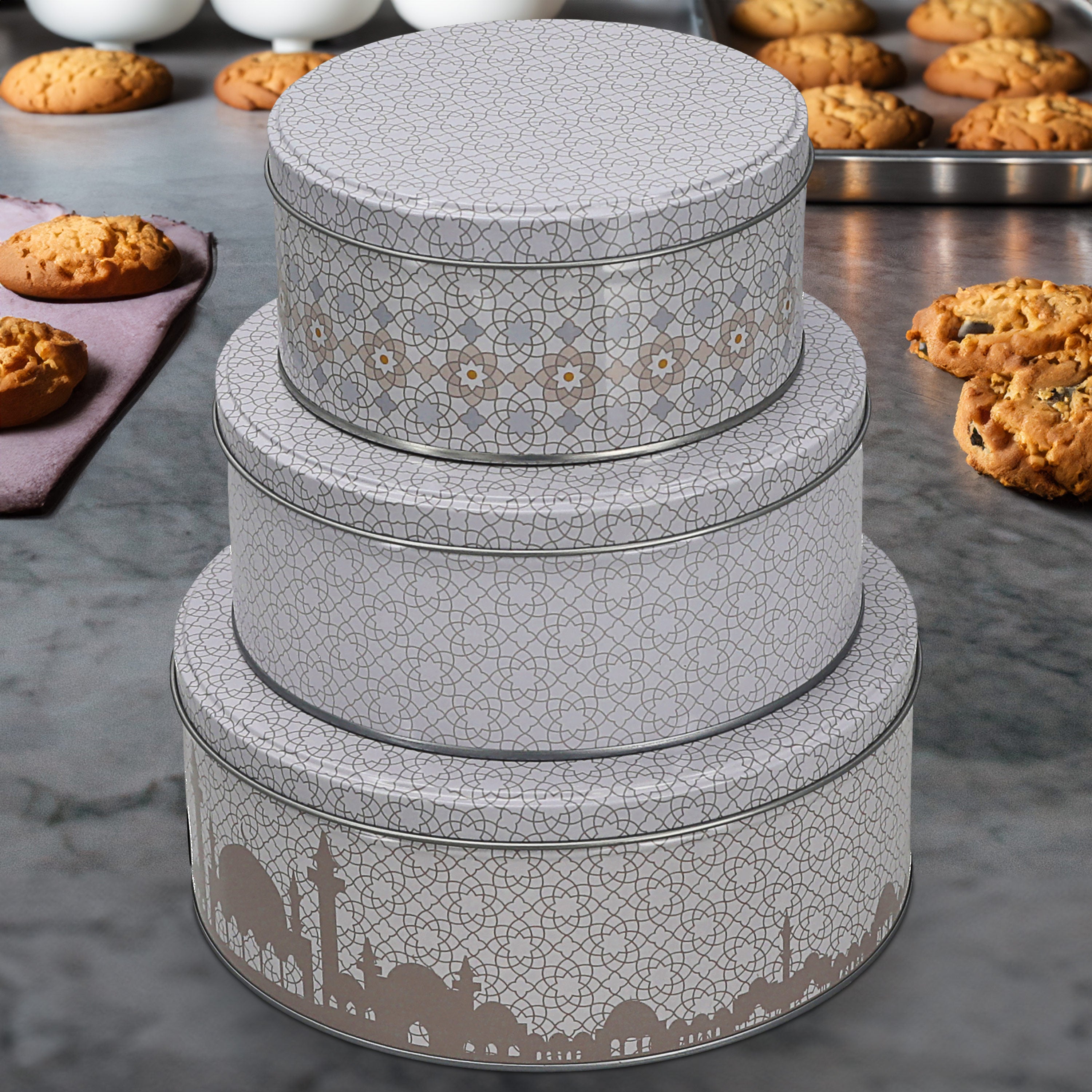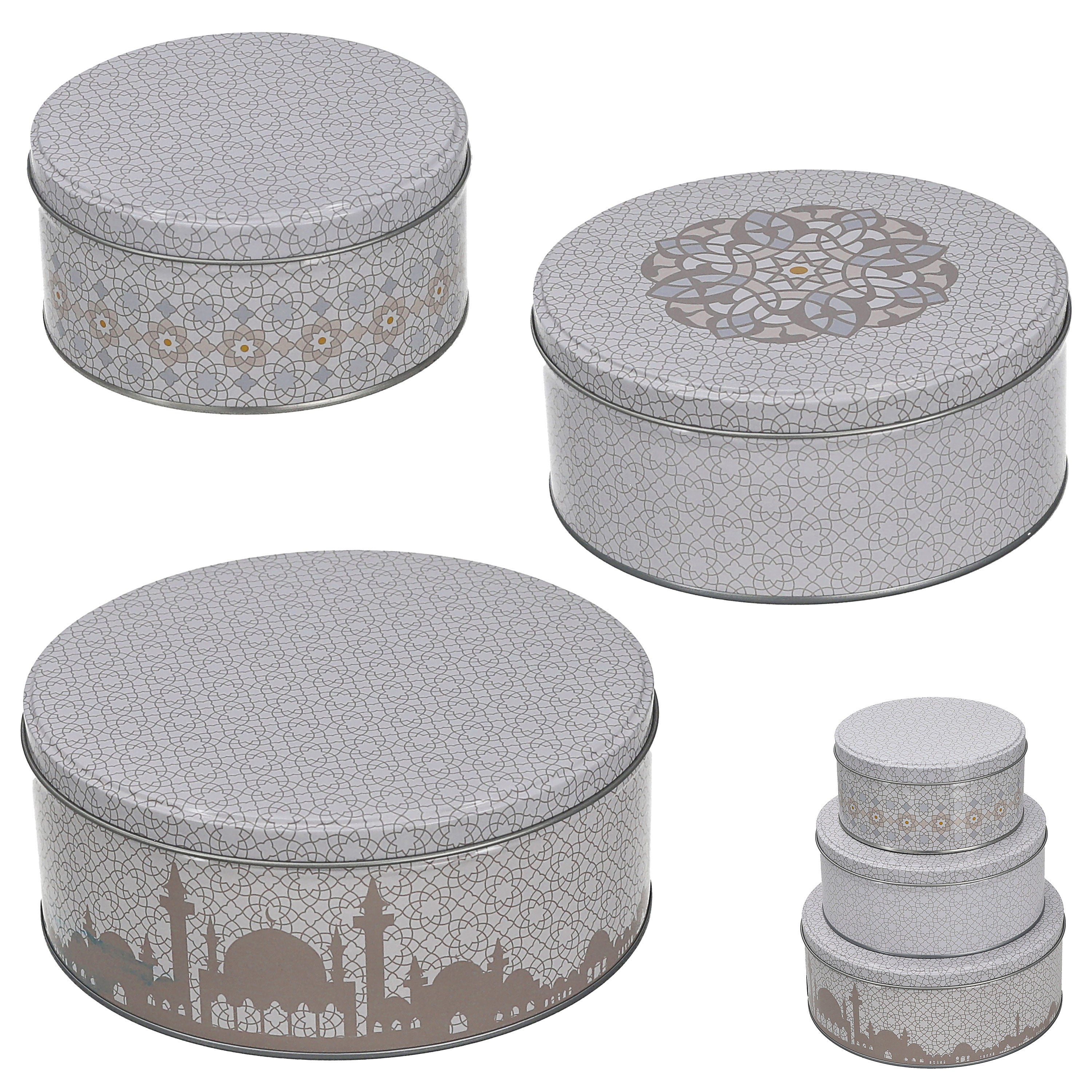 Gebäckdosen Orientalische Muster 3er Set 3 Größen Metall rund Aufbewahrung Keksdose mit Deckel gemustert