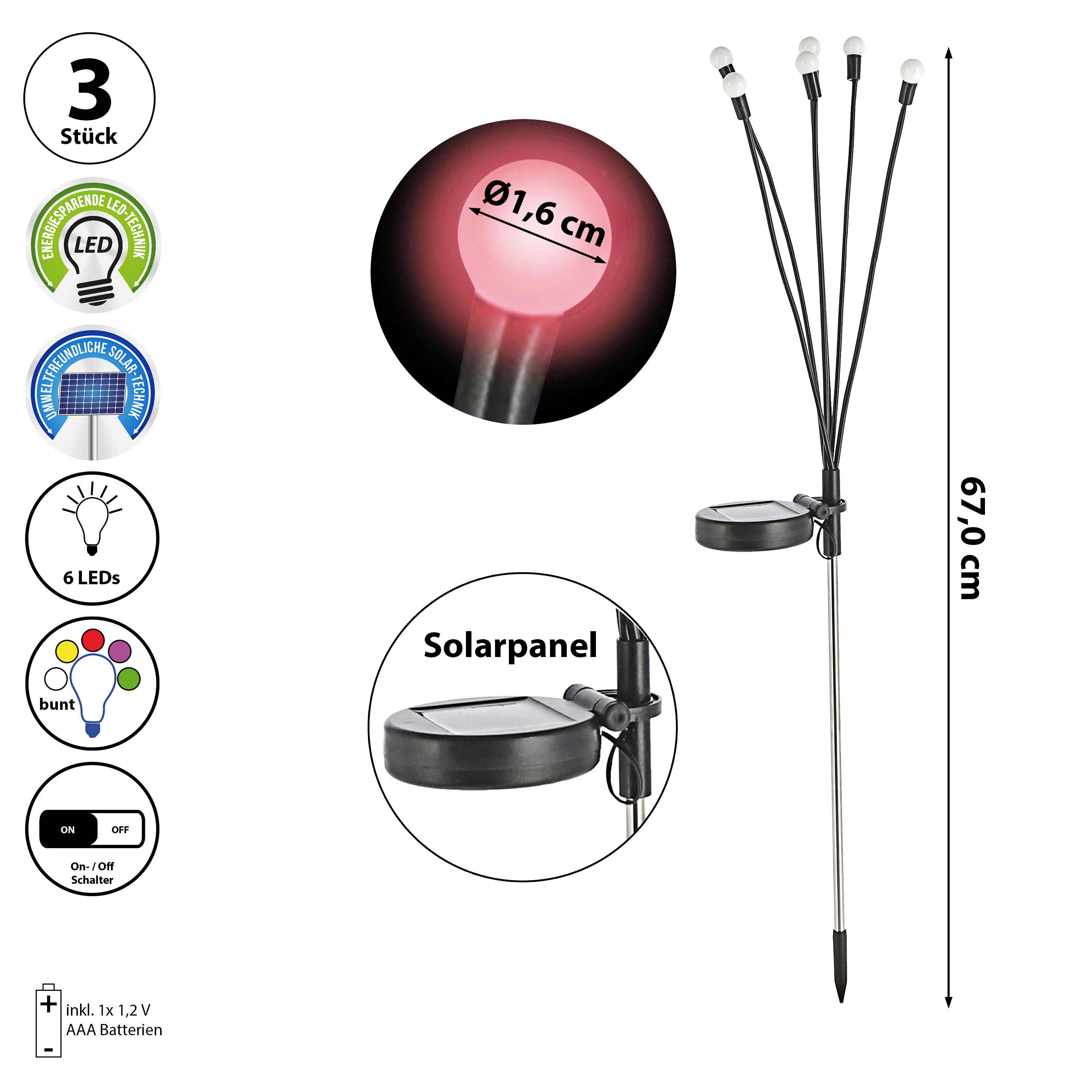 3er Set LED Solar Gartenstecker bunt | ||||||||||||||