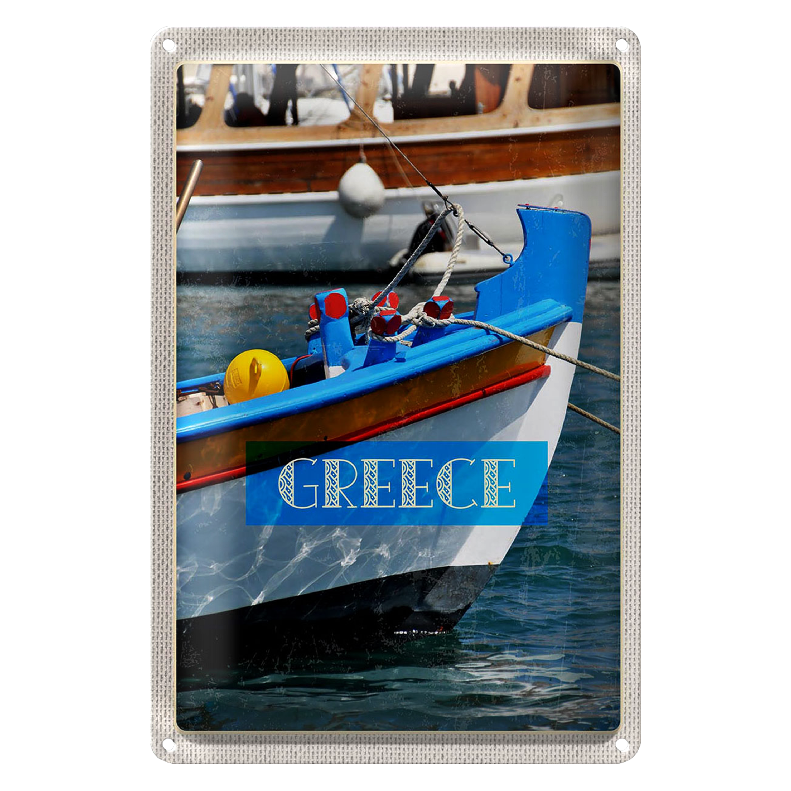 Blechschild Reise 20x30cm Greece Griechenland Sommer Boot Meer