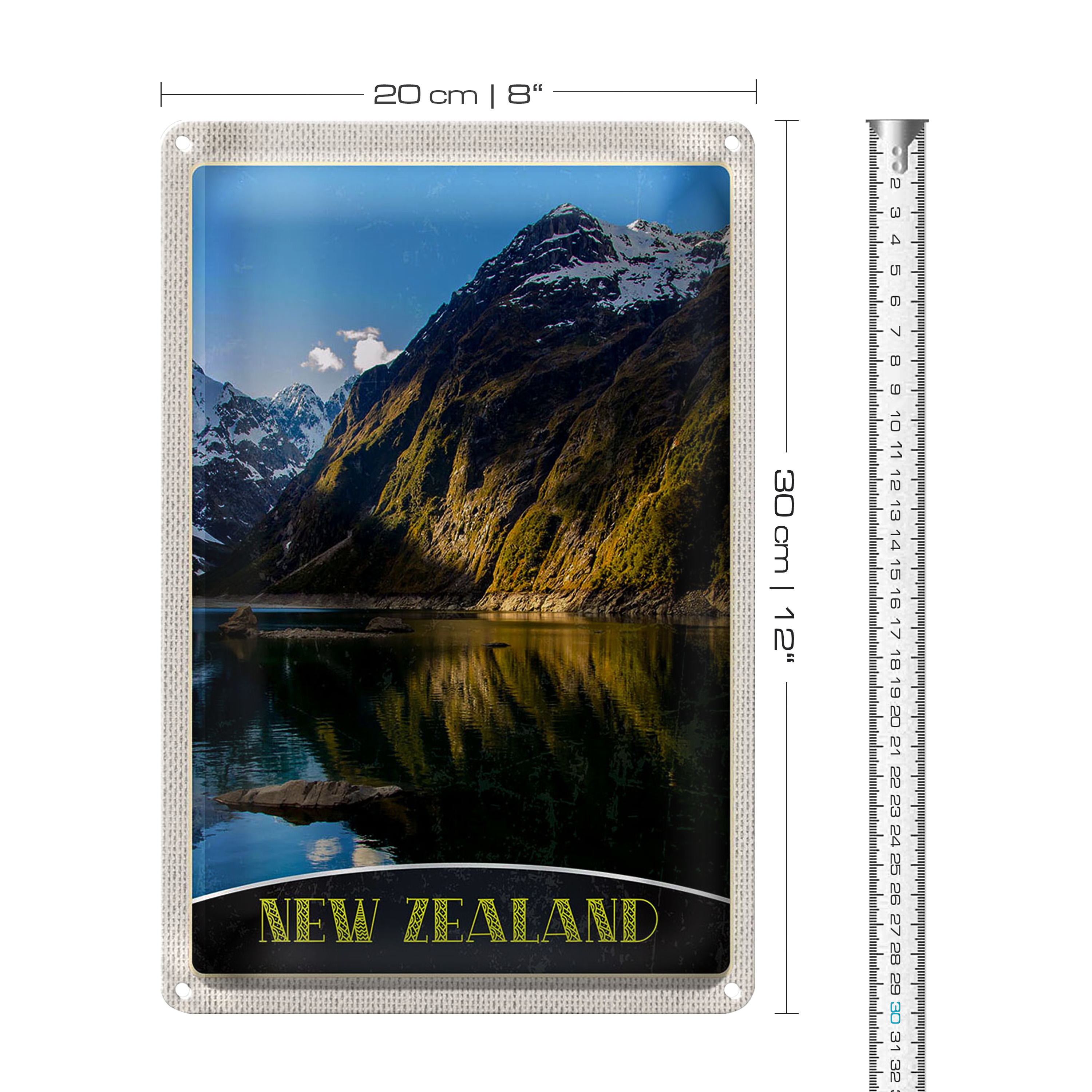 Blechschild Reise 20x30cm Neuseeland Meer Gebirge Natur Urlaub