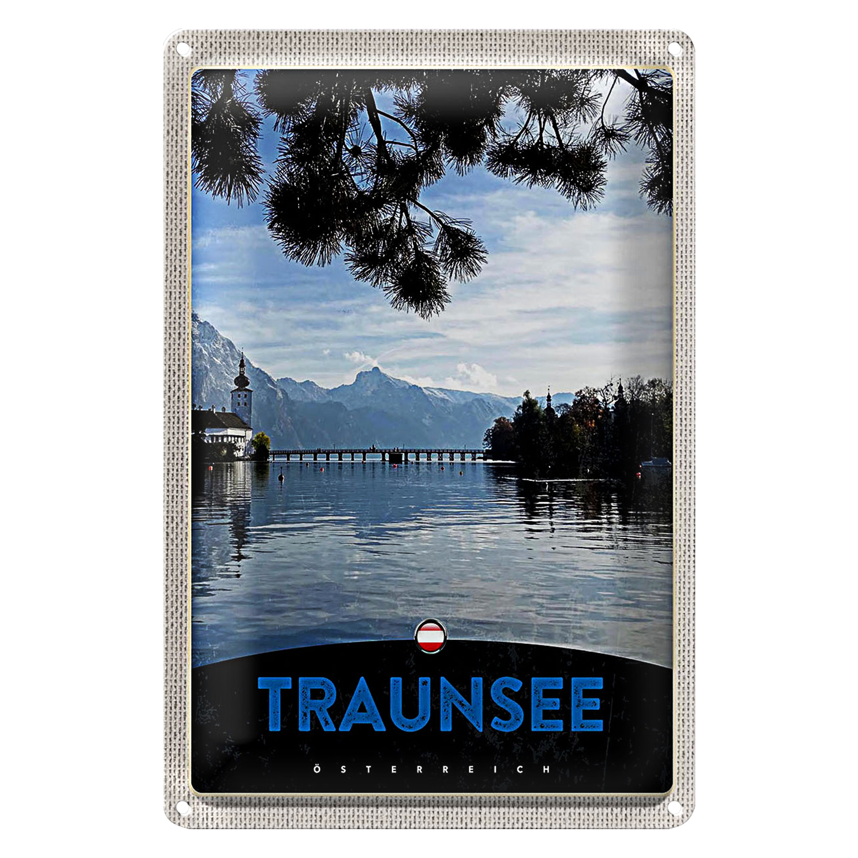 Blechschild Reise 20x30cm Traunsee Österreich Natur Gebirge