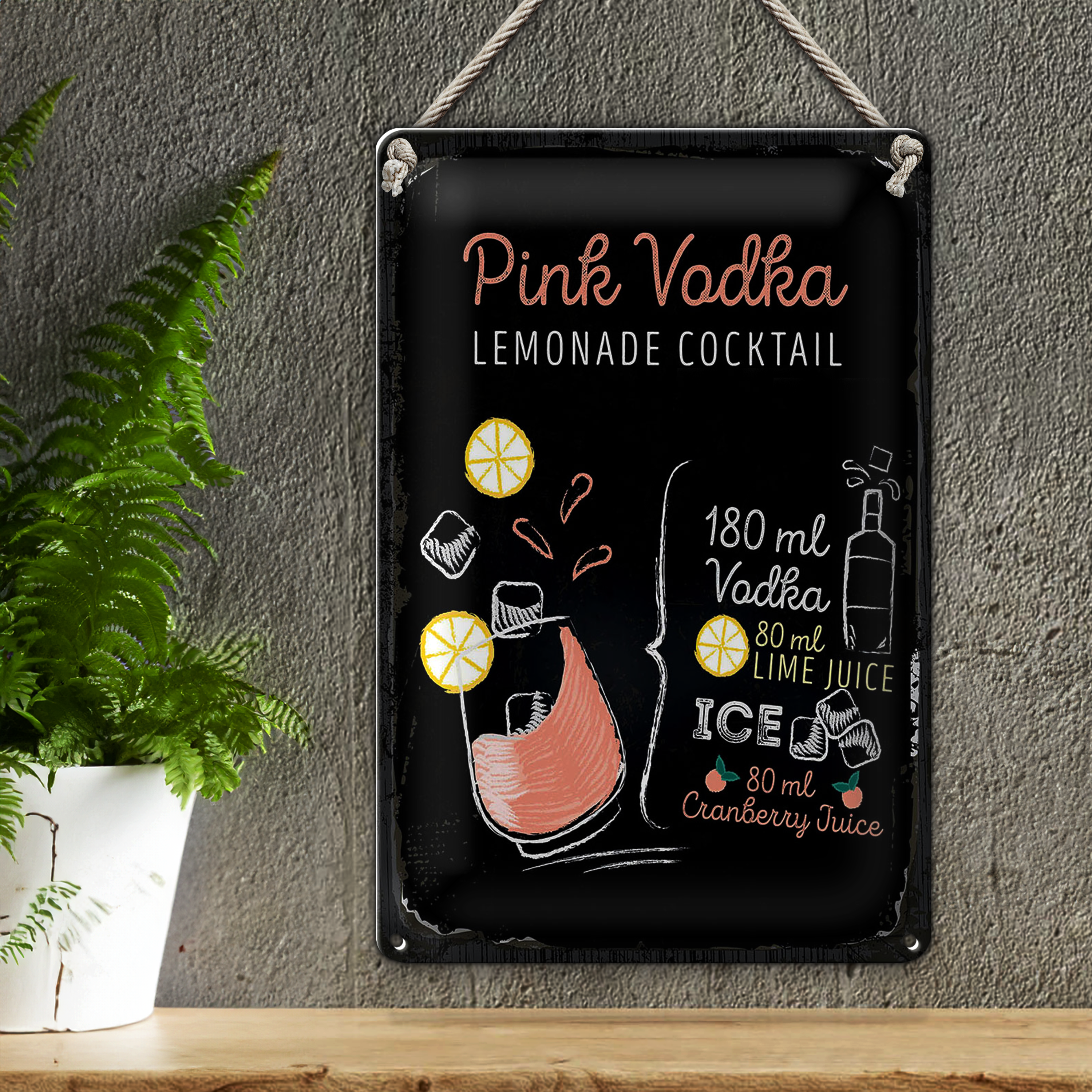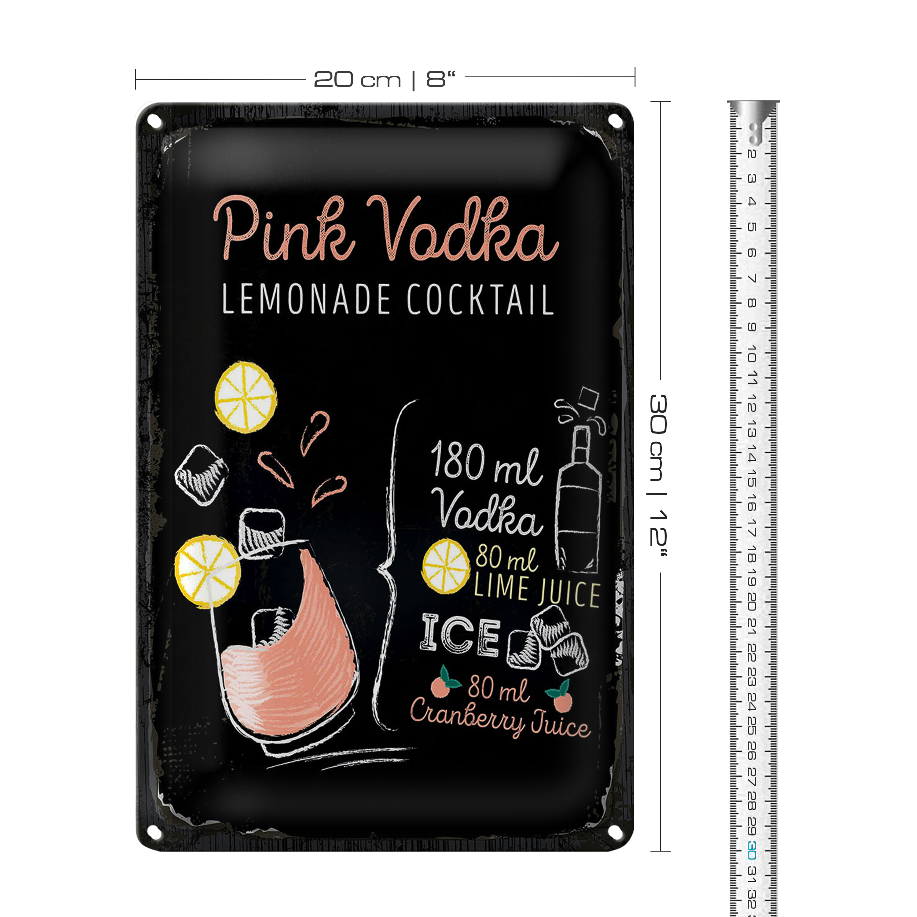 Blechschild Rezept Pink Vodka Cocktail Recipe 20x30cm
