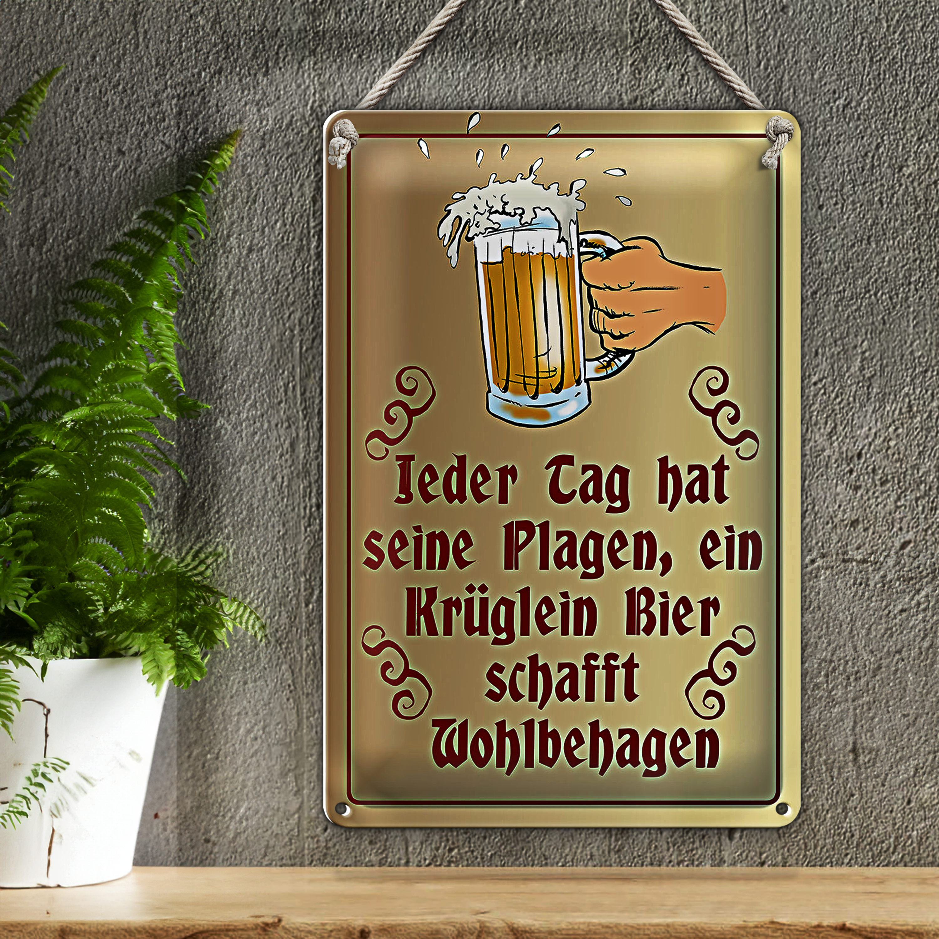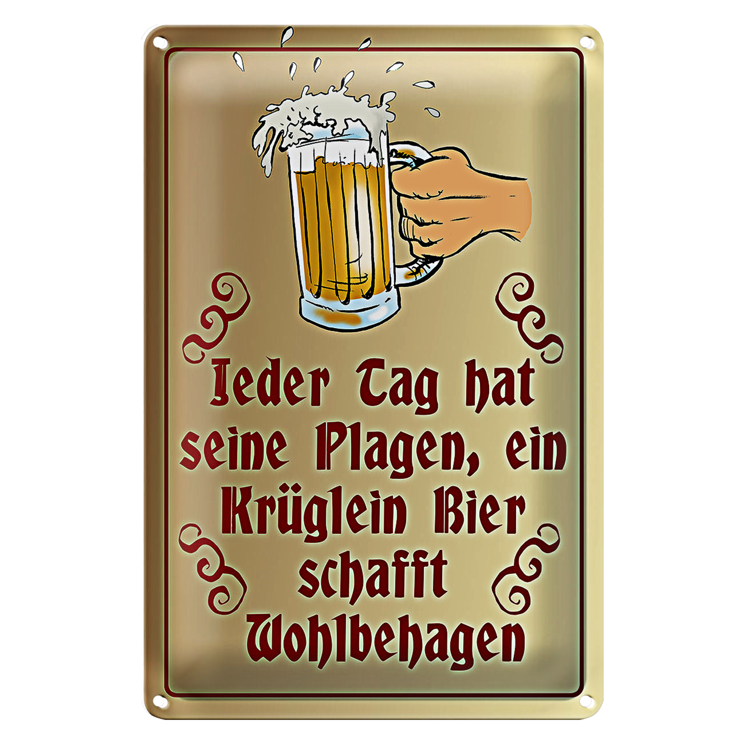 Blechschild Spruch 20x30cm Jeder Tag hat seine Plagen Bier