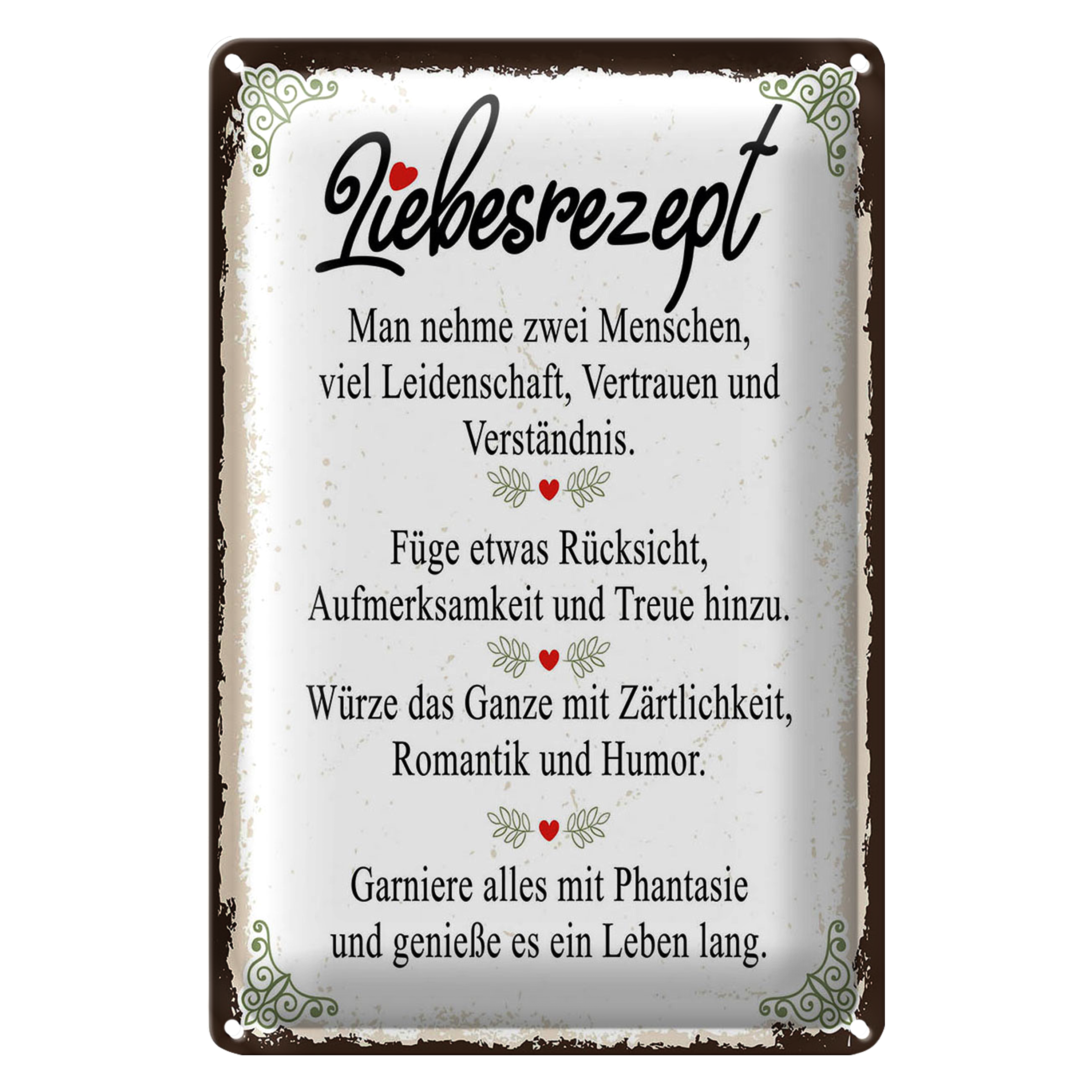 Blechschild Spruch Liebesrezept man nehme 2 Menschen 20x30cm