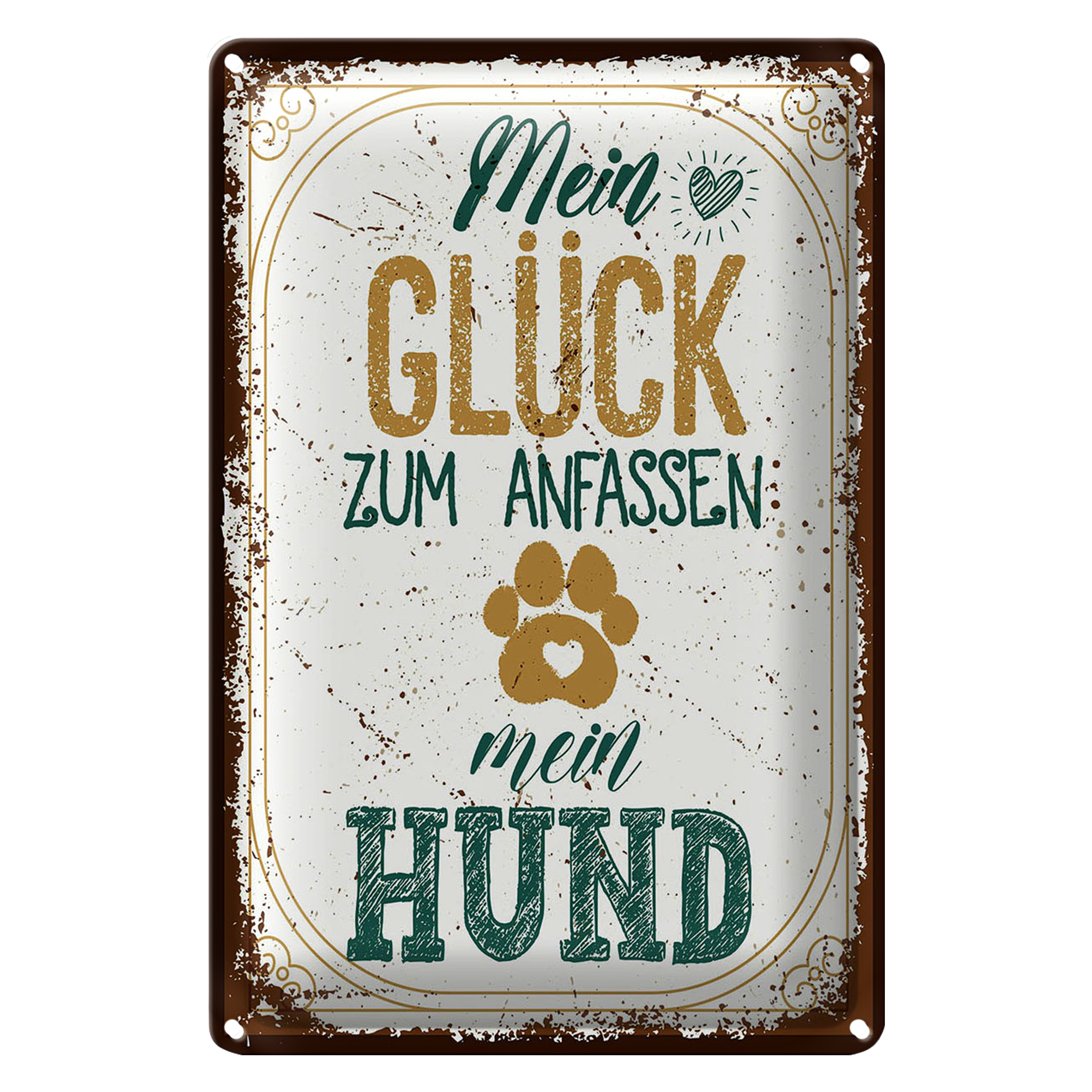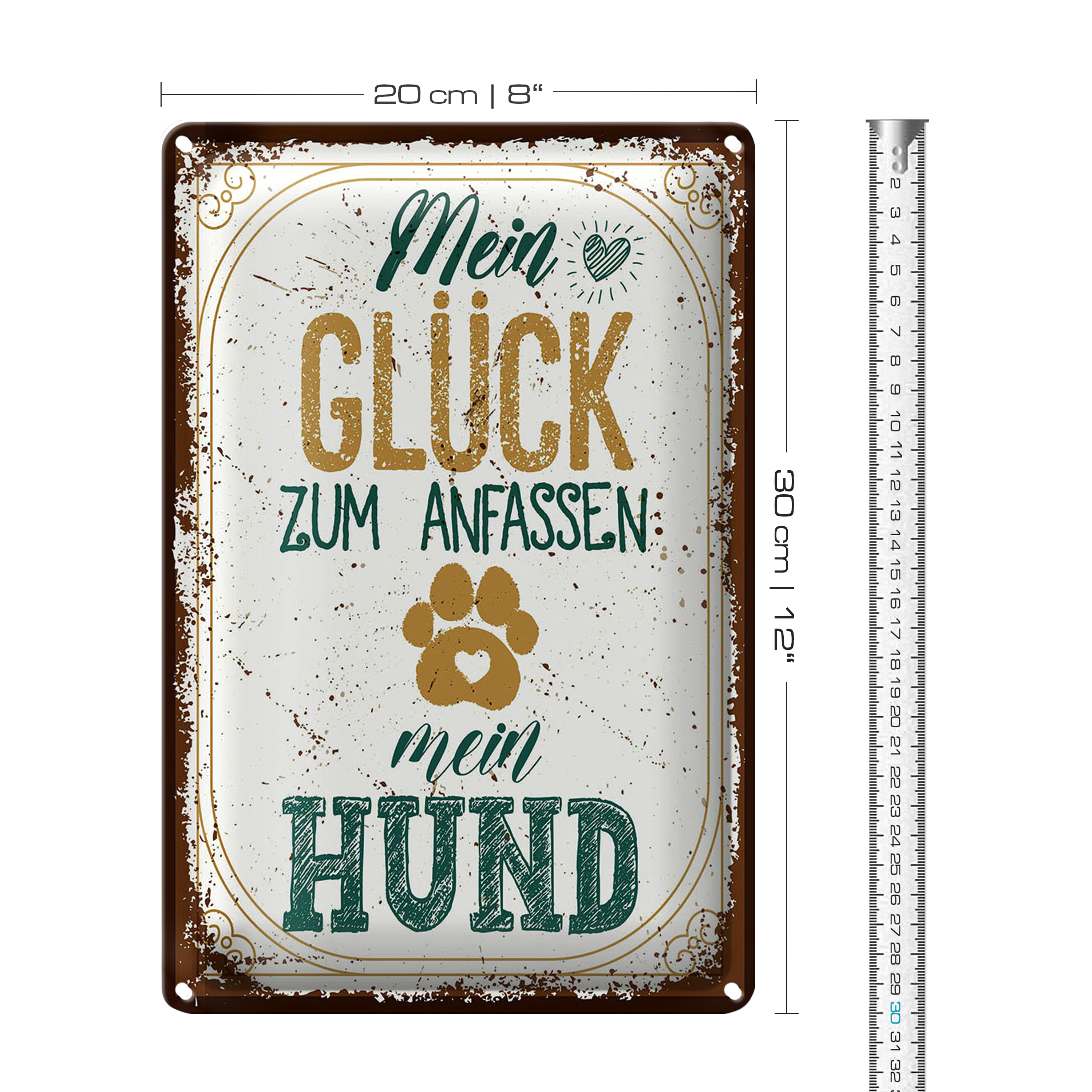 Blechschild Spruch Mein Glück zum Anfassen mein Hund 20x30cm