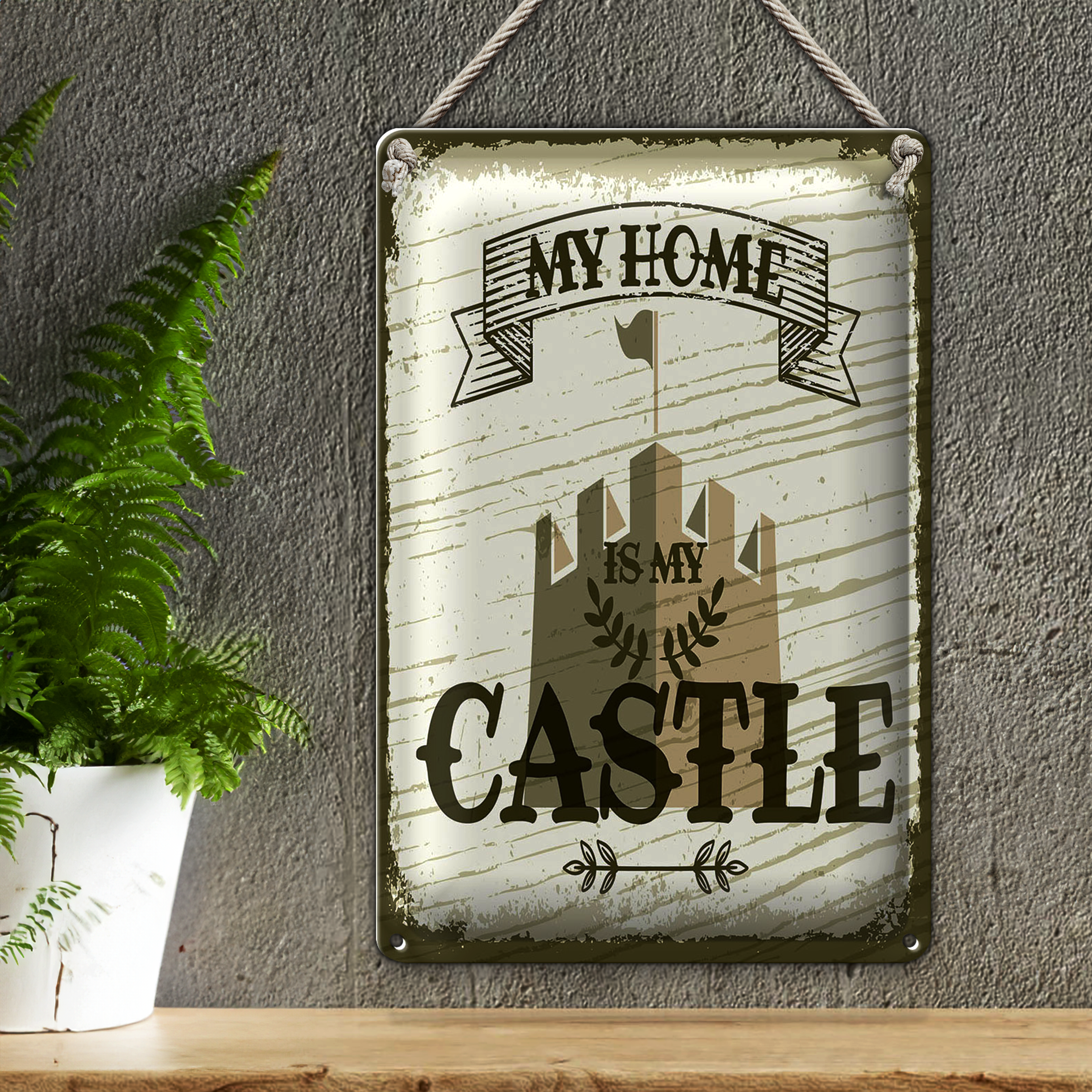 Blechschild Spruch My home is my Castle Schloss 20x30cm