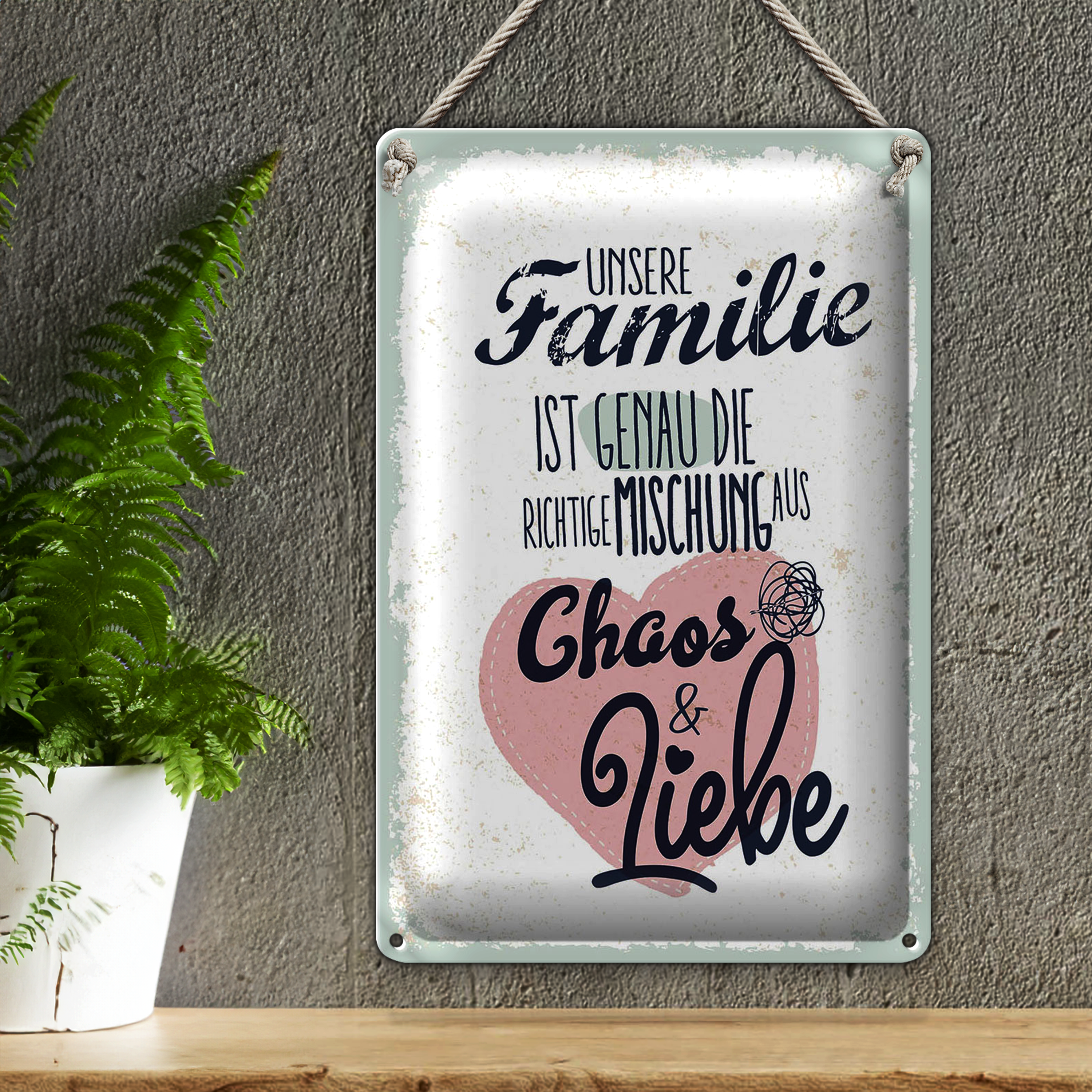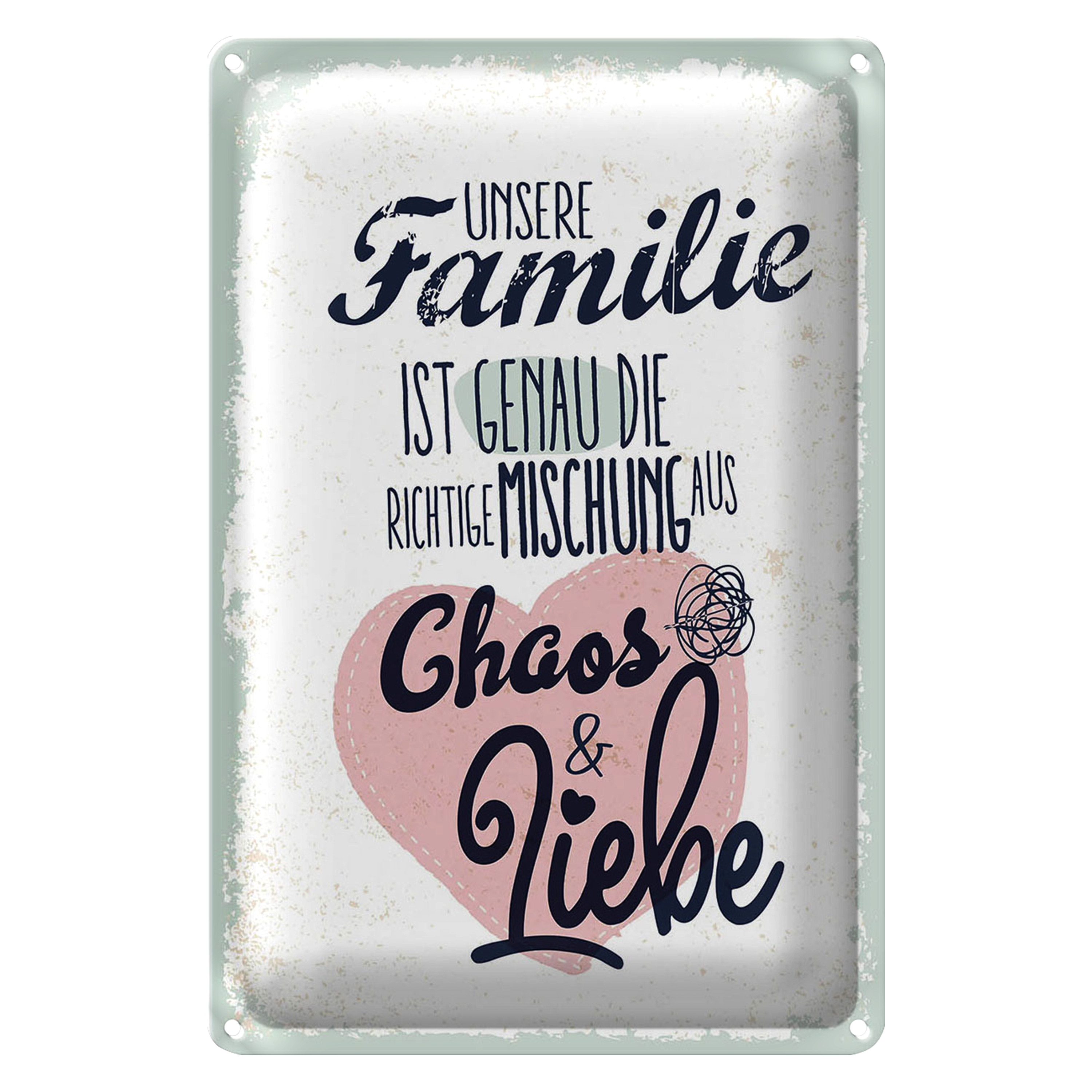 Blechschild Spruch Unsere Familie Chaos Liebe Herz 20x30cm