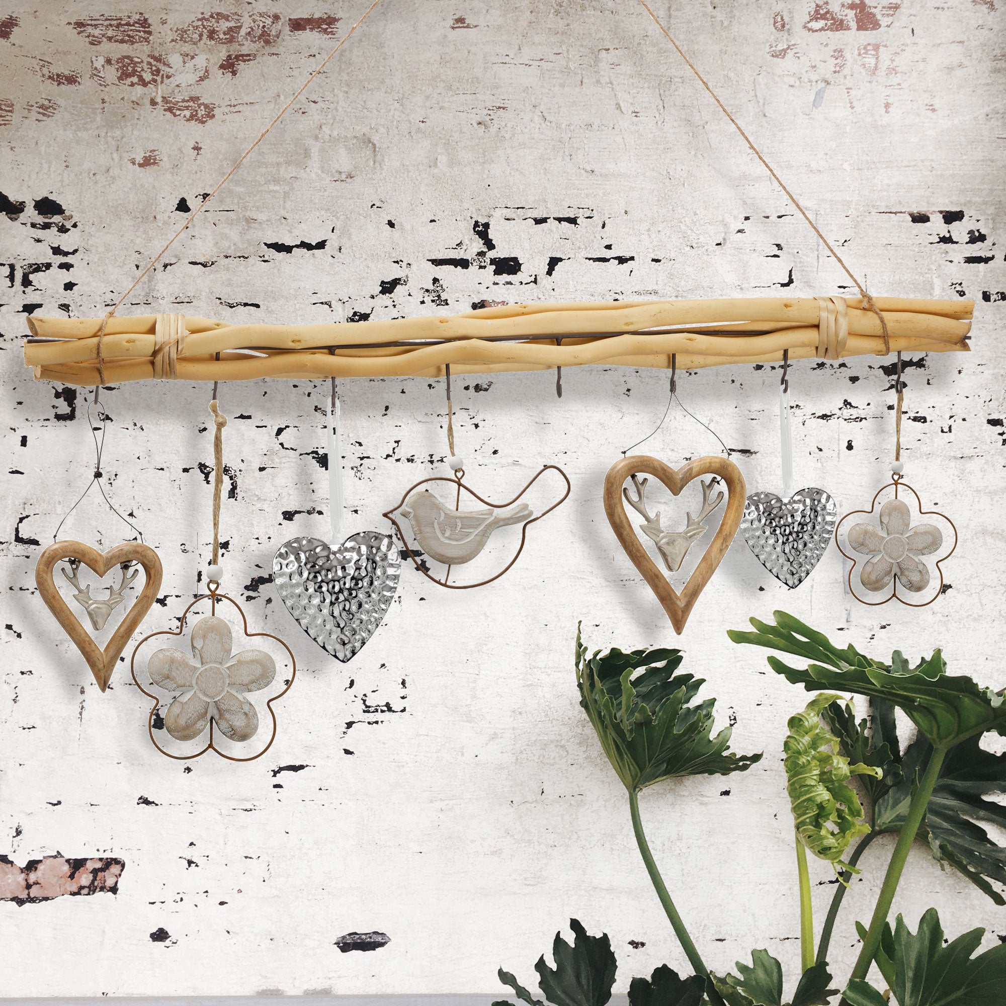 Dekostange Astbündel 8 Metalhaken mit Juteseil | ||||||||||||