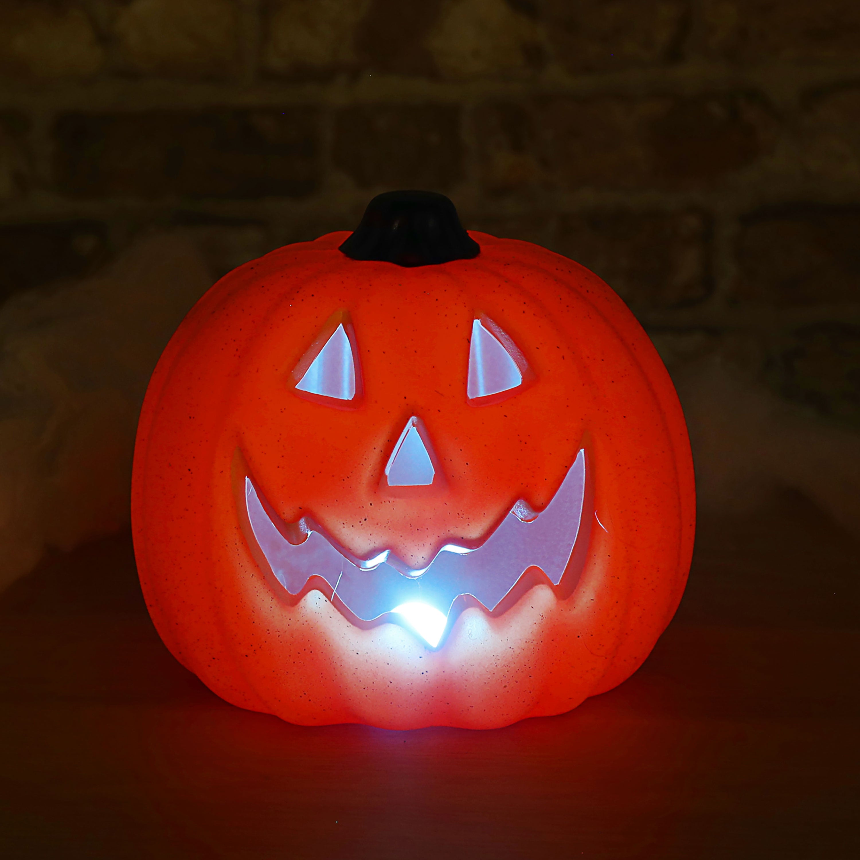 LED Halloween Kürbis Lampe Kunststoff schwarz orange 20x20cm batteriebetrieben rot grün blau blinkend