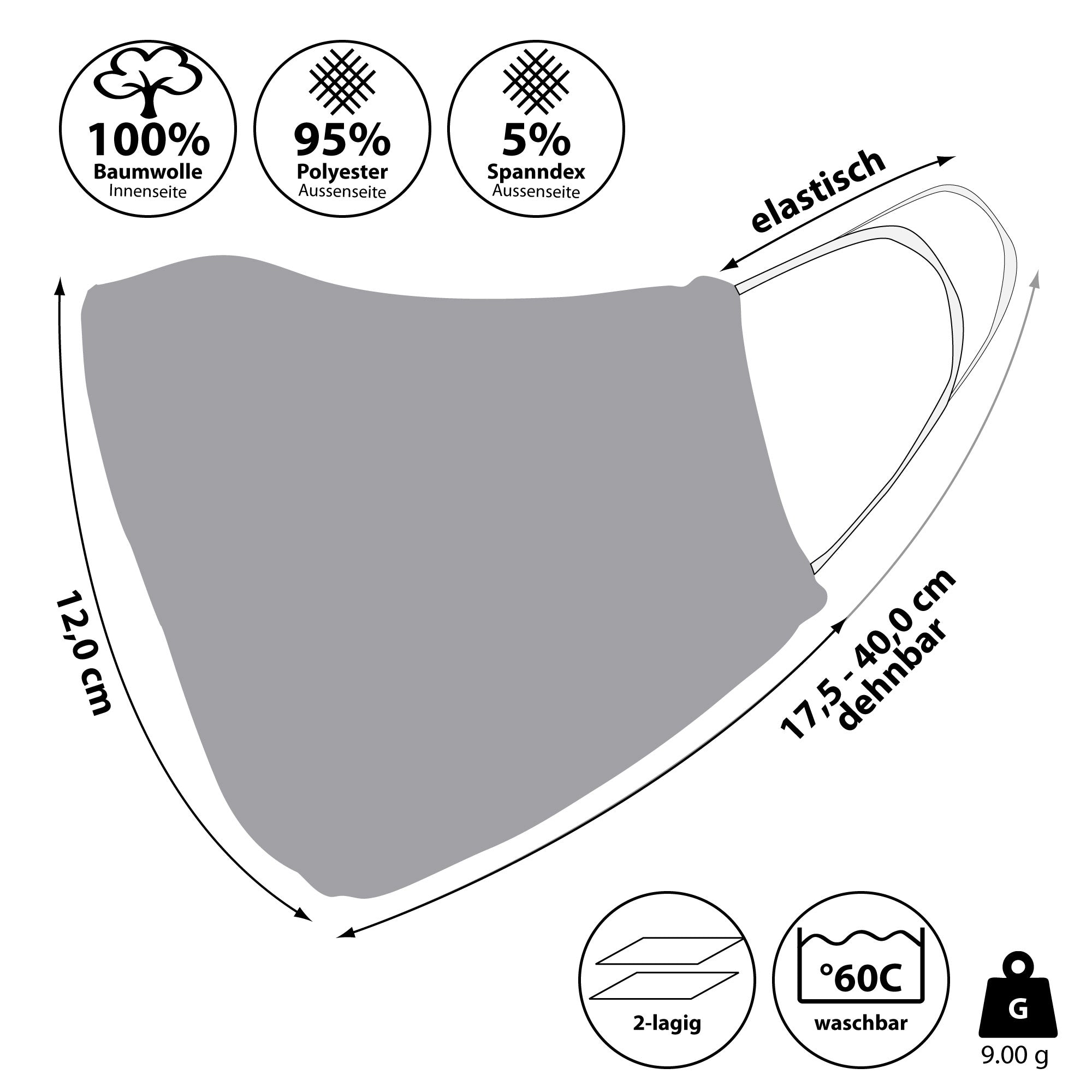 Wiederverwendbares "Uni" Mund und Nasenschutz Set | ||||||||||||||||