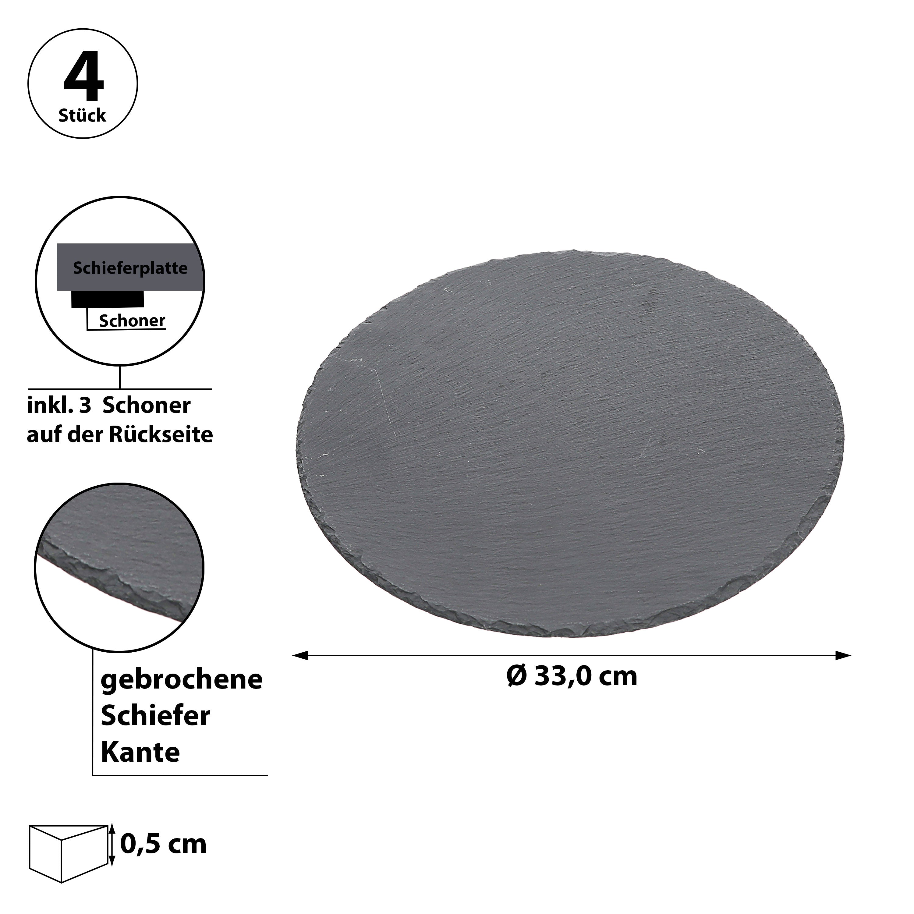 4er Set Schieferplatte rund mit Filzschonern | ||||||||||