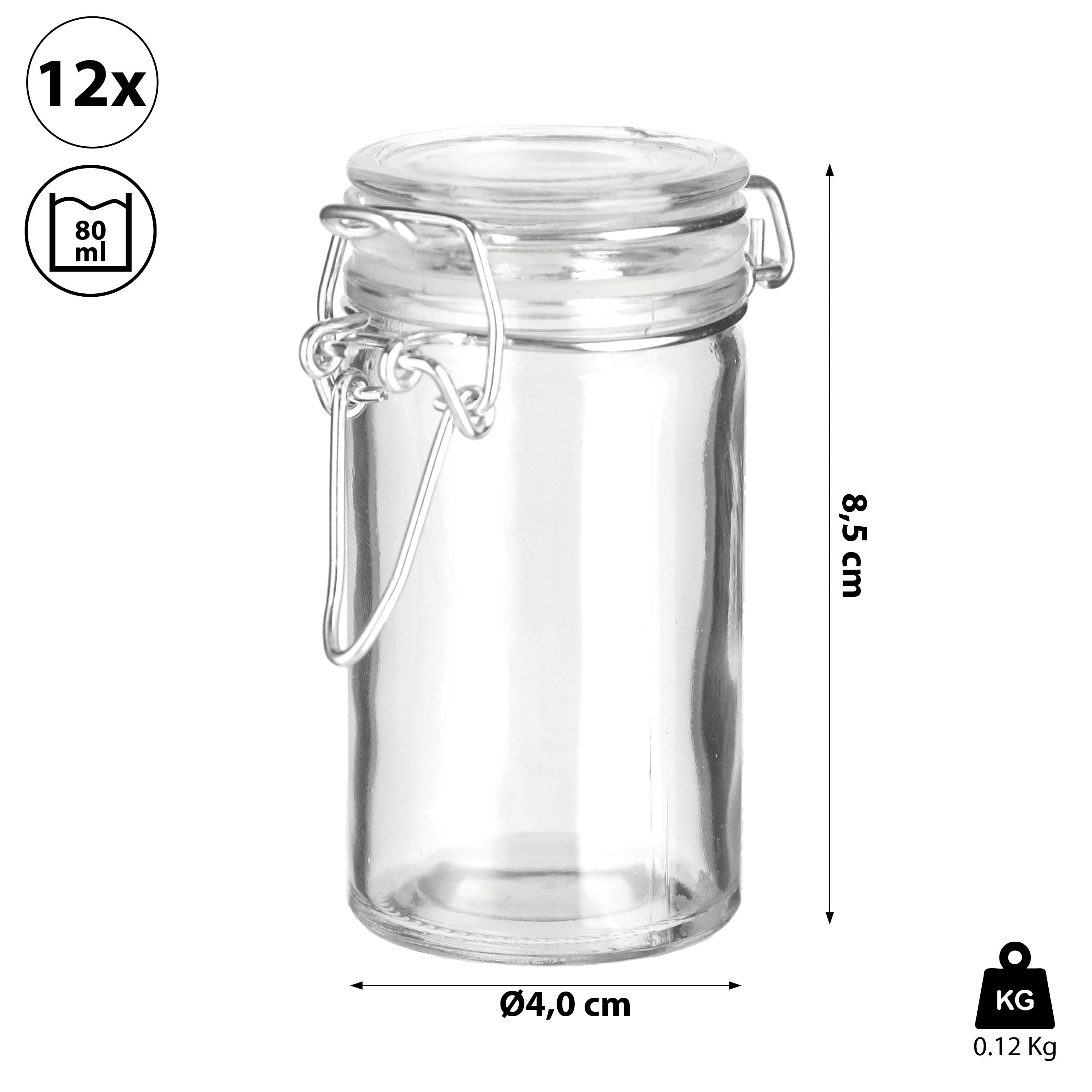 12er Set Glasbehälter schmal mit Bügelverschluß 80 ml | ||||||||||||||