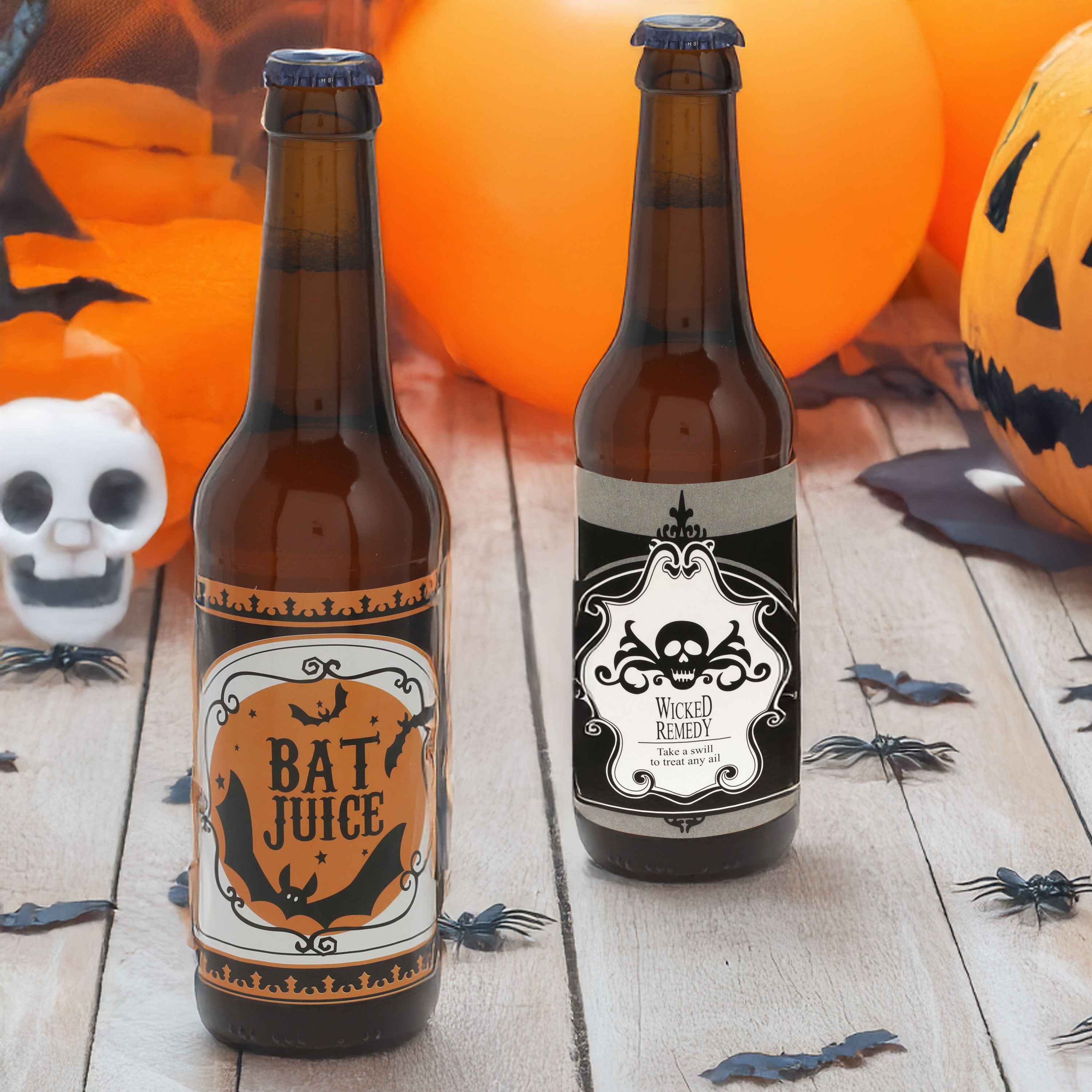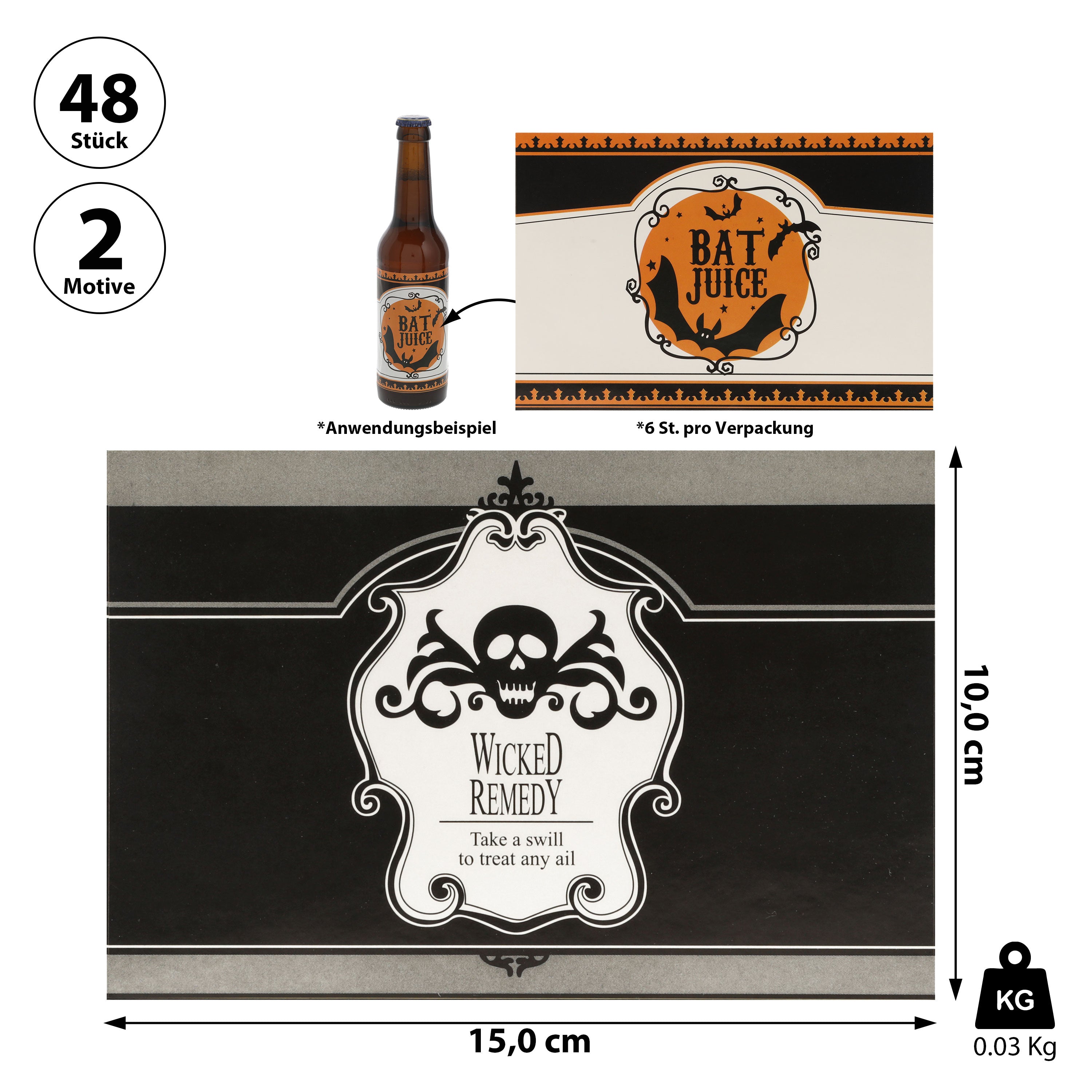 Halloween Bierflaschenaufkleber Set 48 Stück Papier 15x10cm Aufkleber 2 Motive Bierflasche Flaschenettikett
