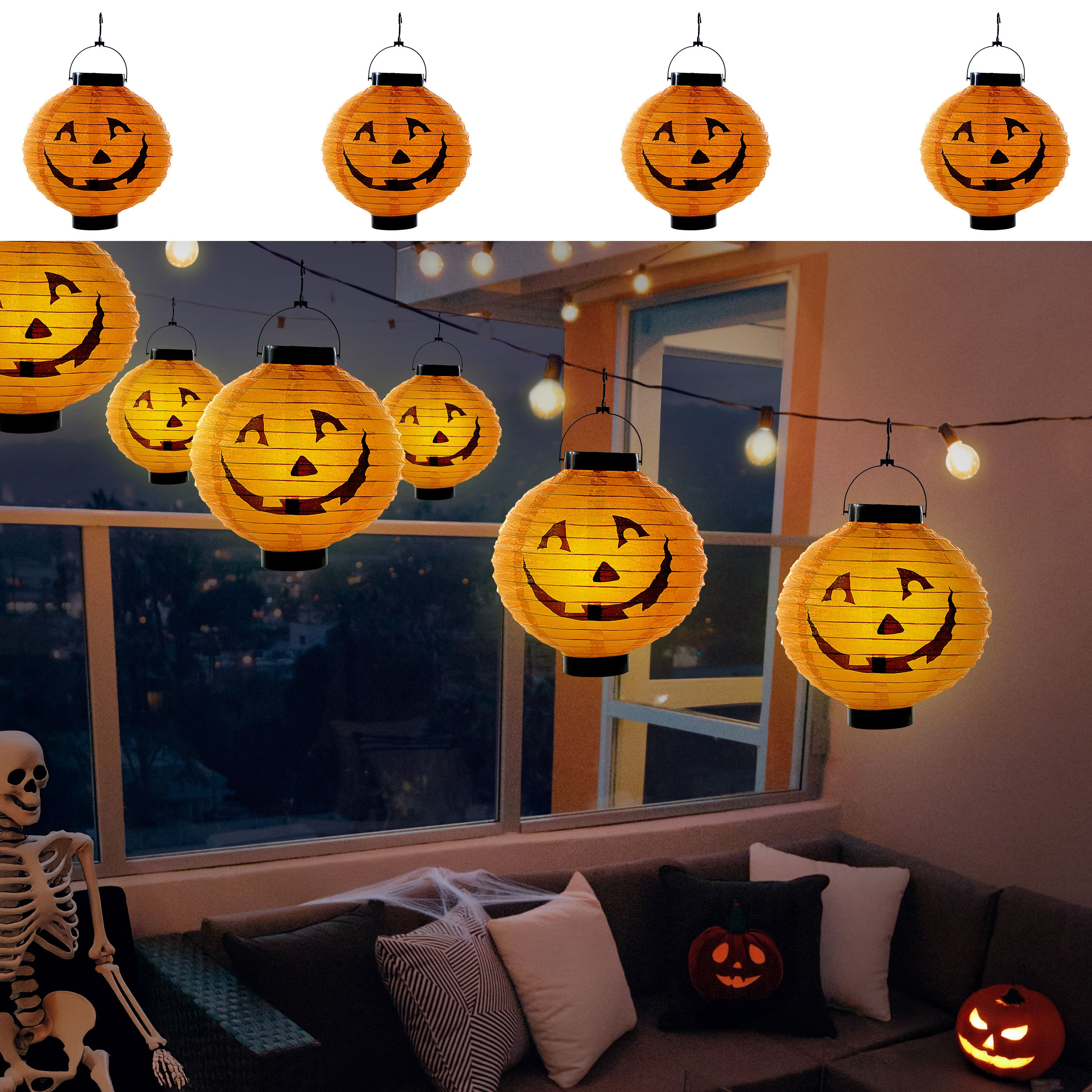 4er Set LED Lampion mit Kürbisgesicht | ||||||||||||