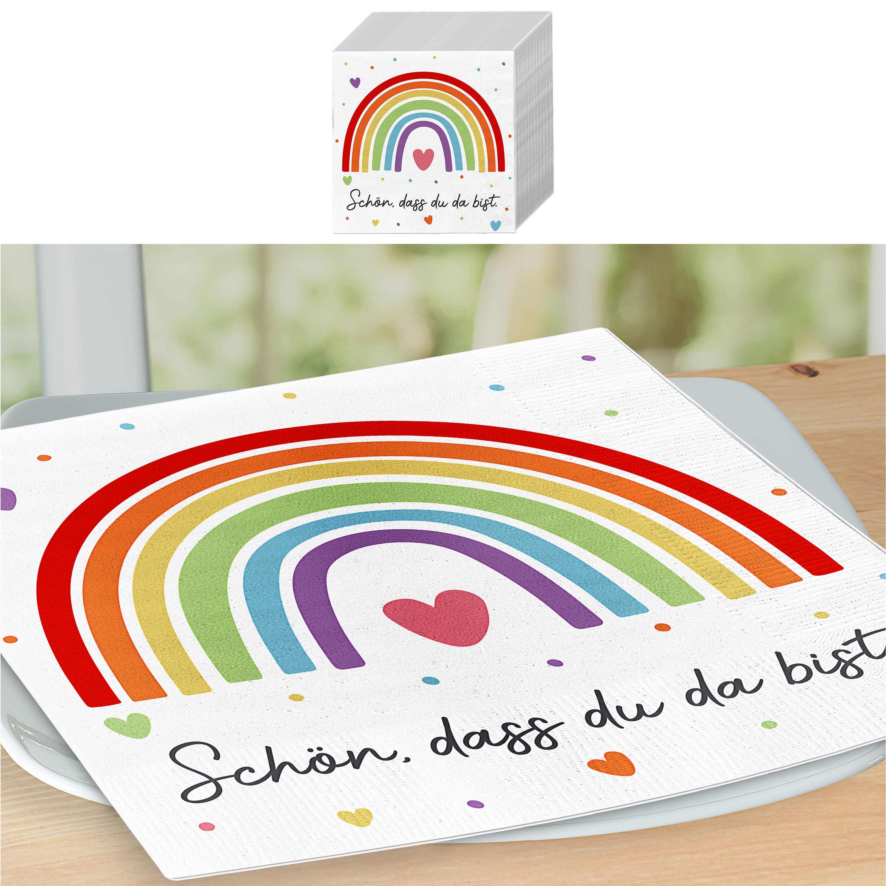 Servietten 'Regenbogen' 80er Set 33x33cm 3-lagig Papierserviette stoffähnlich Tuch Herzenssprüche Tischdeko