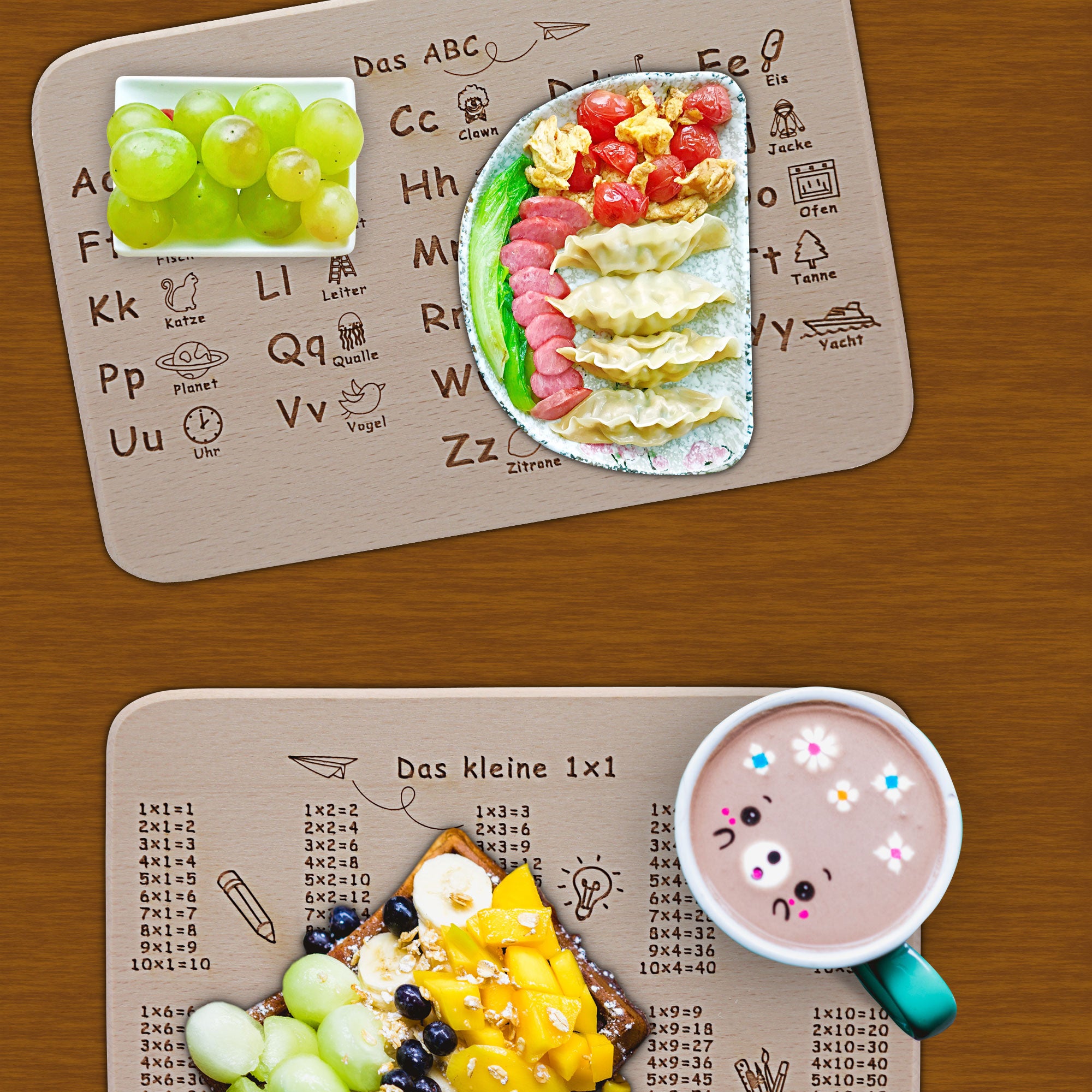2er Set Frühstücksbrett Schulanfang 1x1 ABC | ||||||||||||