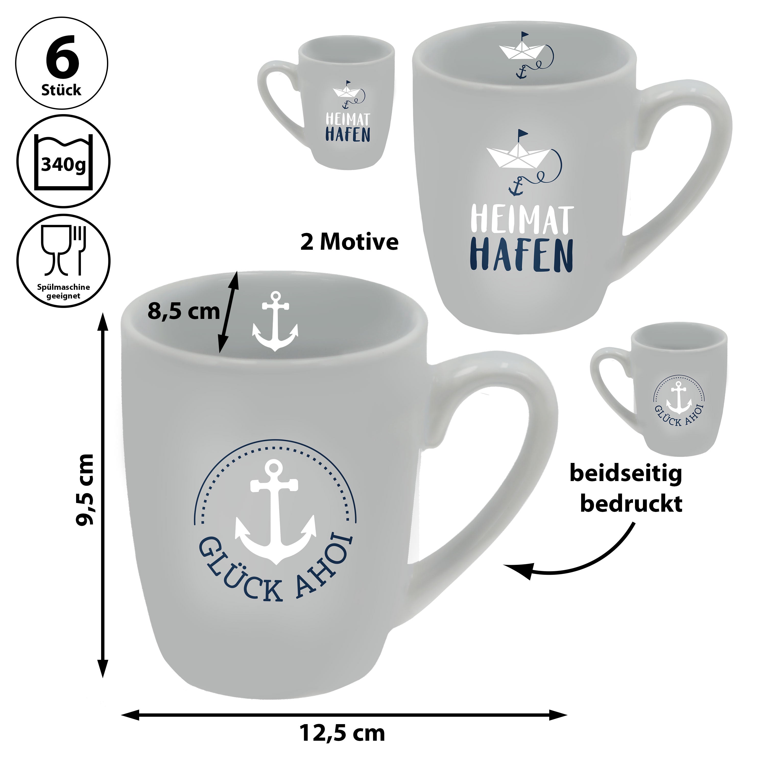 6er Set Becher mit 2 maritimen Motiven | ||||||||||||