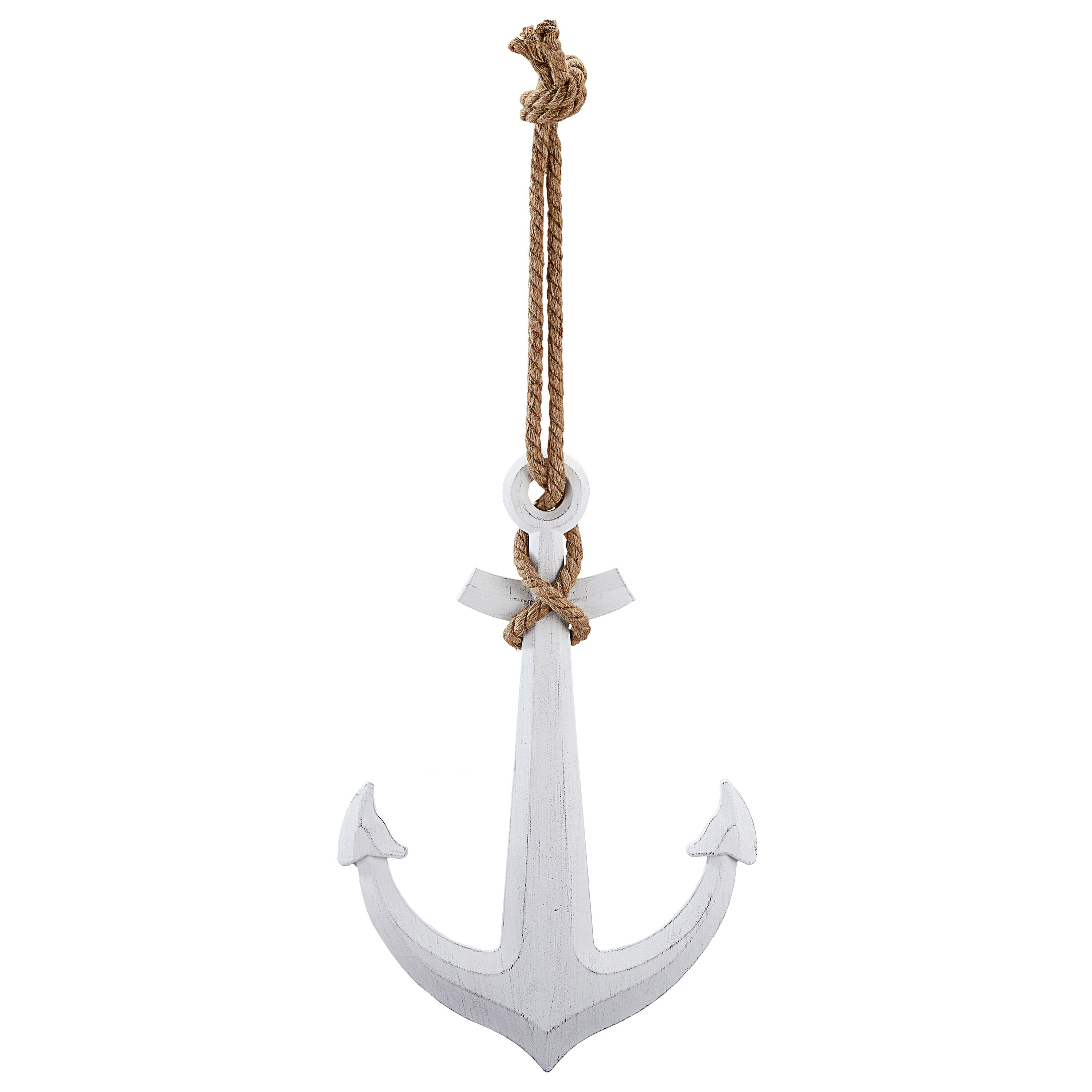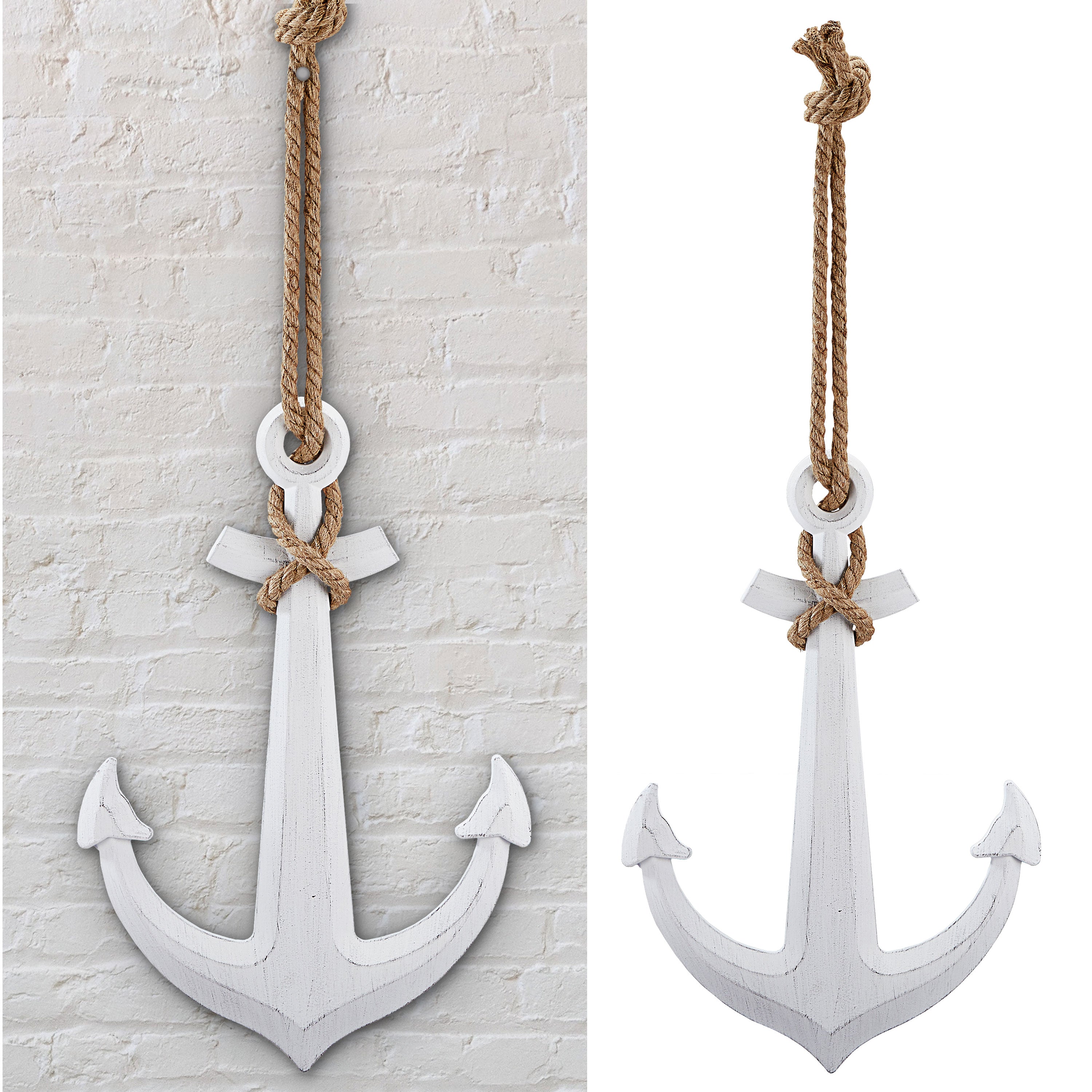 Deko Anker zum Aufhängen mit Tau 58,5x40x2cm MDF weiß Antikfinish maritim Schiffsanker Schiffszubehör