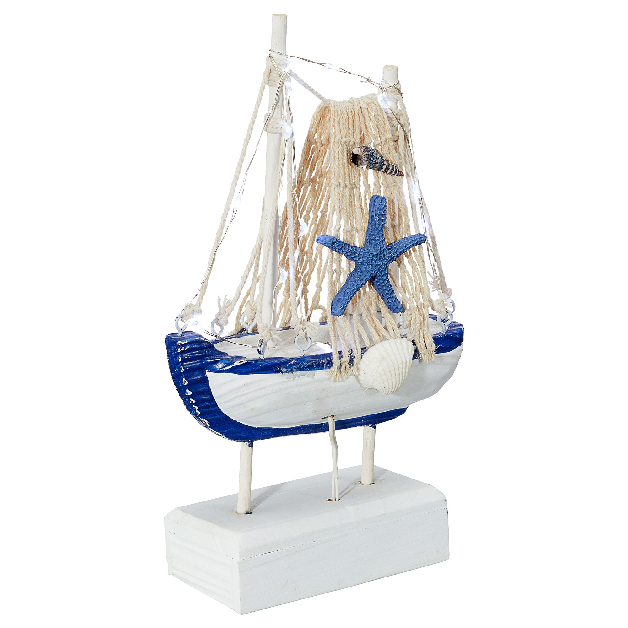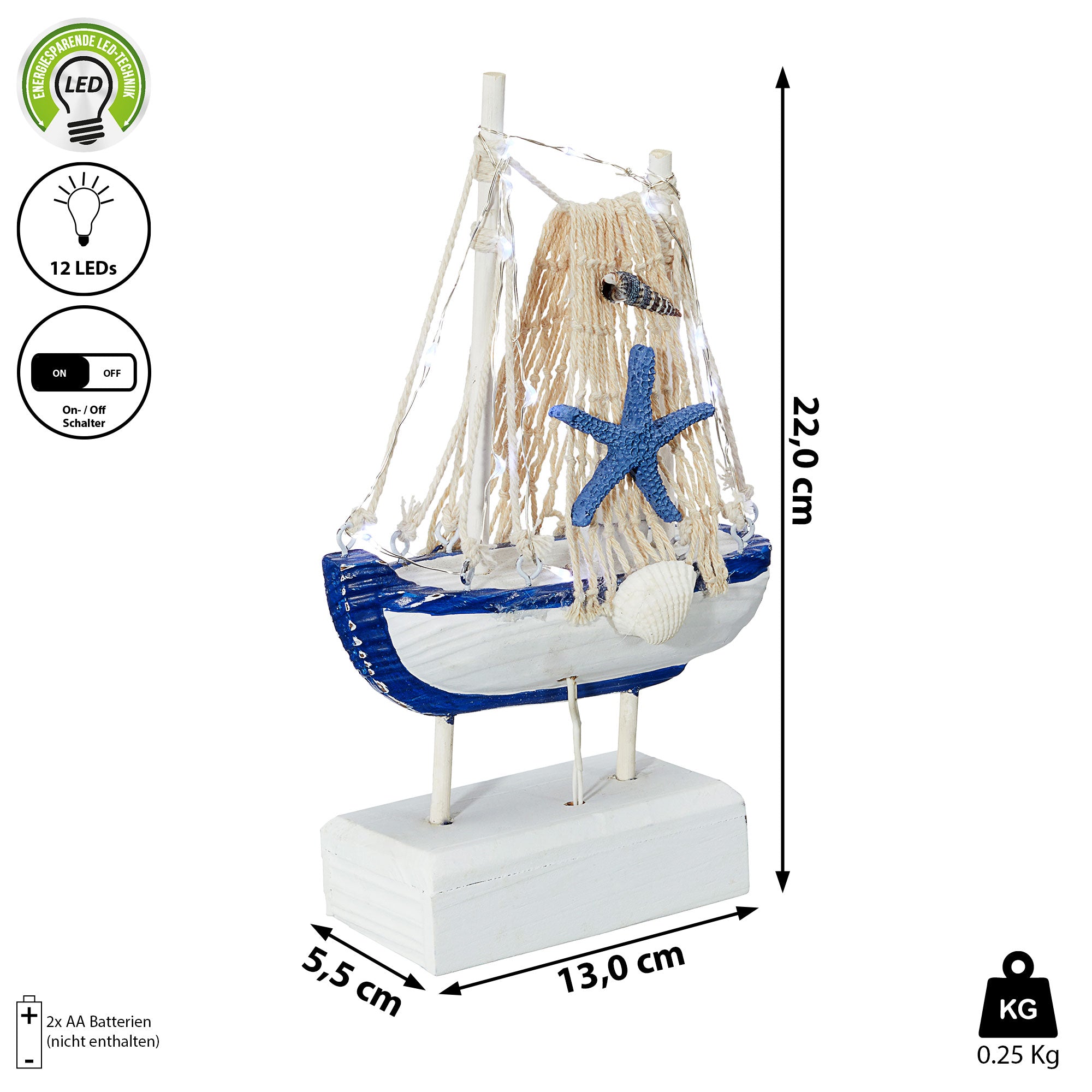 LED Fischerboot auf Sockel Höhe 22cm 12 LEDs warmweiß | ||||||||||||||