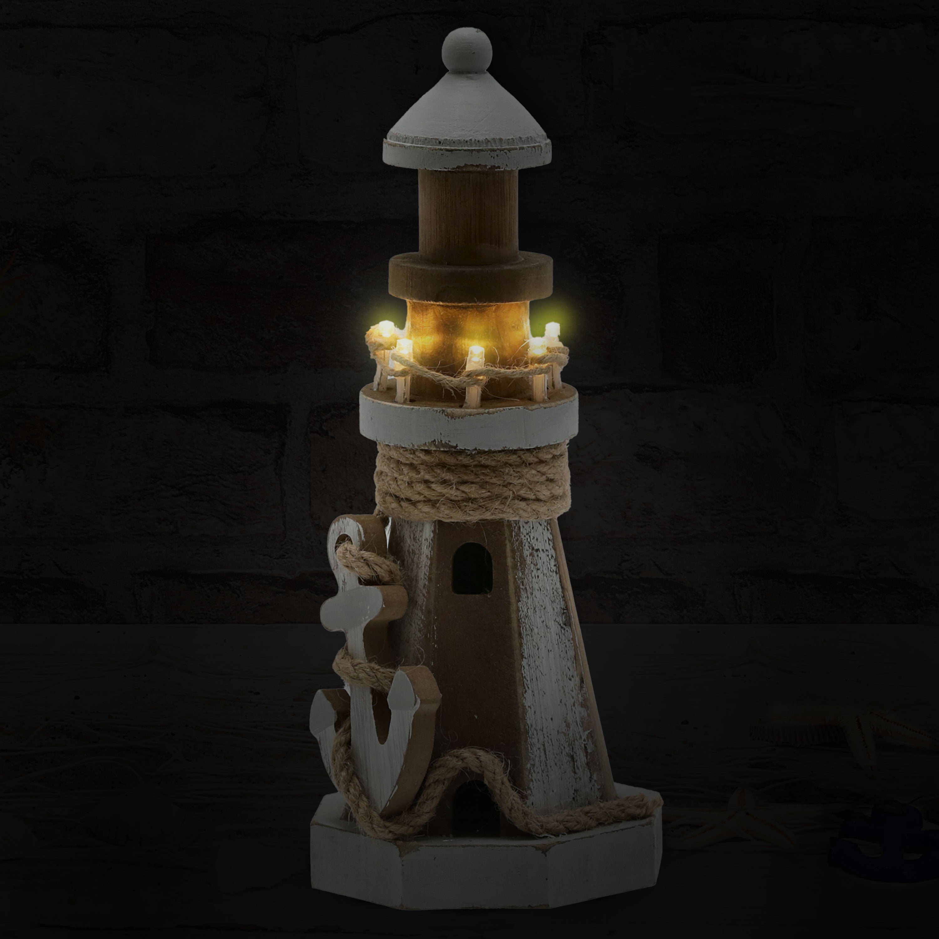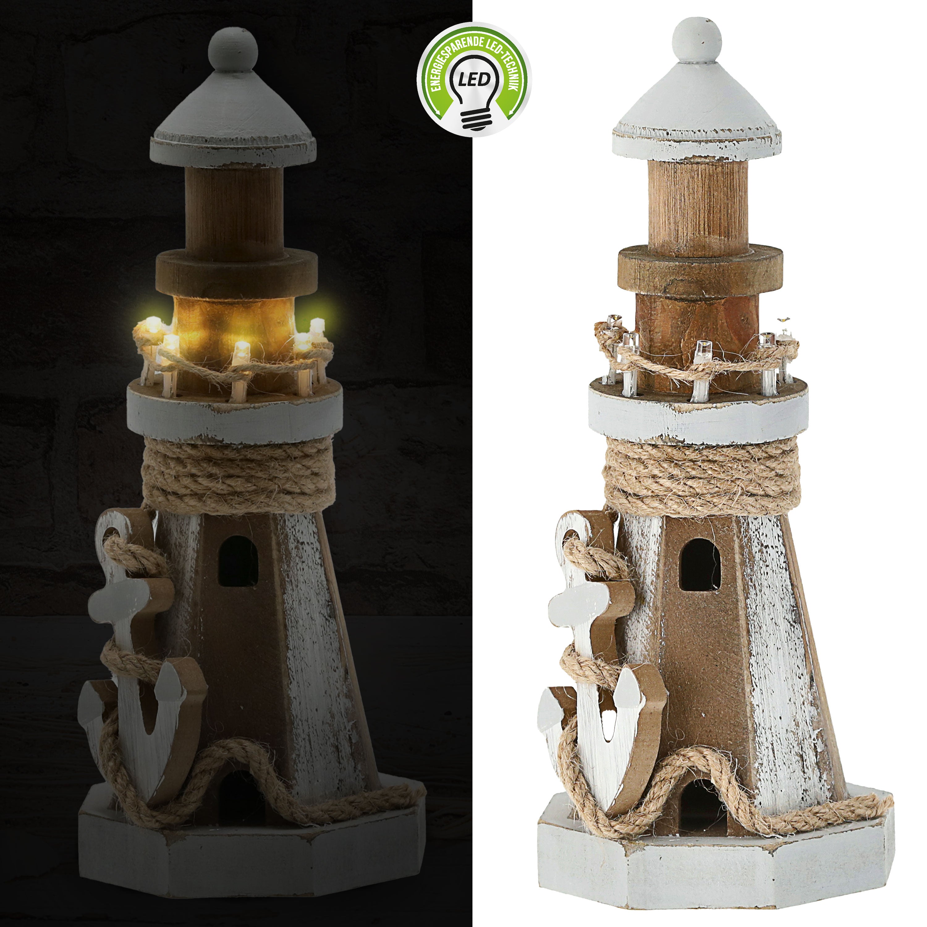 LED Leuchtturm maritim Kiefernholz Jute H25cm Naturtöne Antikfinisch Gartendeko Leuchtfeuer batteriebetrieben