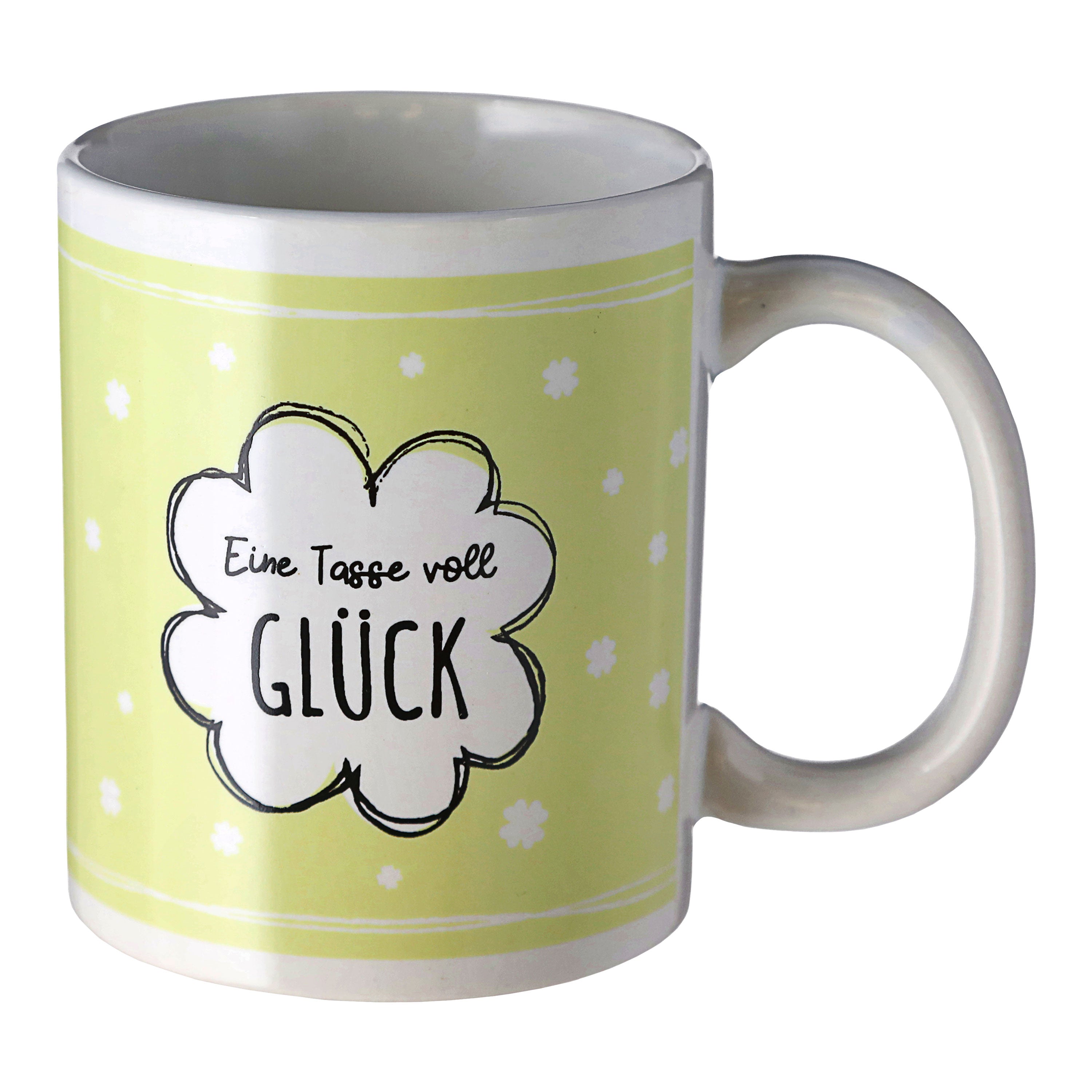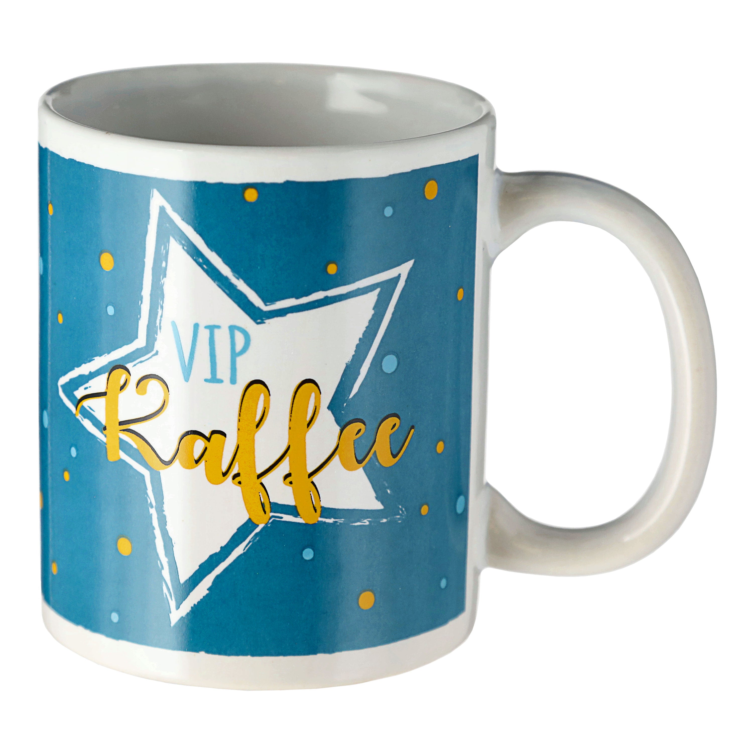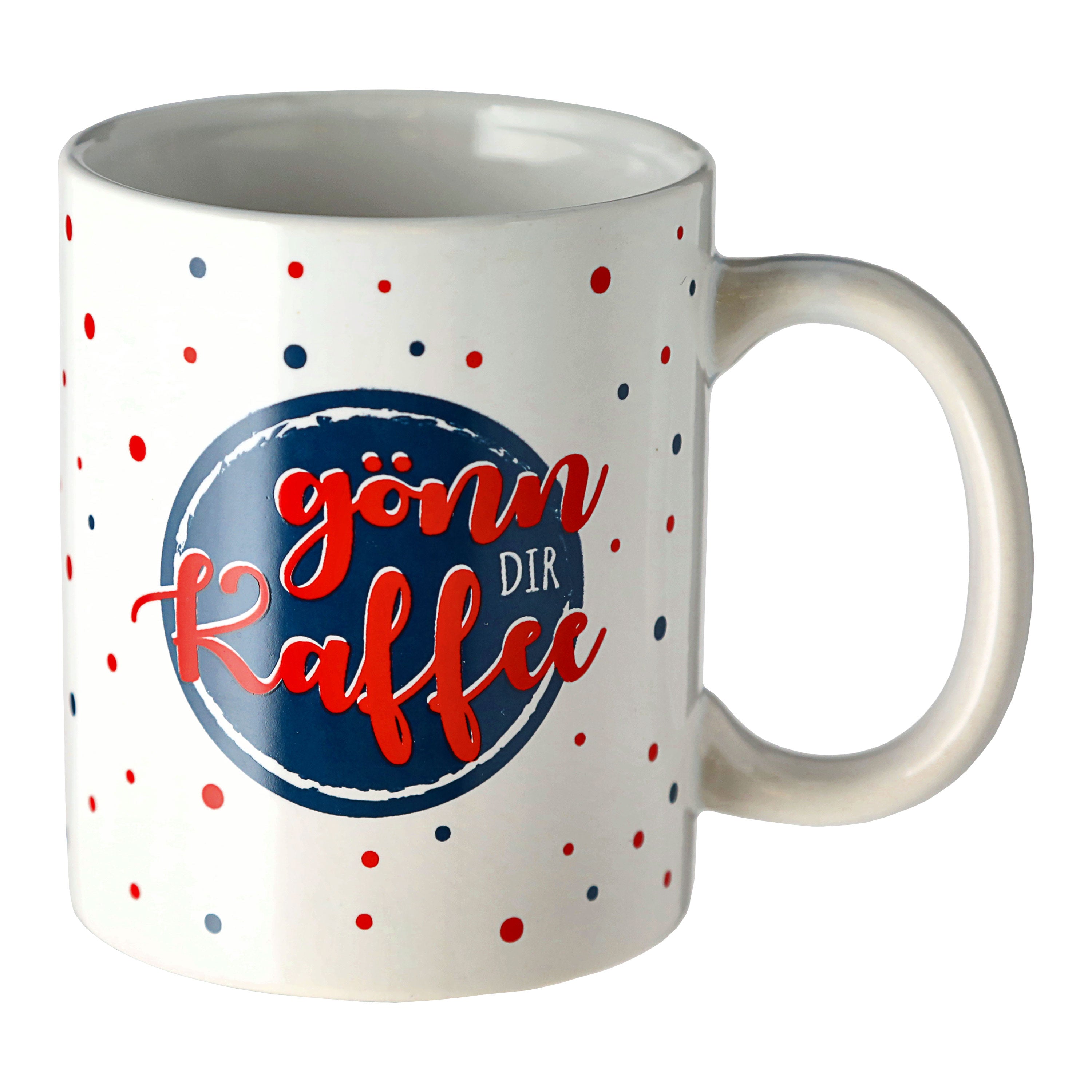 Becher 'Sprüche' 6er Set 300 ml Steinzeug 12,5x9,5x8cm weiß Henkeltasse Kaffeebecher Tasse Aufdruck 6 Motive