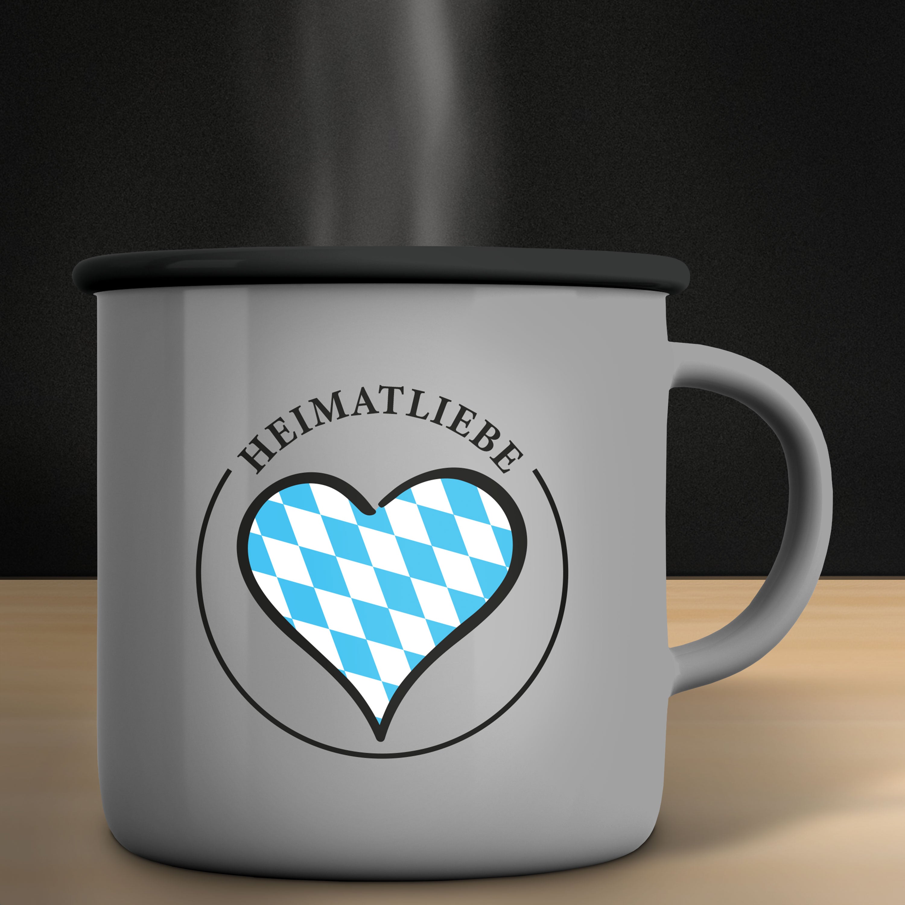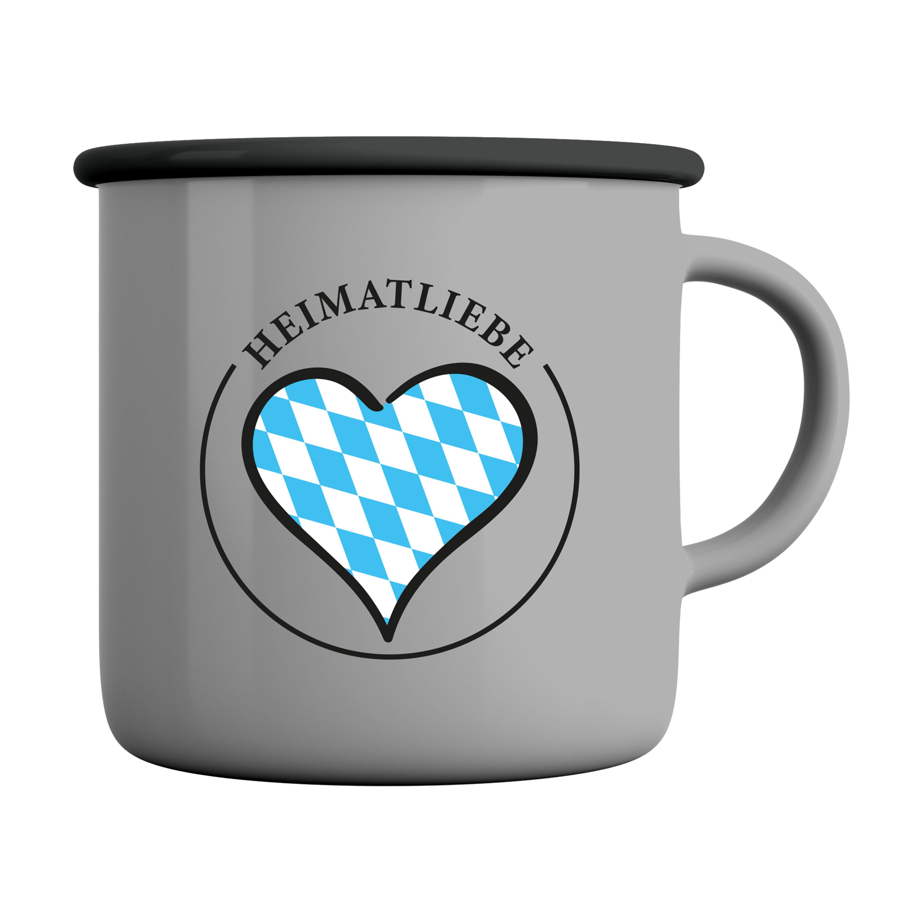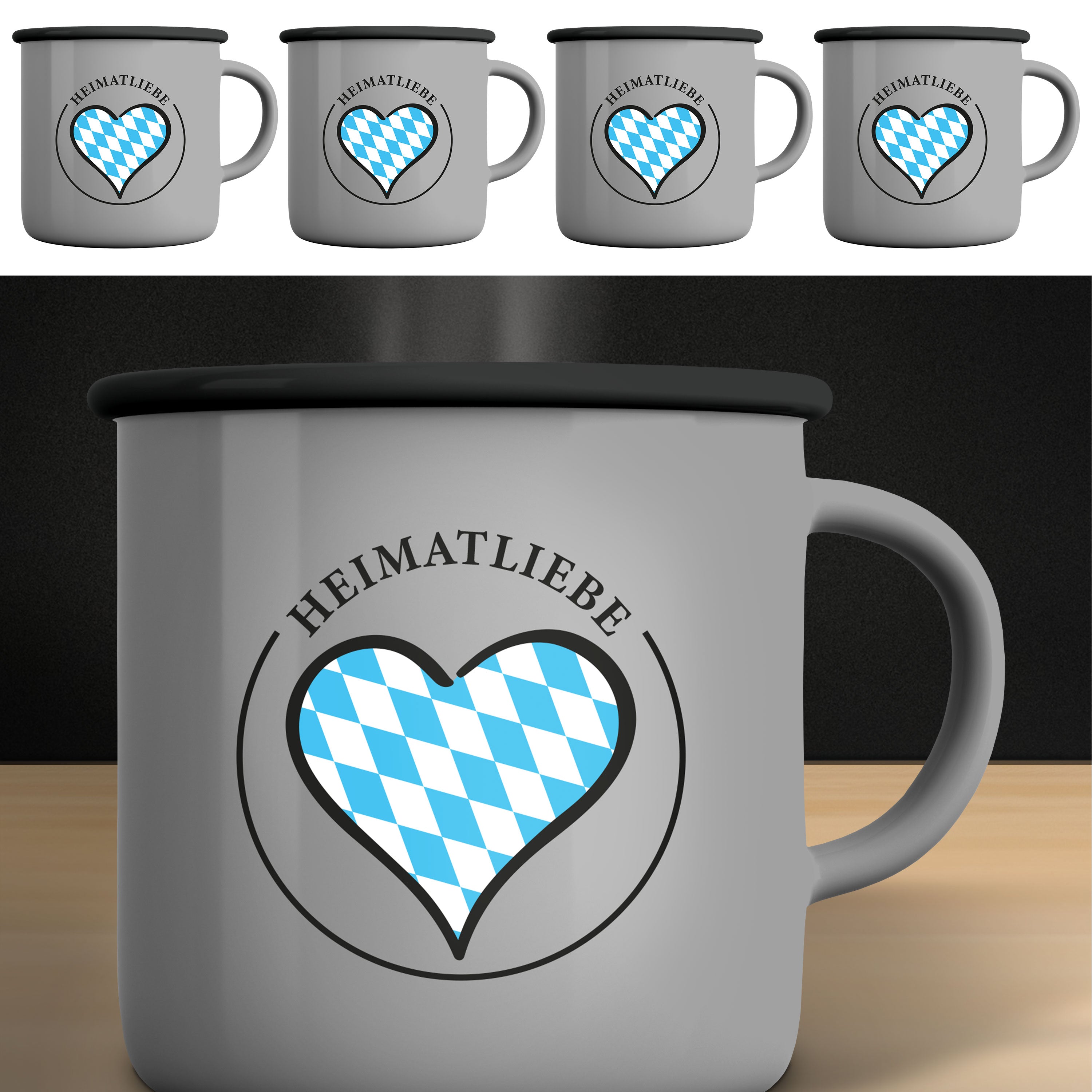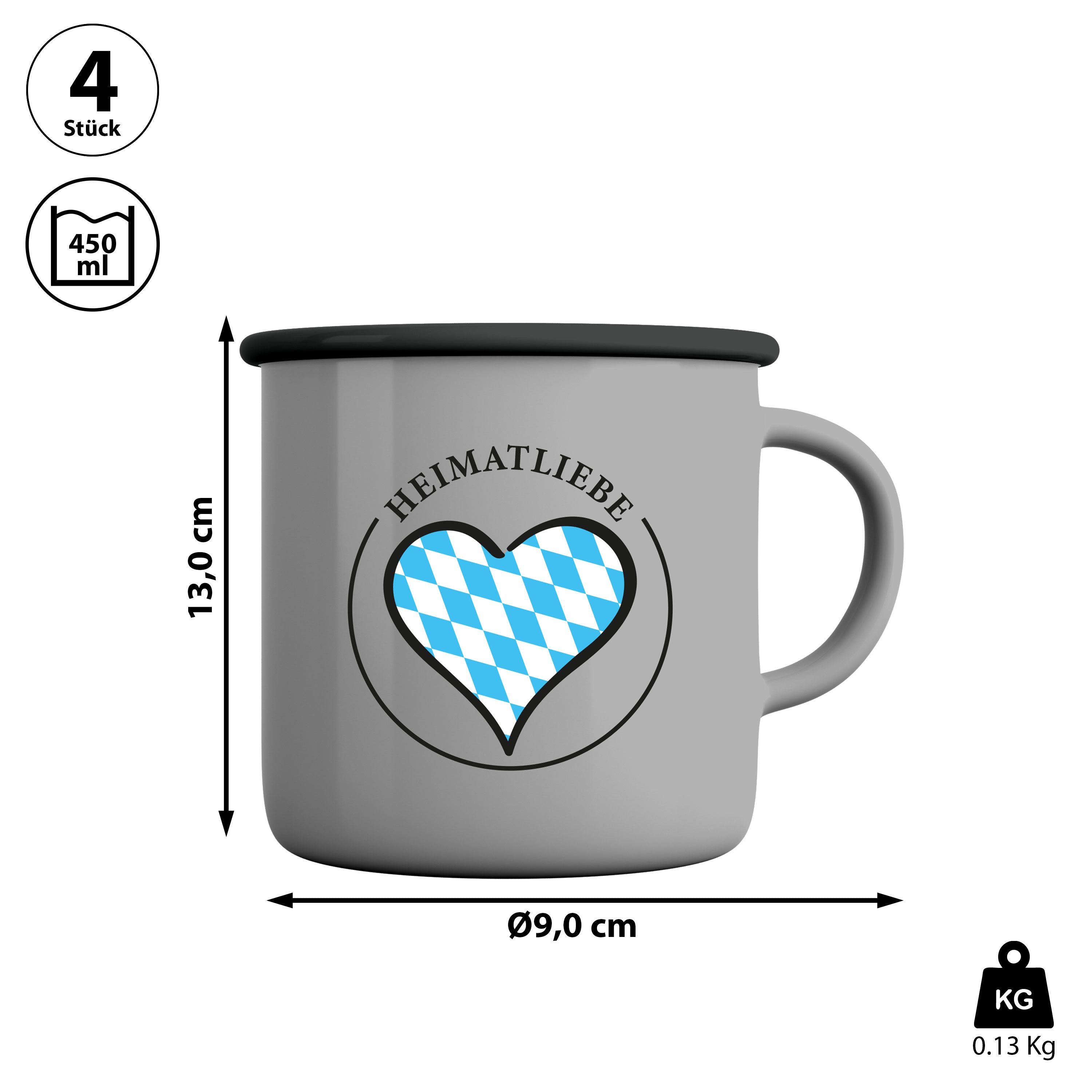 Kaffeebecher 'Heimatliebe' 4er Set 13x9cm Emaille Metall Becher Tasse 450 ml Teetasse Henkelbecher