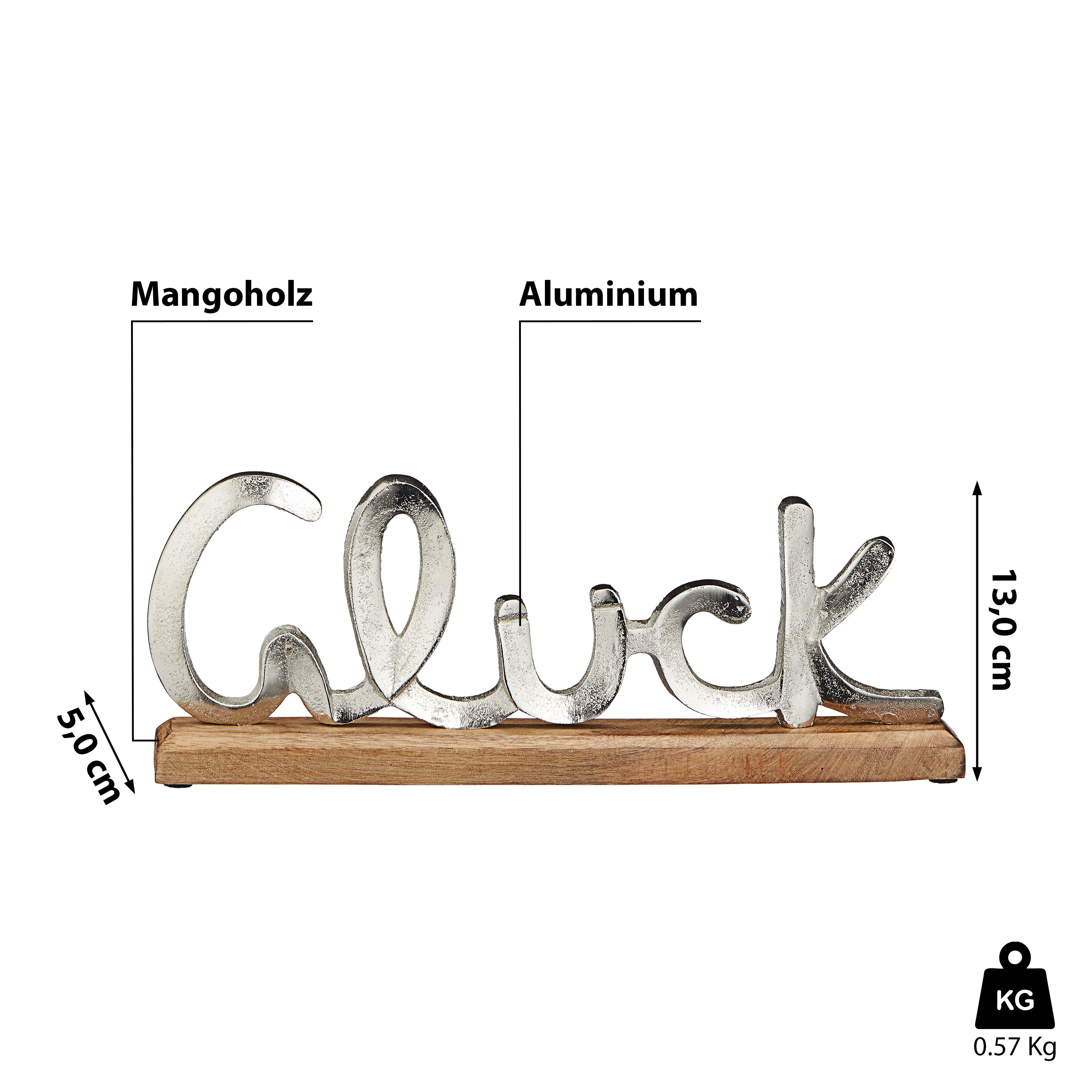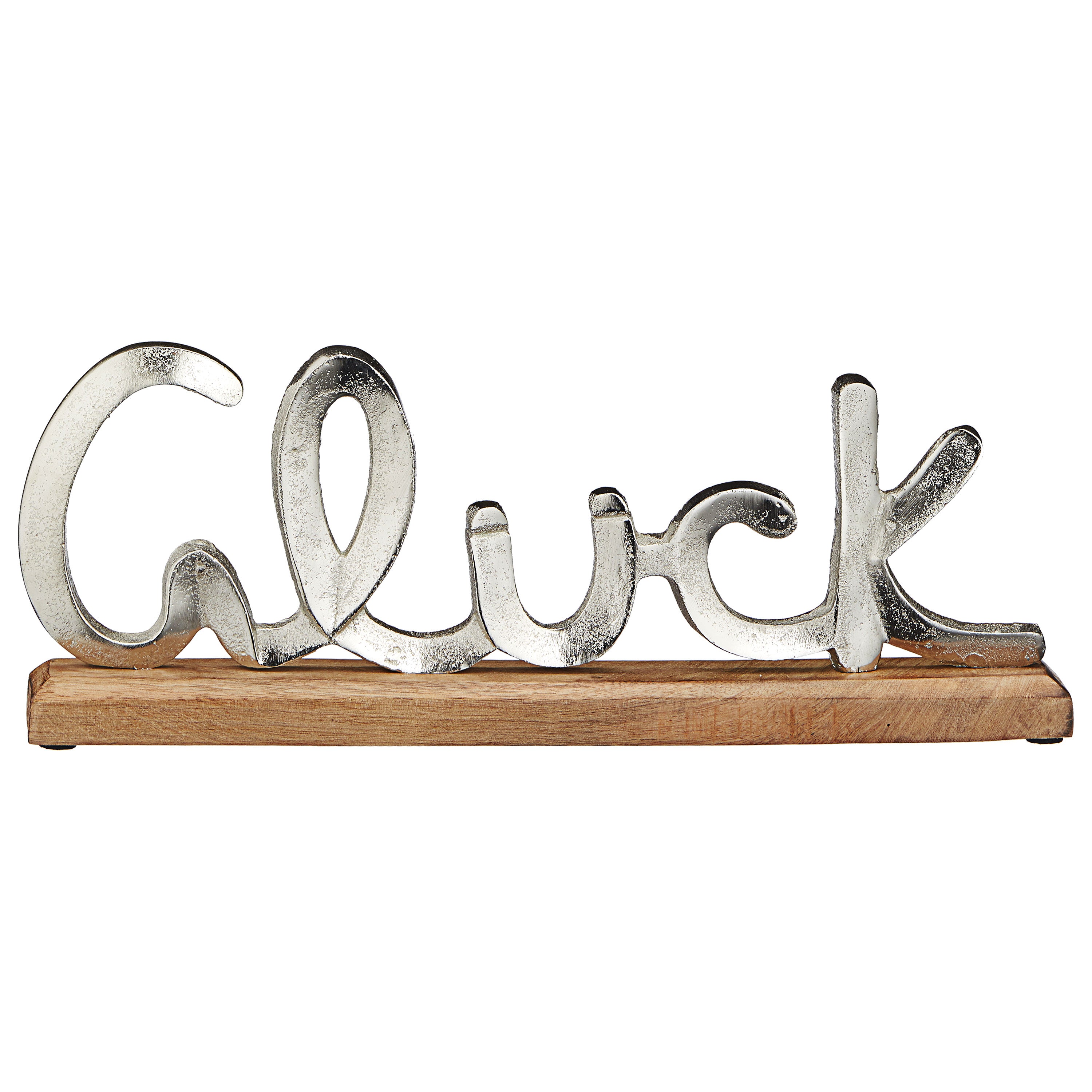 Schriftzug 'Glück' silber 40x13x5cm Mangoholz Aluminium Dekoaufsteller Tischdeko Aufsteller