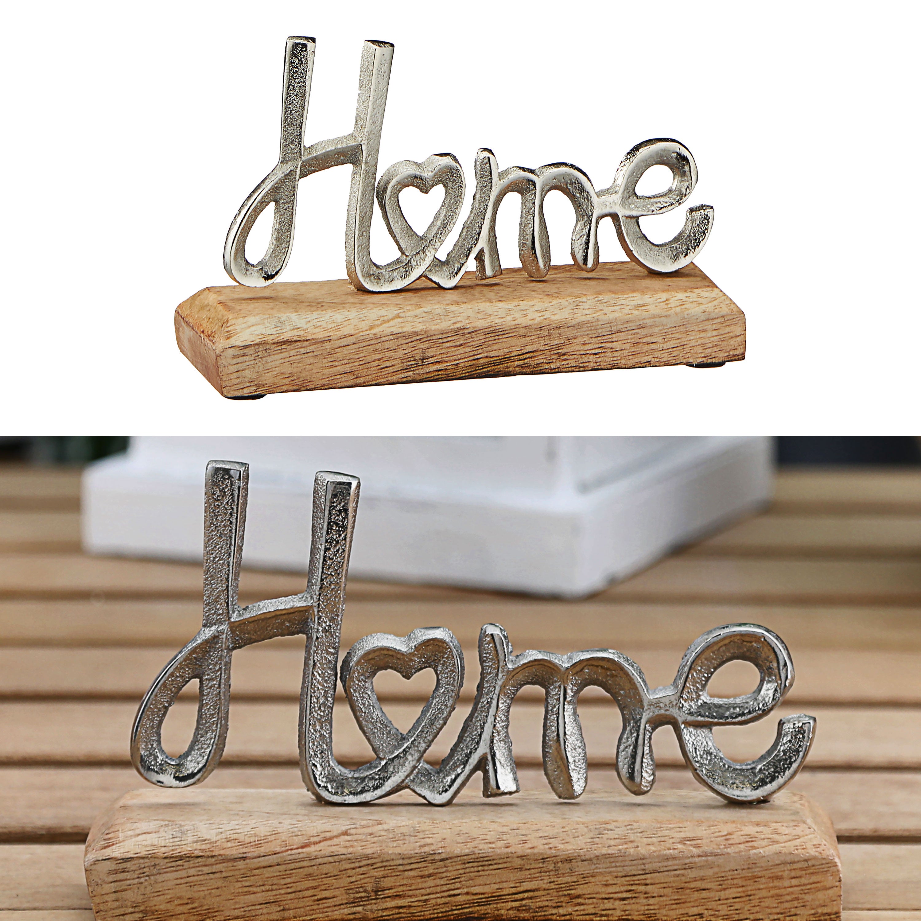 Schriftzug auf Holzsockel Home silber | ||||||||||||