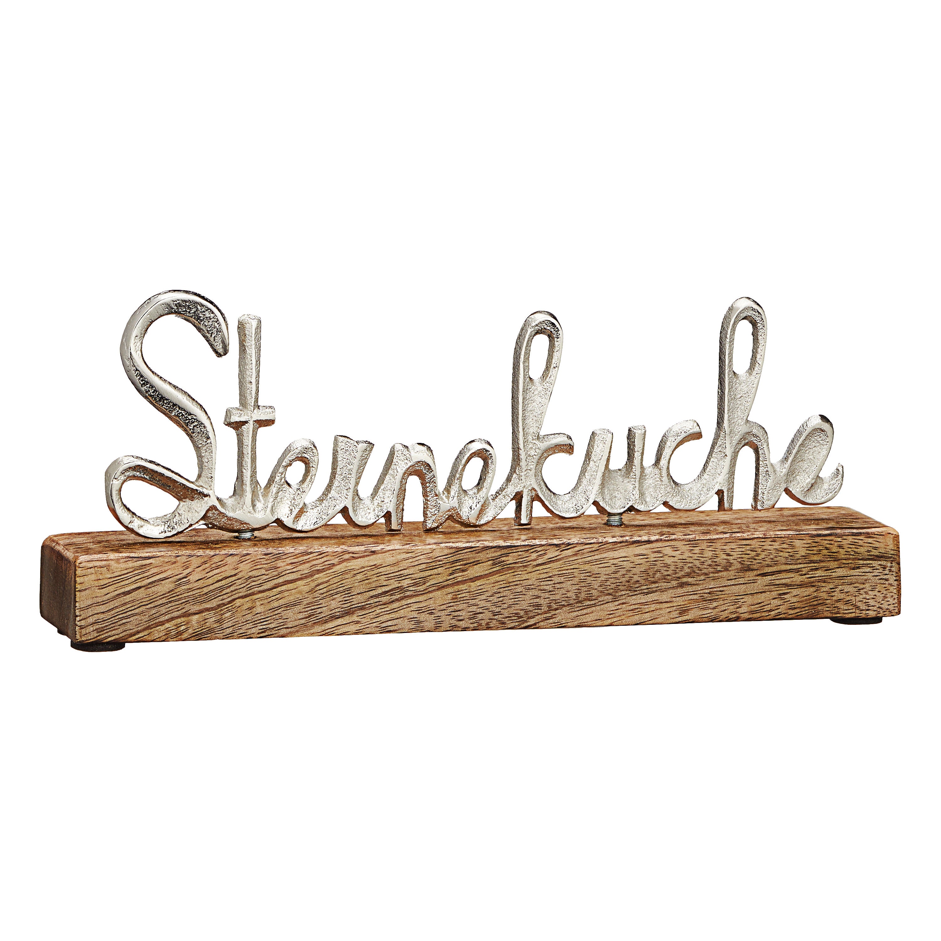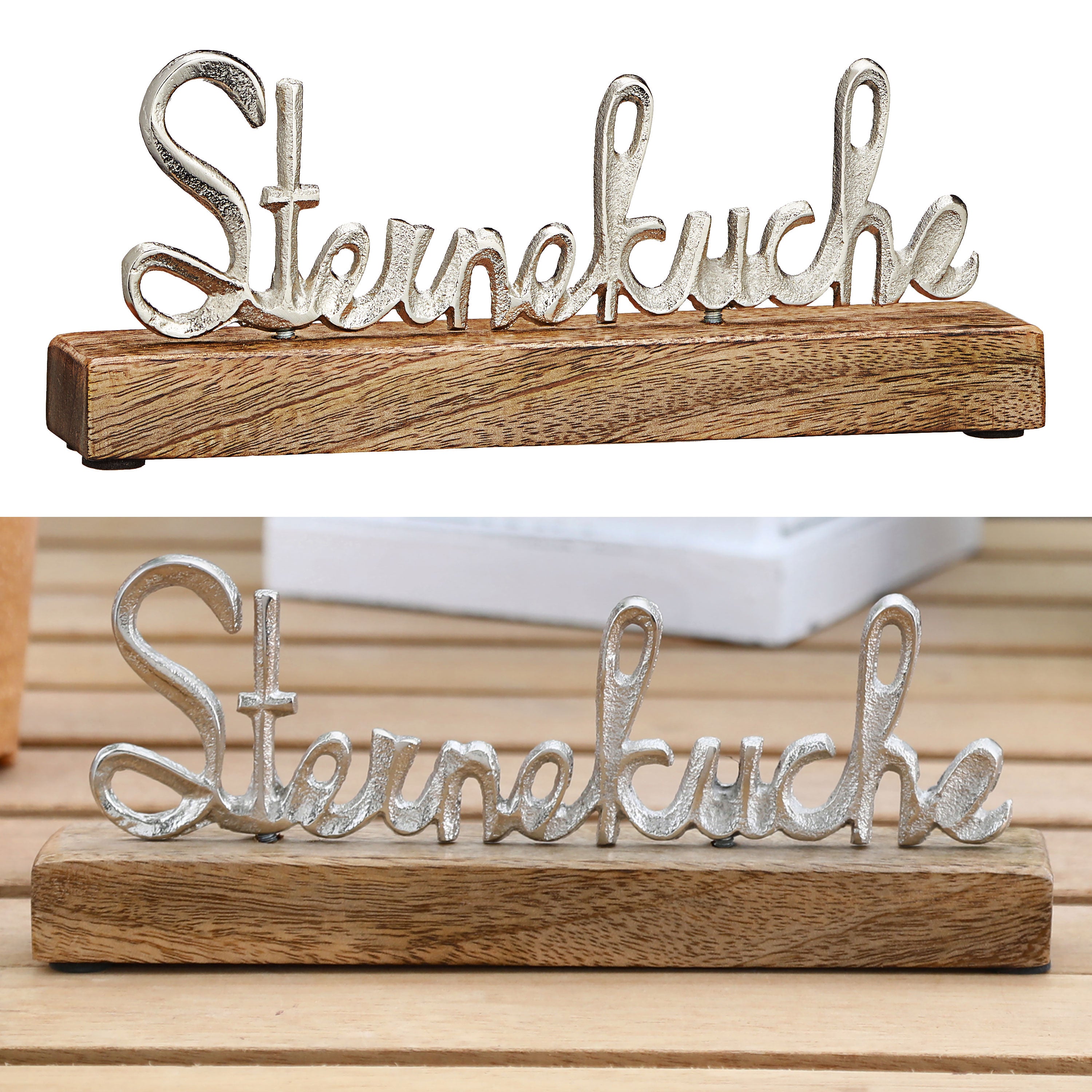 Schriftzug 'Sterneküche' silber 22x9x4cm Mangoholz Aluminium Dekoaufsteller Tischdeko Aufsteller