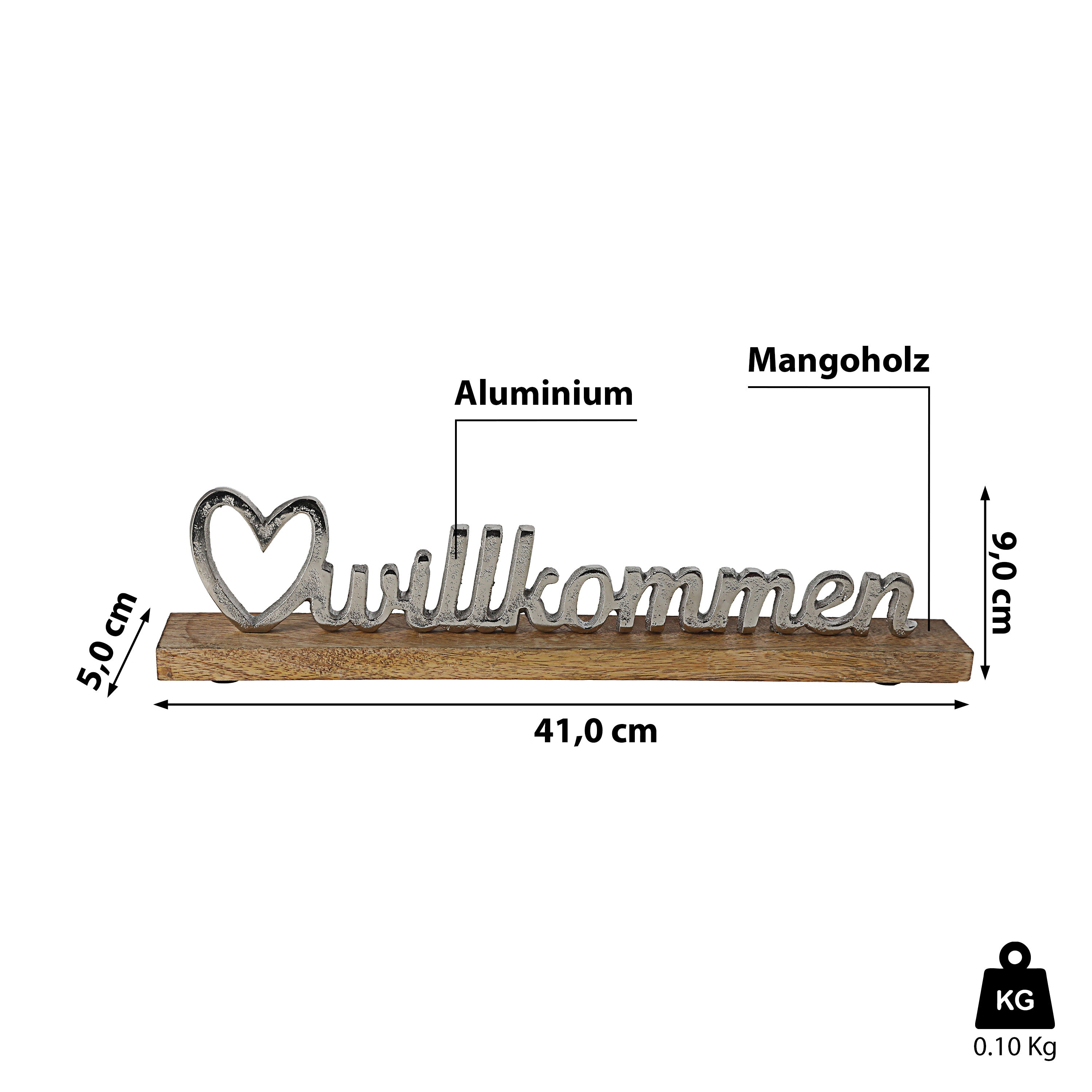 Schriftzug auf Holzsockel Willkommen silber | ||||||||||||