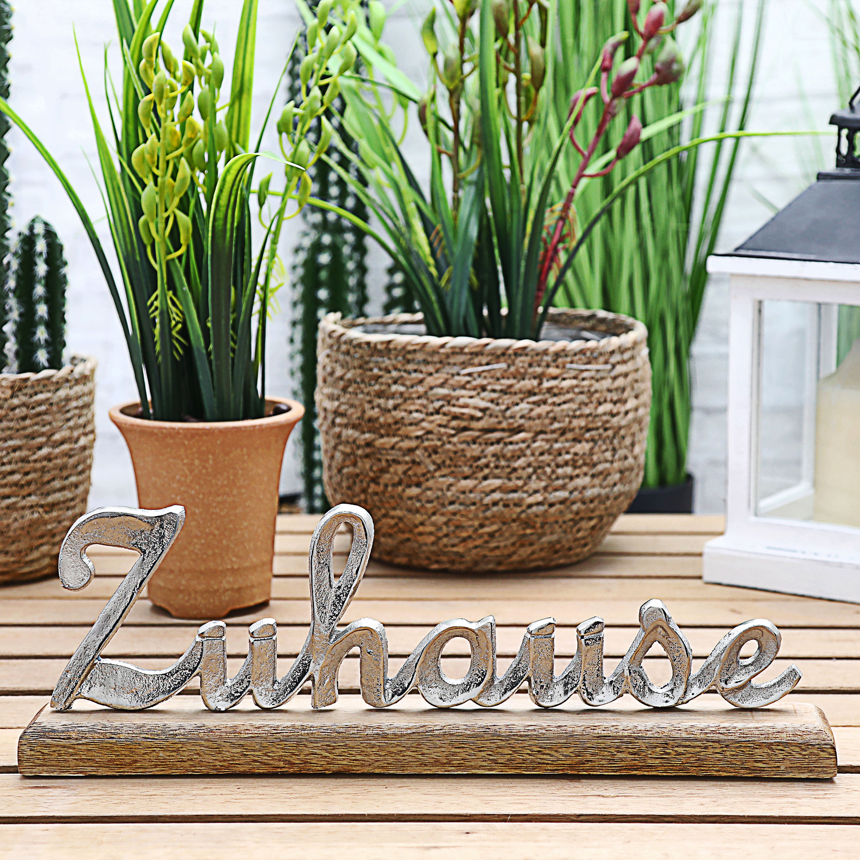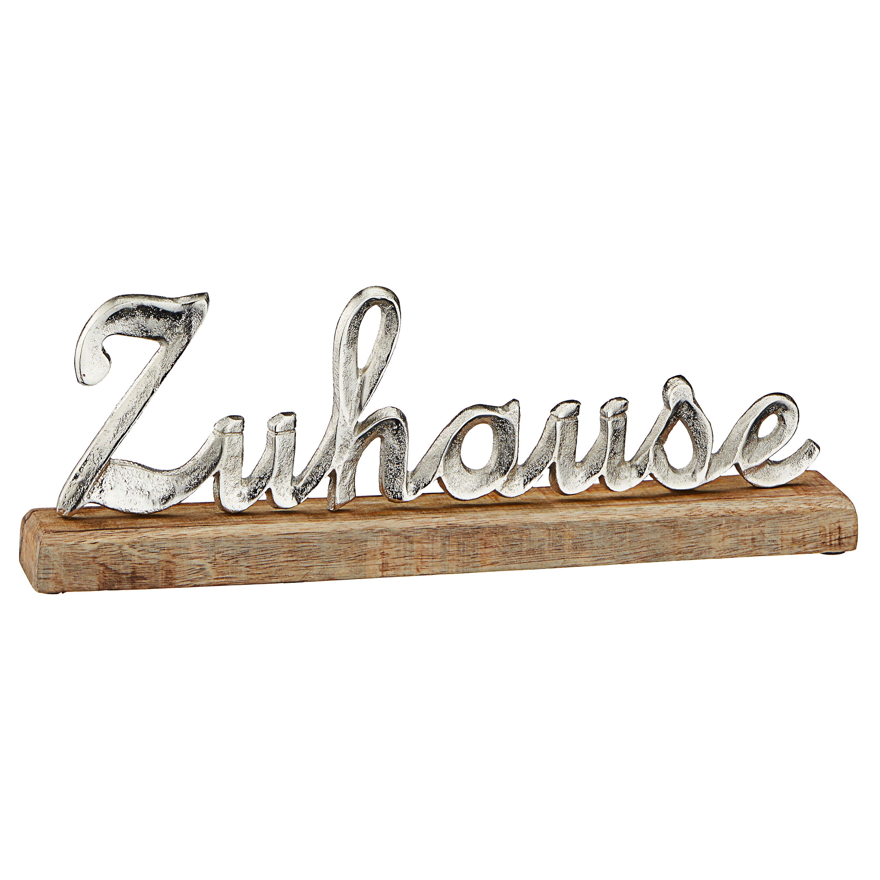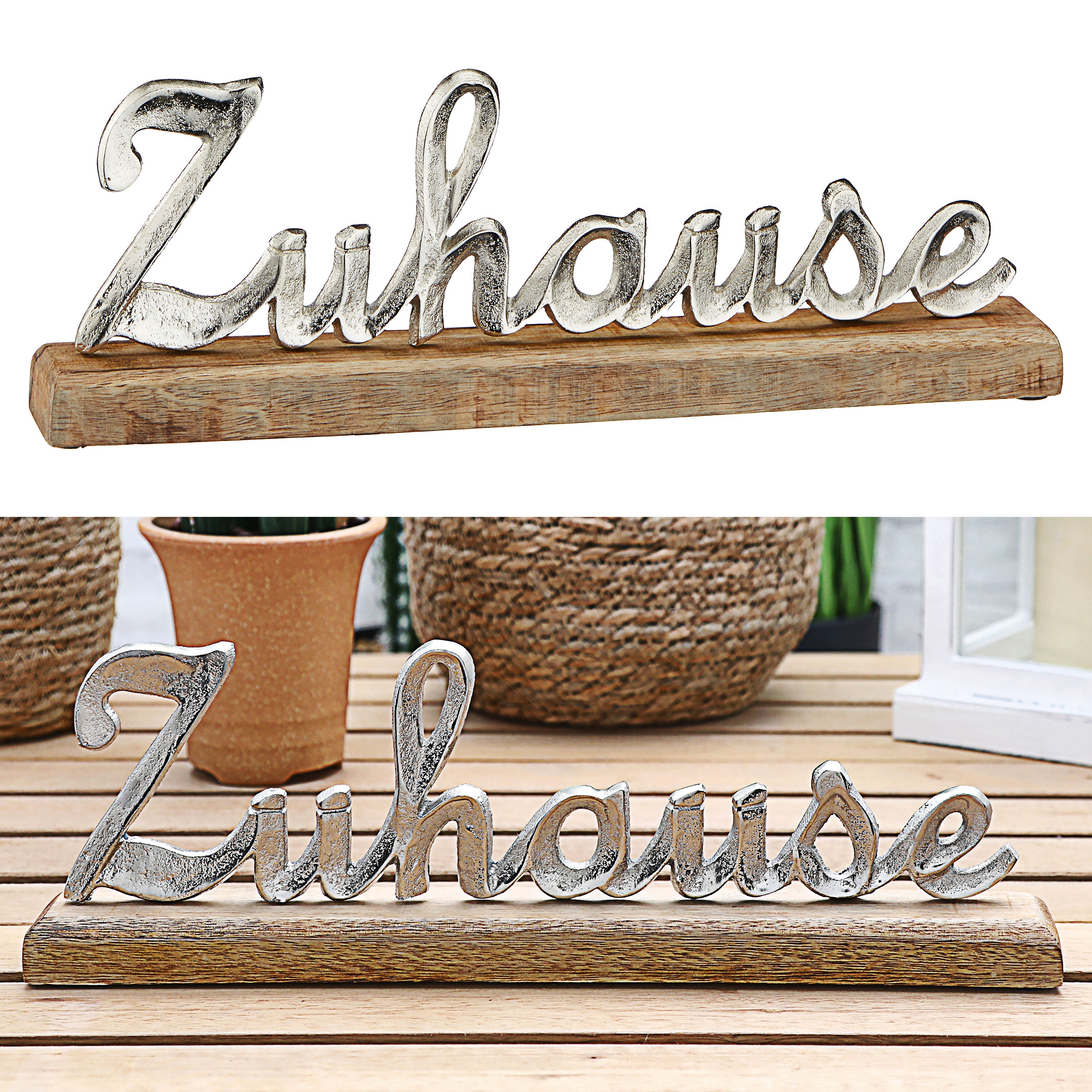 Schriftzug 'Zuhause' silber 40x13x5cm Mangoholz Aluminium Dekoaufsteller Tischdeko Aufsteller