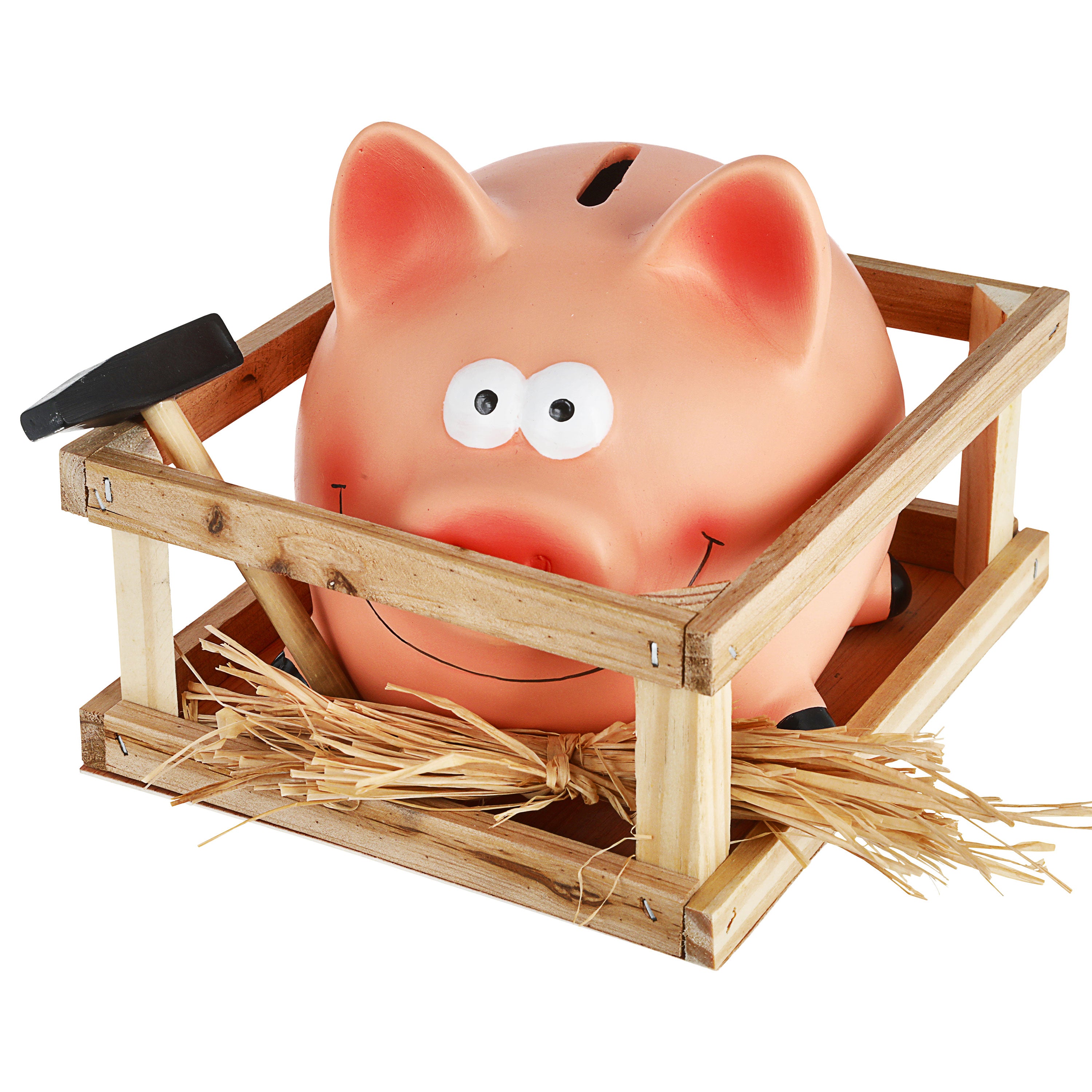 Sparschwein Stall Hammer rosa 14x12cm Steingut Holz Spardose Sparbüchse Schwein Gatter Holzverschlag