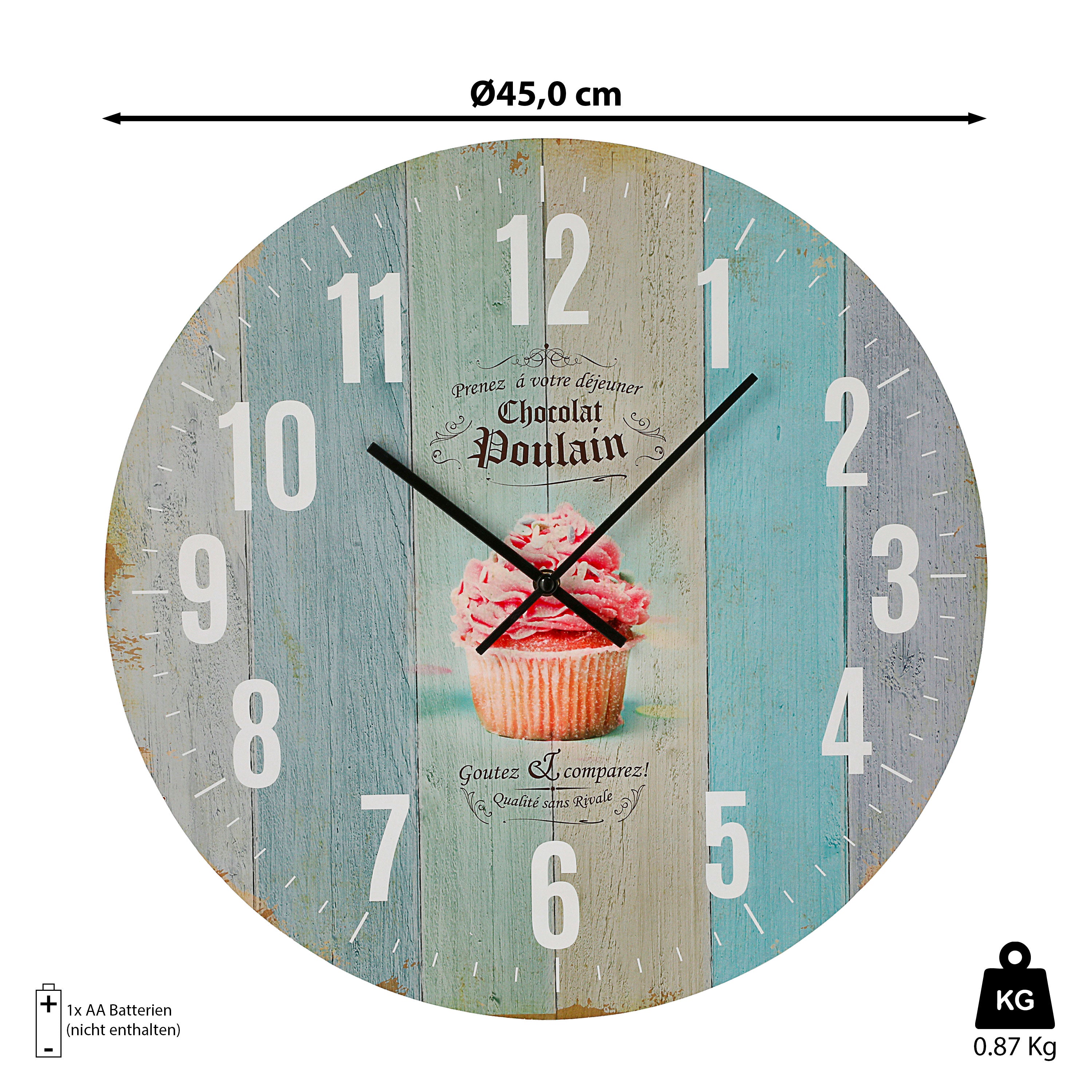 Wanduhr Nostaglie Ø45x4,5cm bunt Retro Küchenuhr Dekouhr Uhr Wohnzimmeruhr batteriebetrieben