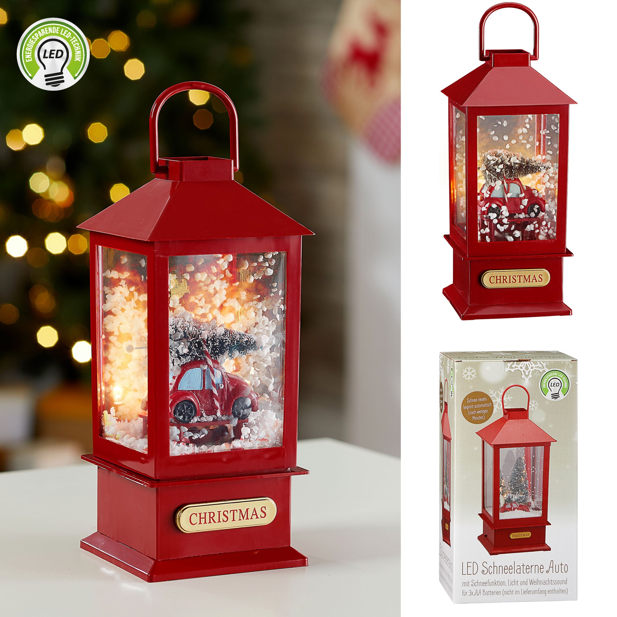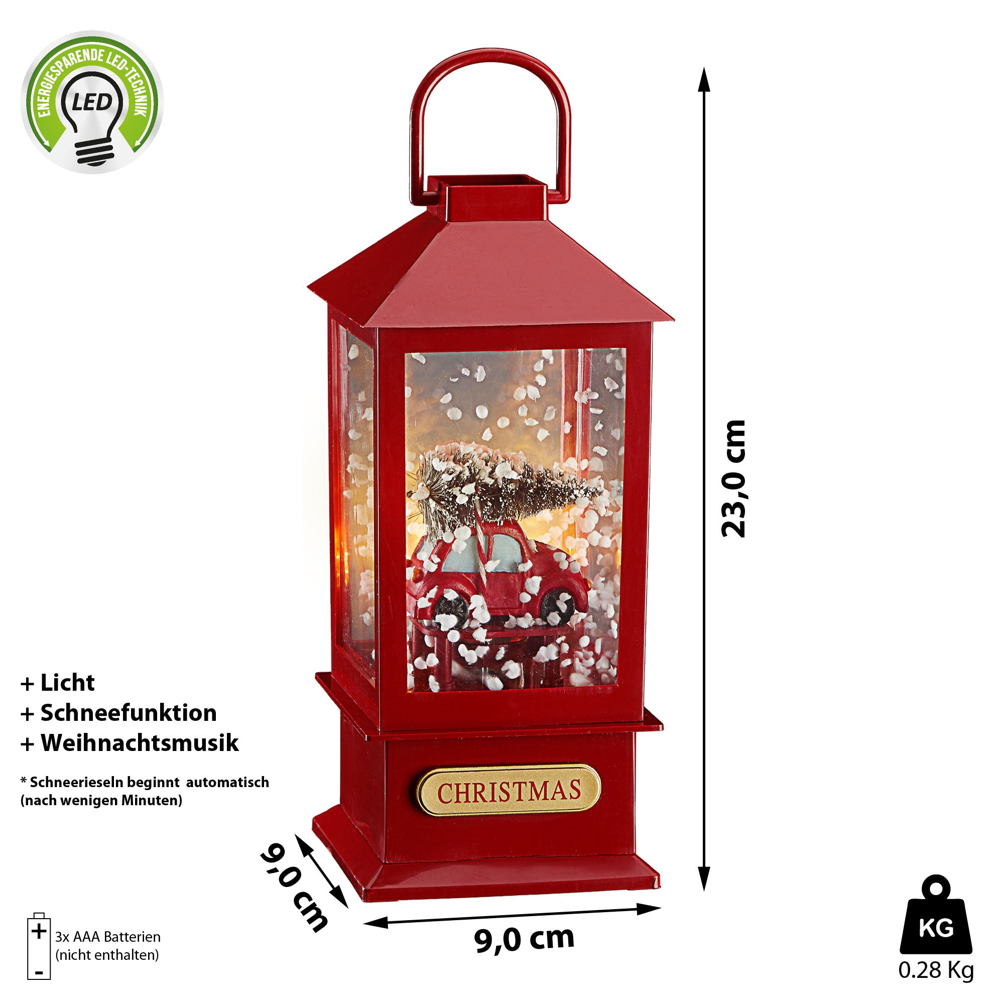 LED Schneelaterne Auto 17x40cm 18 LEDs warmweiß Kunststoff Schneefunktion Weihnachtsmusik Weihnachtsbeleuchtung Lampe