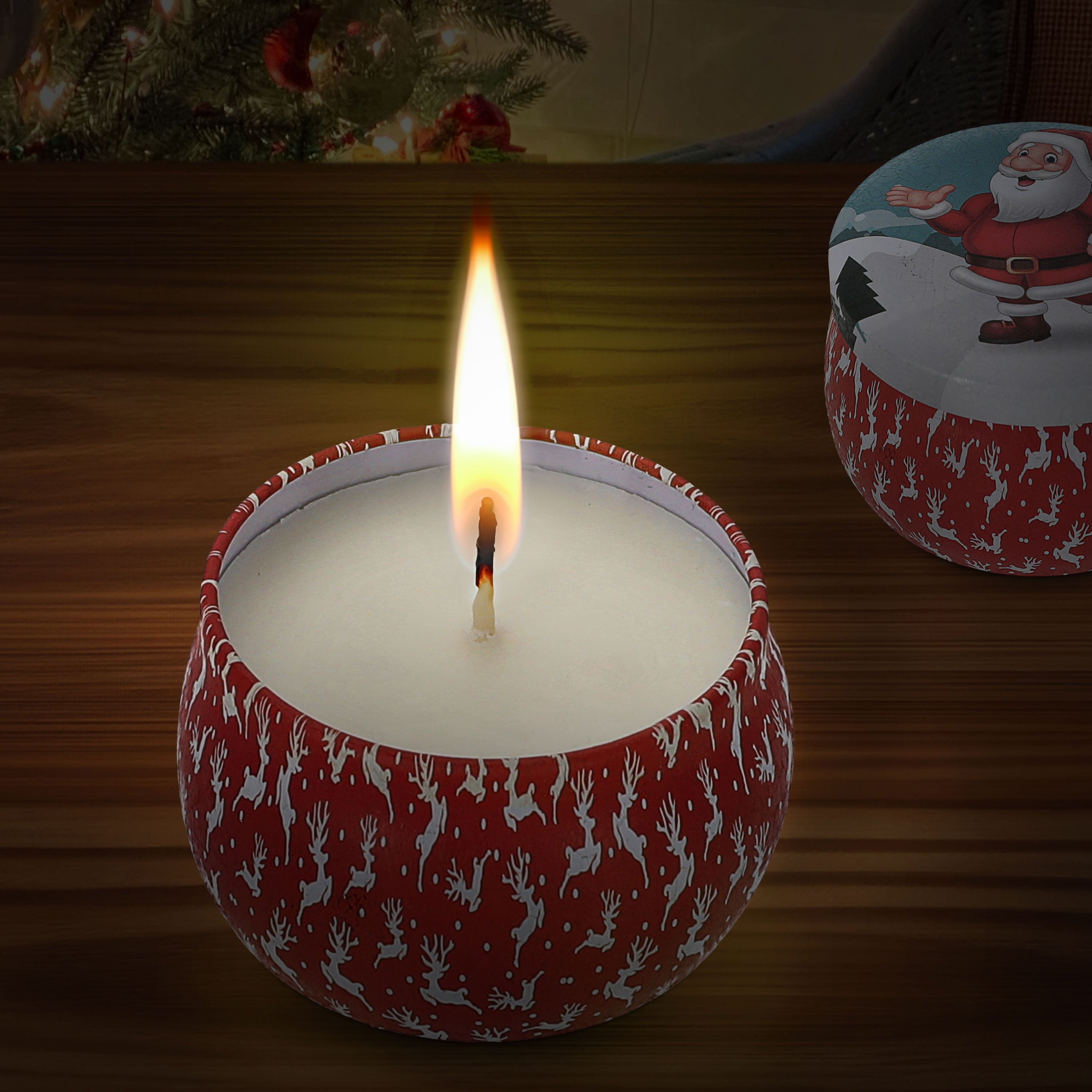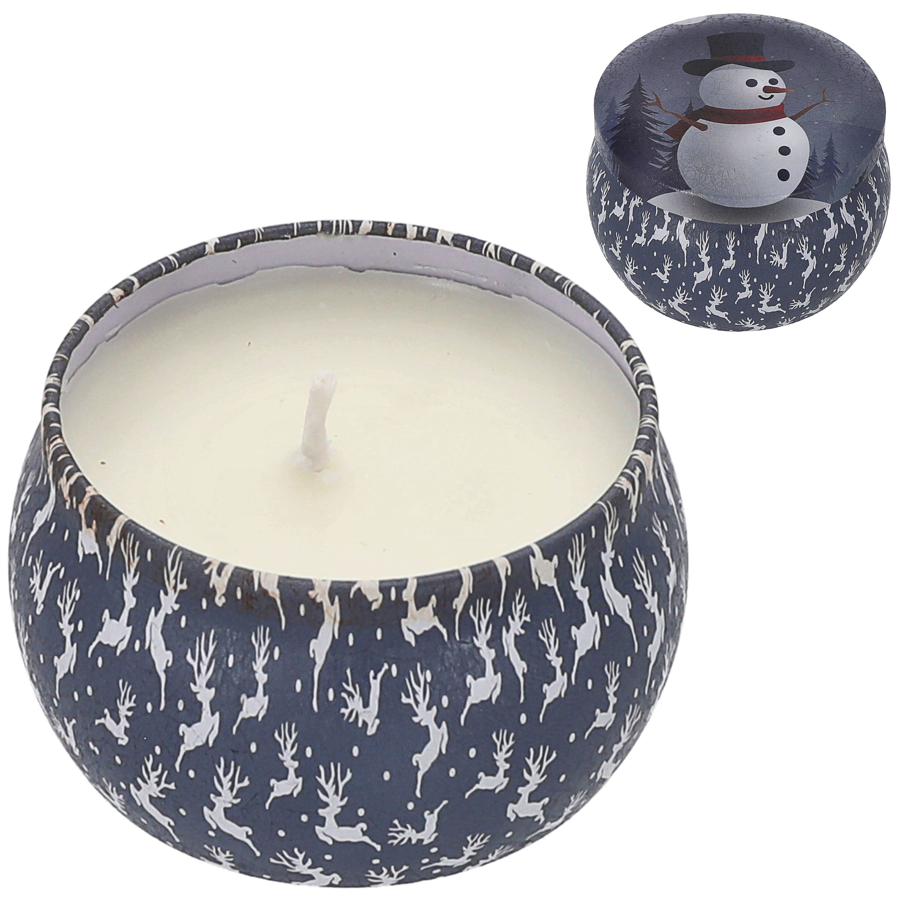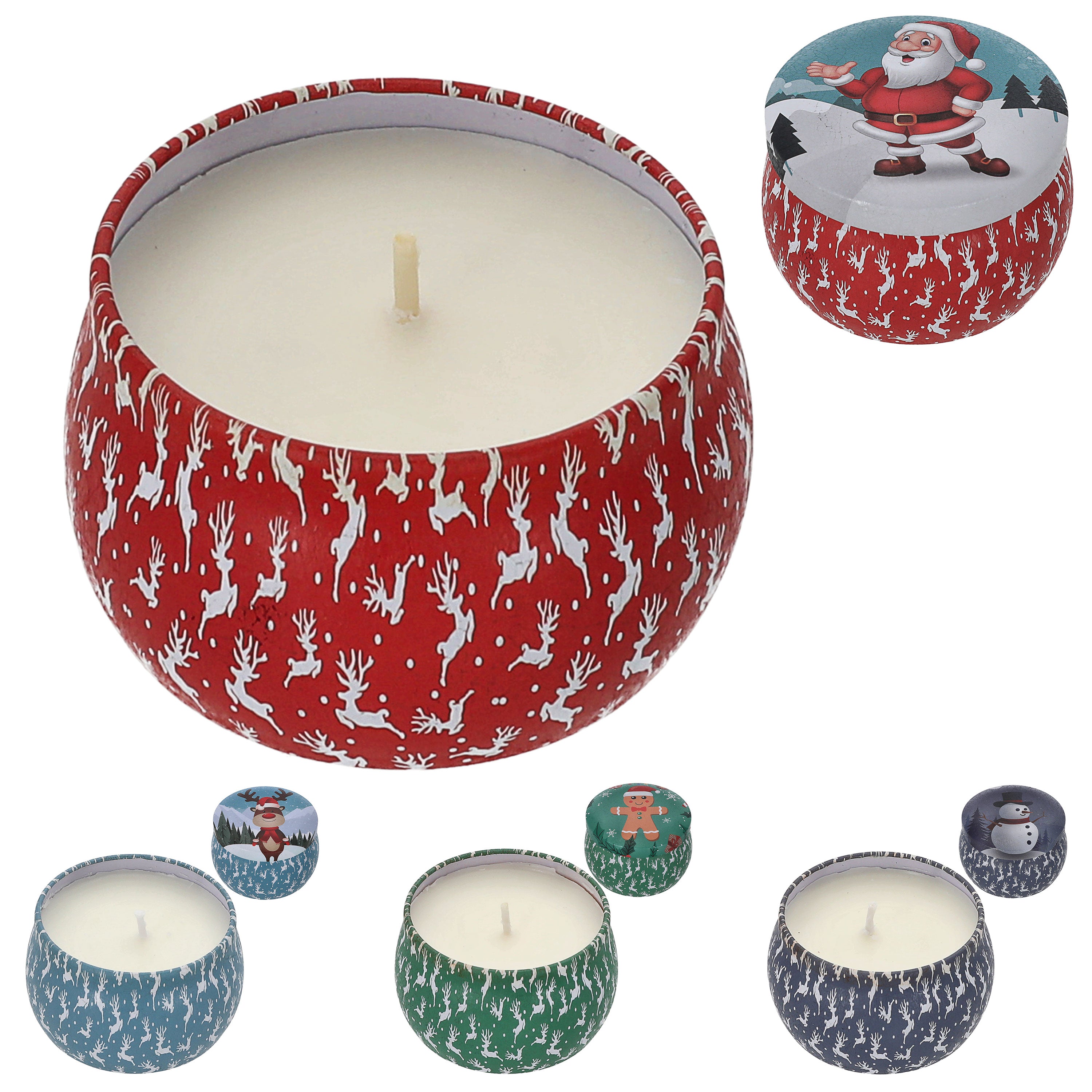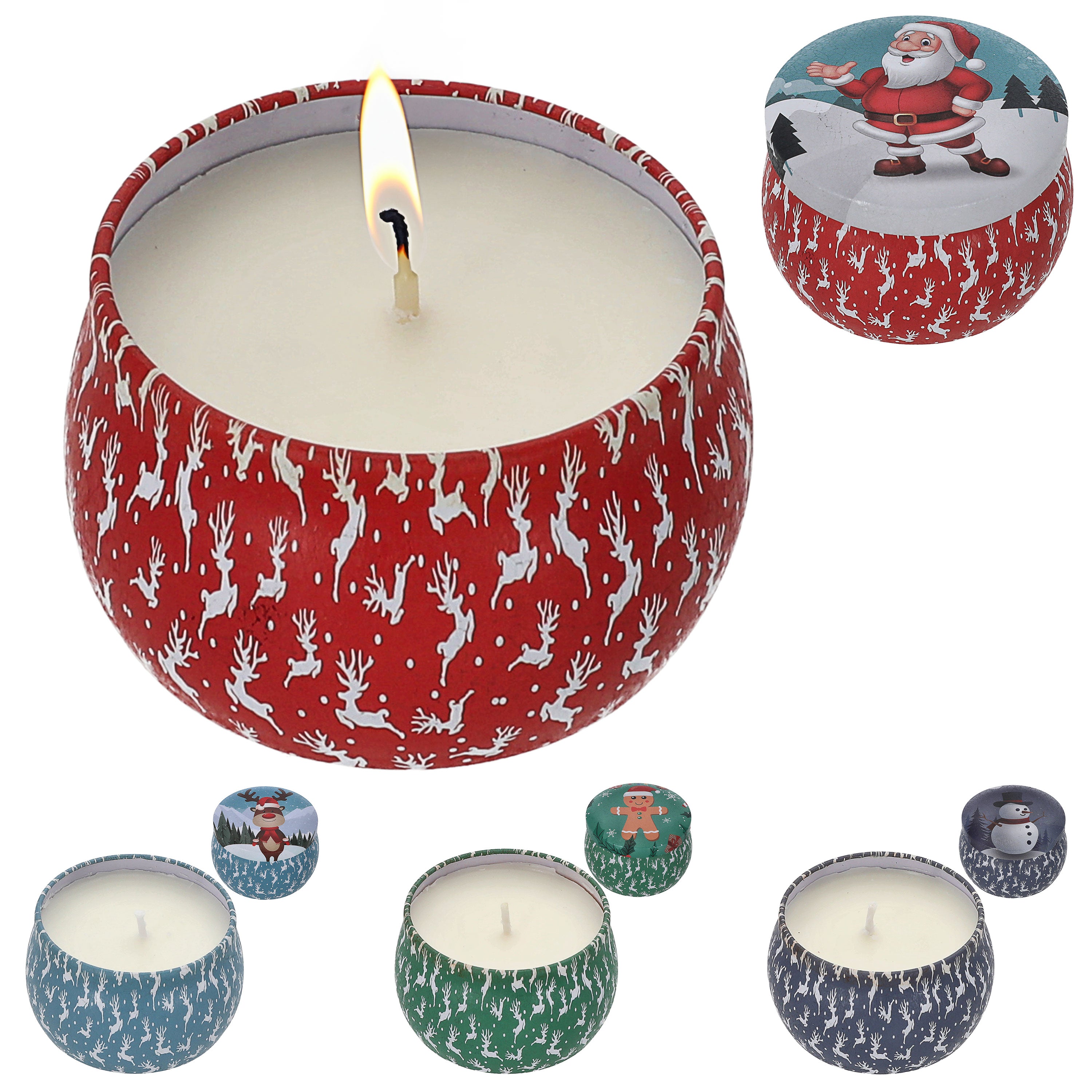 Duftkerze in Dose 4er Set Paraffin Metall 8x5cm 125g Weihnachtsmotive Weihnachtskerzen Kerze Duft Metalldose