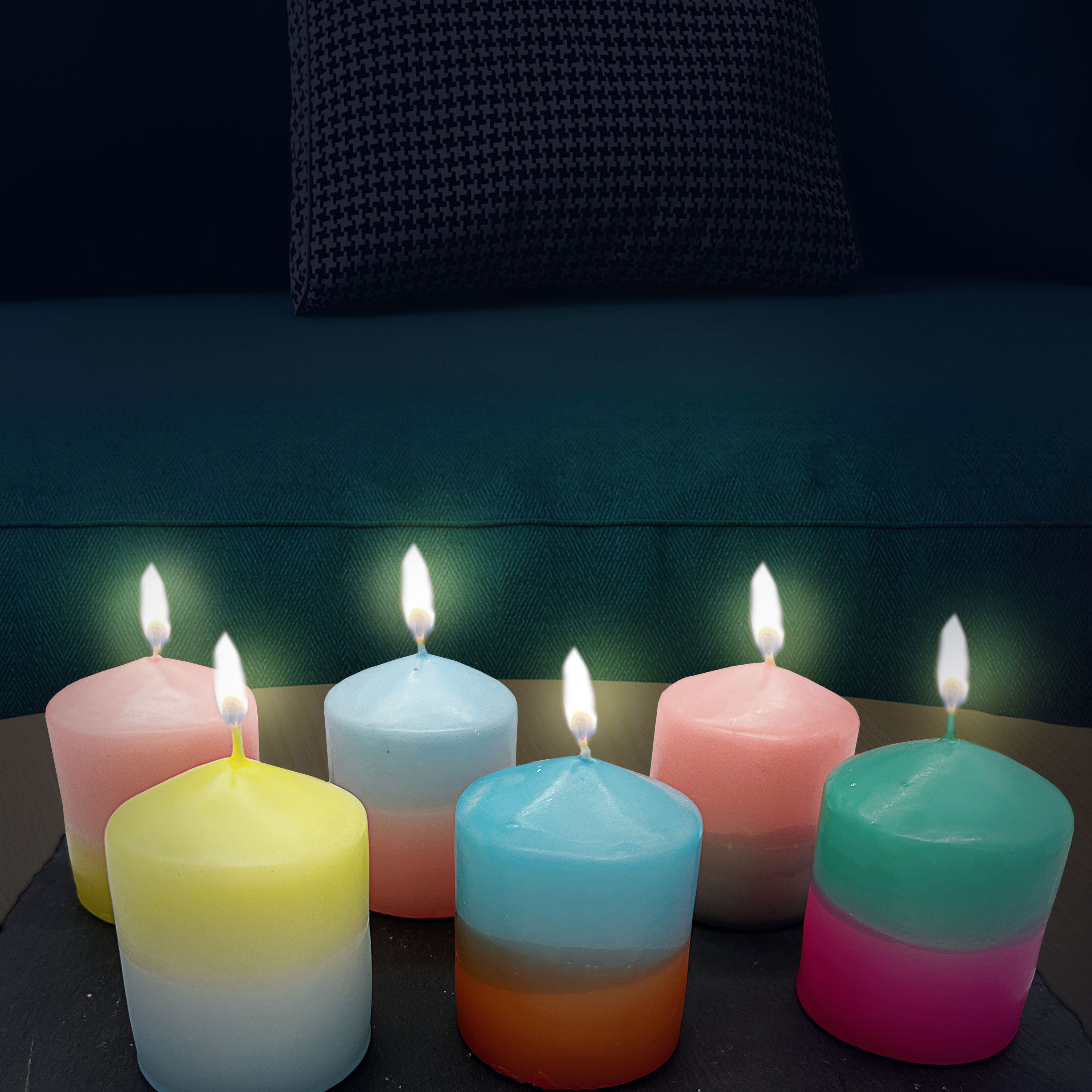 6er Set Stumperkerzen mit verschiedenen Farbverläufen | ||||||||||||