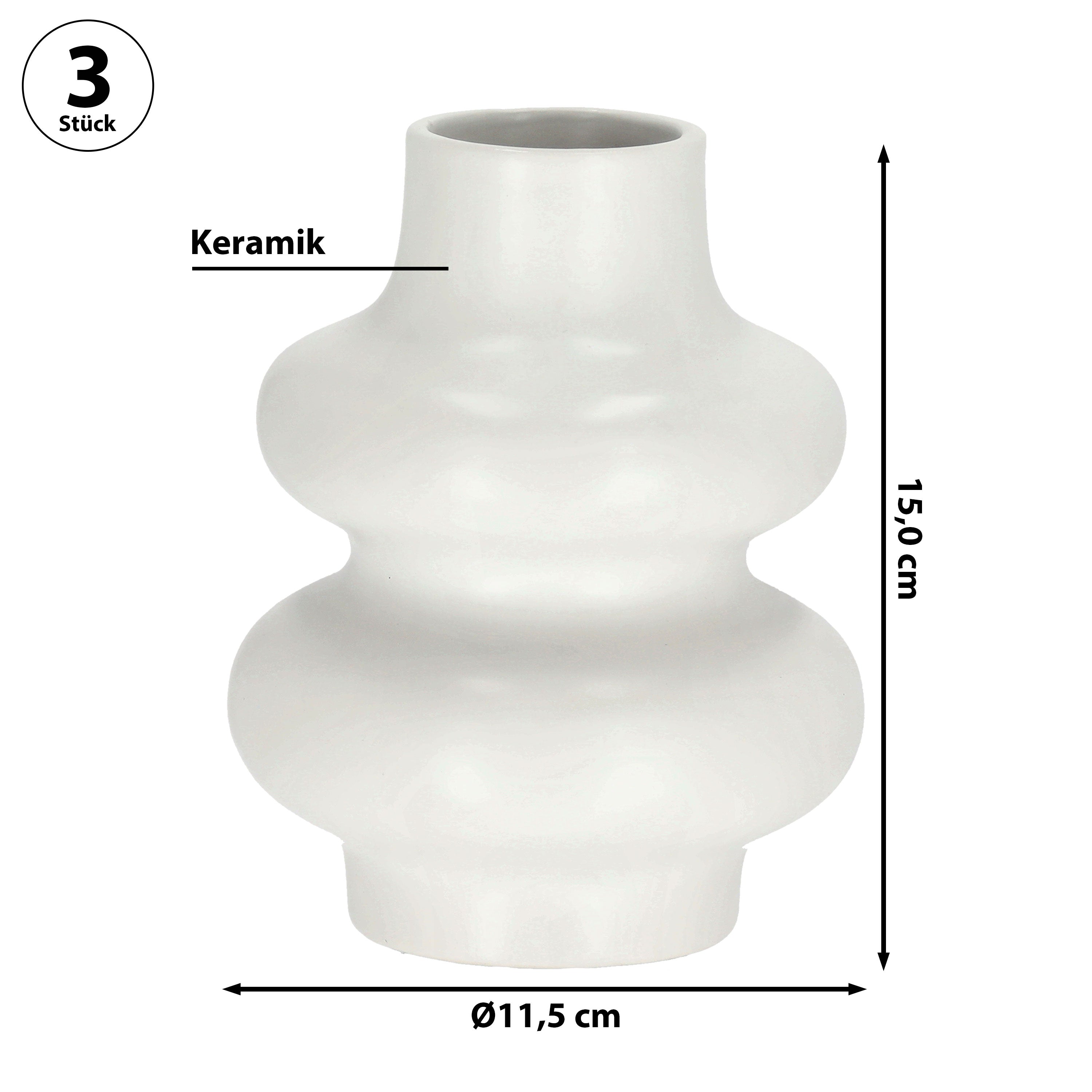 Vase Spirale 3er Set 11,5x15cm weiß Dolomit Blumen Gräser Pflanzen Dekovase Blumenvase Spiralstil