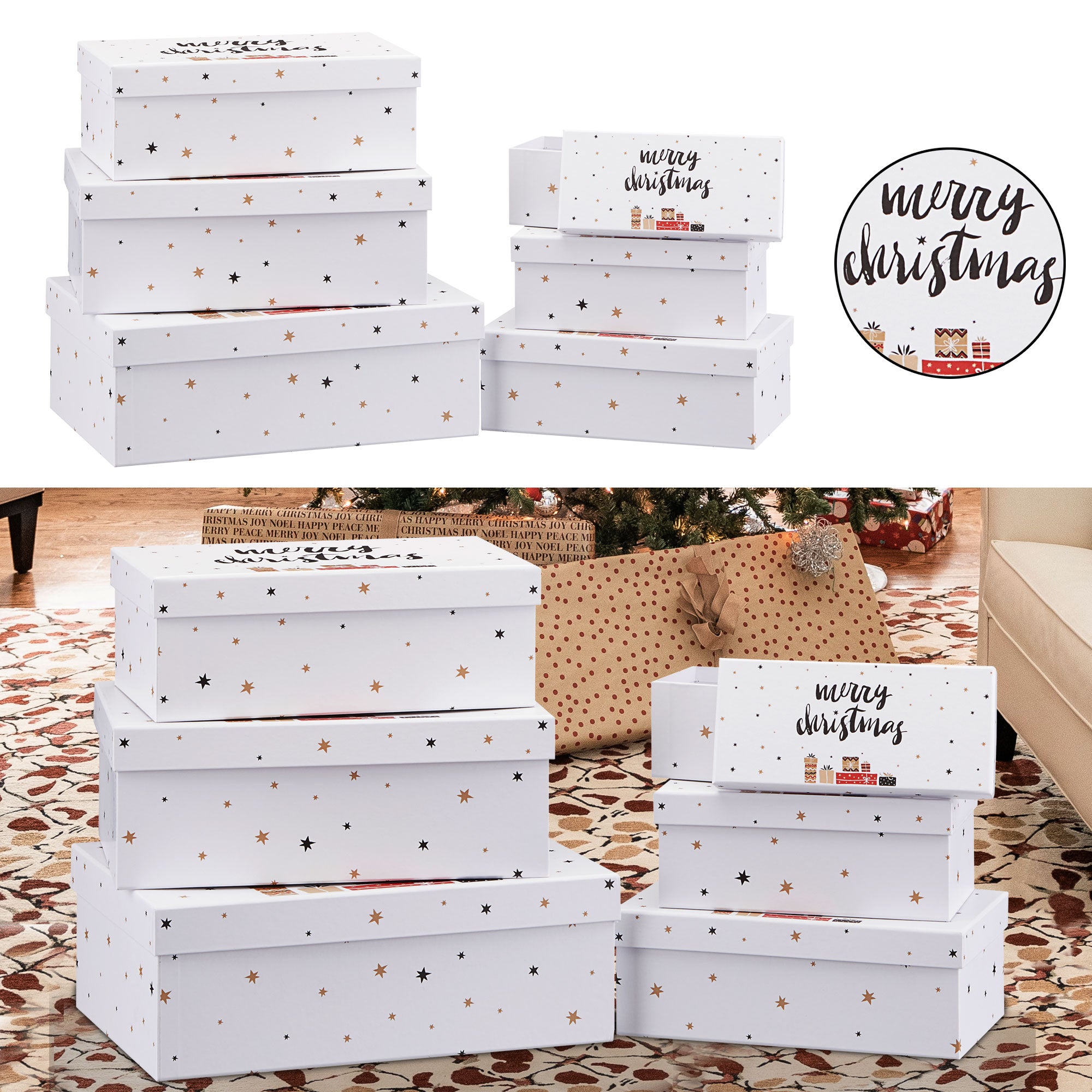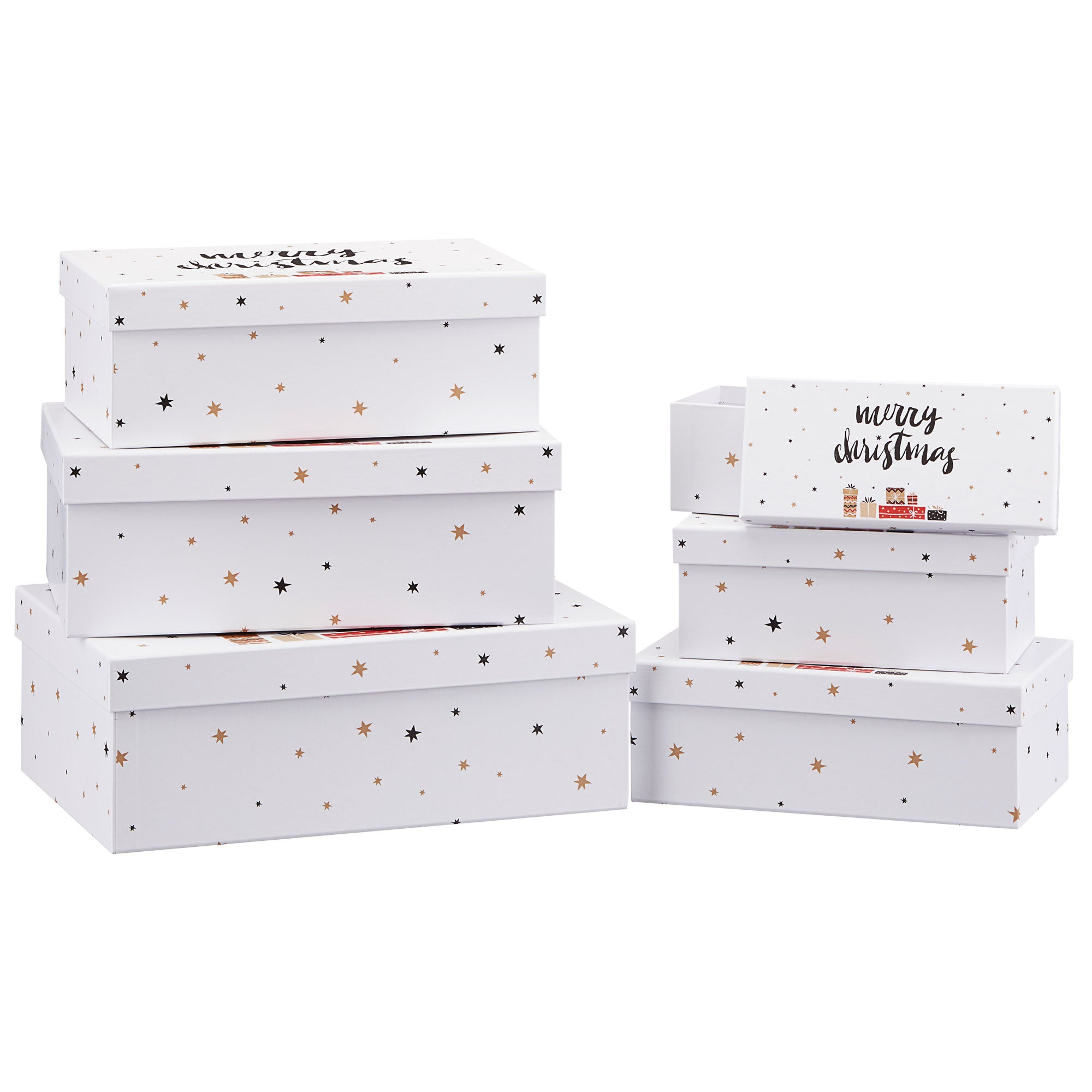 Boxenset 6tlg "Merry Christmas" weiß/schwarz Weihnachtsgeschenke Geschenkboxen Tannenbaum Rentier Schachteln Boxen Verpackung