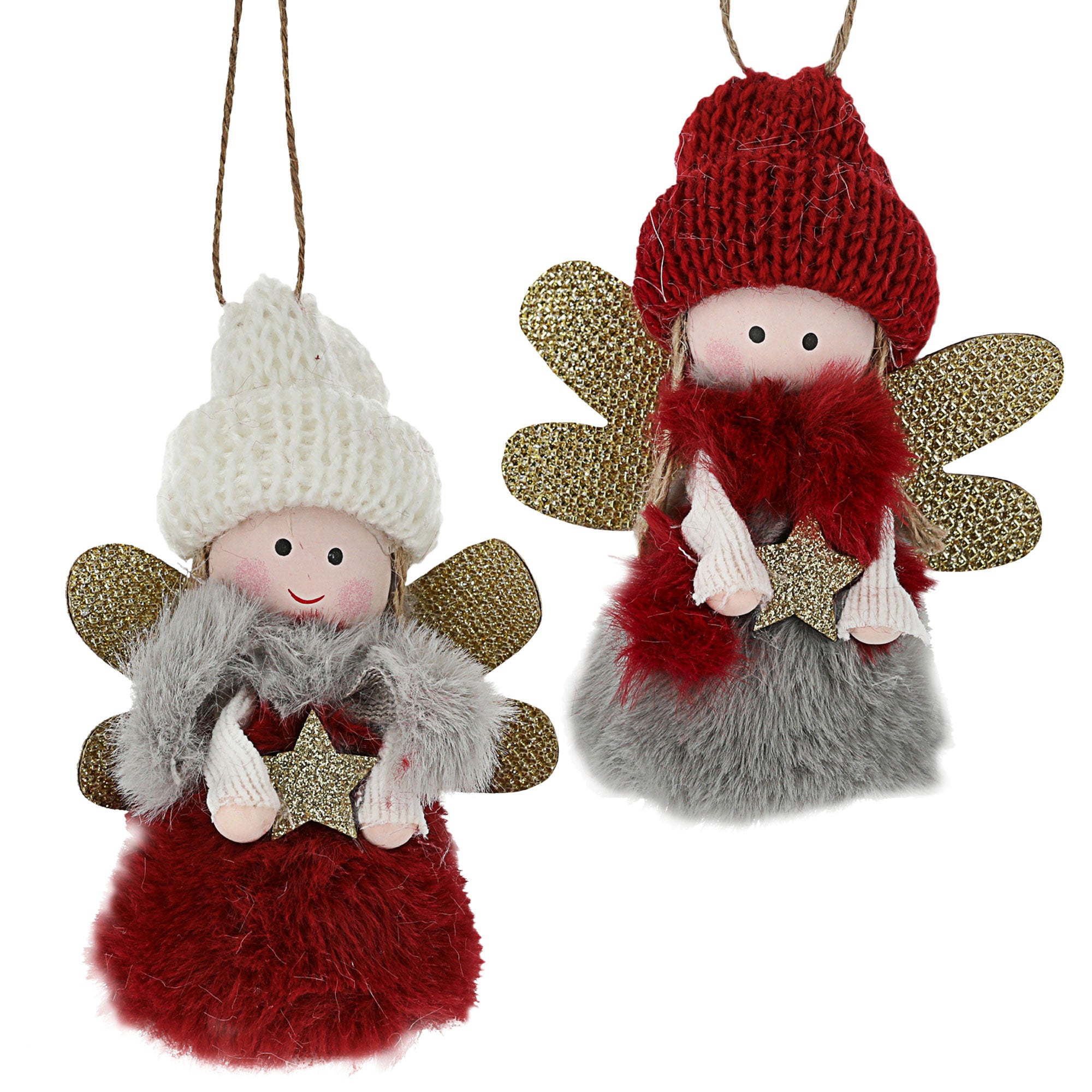 Dekoengel 4er Set zum Aufhängen H11cm verschiedene Motive Plüschengel Mädchen Engel Puppe Weihnachtsengel