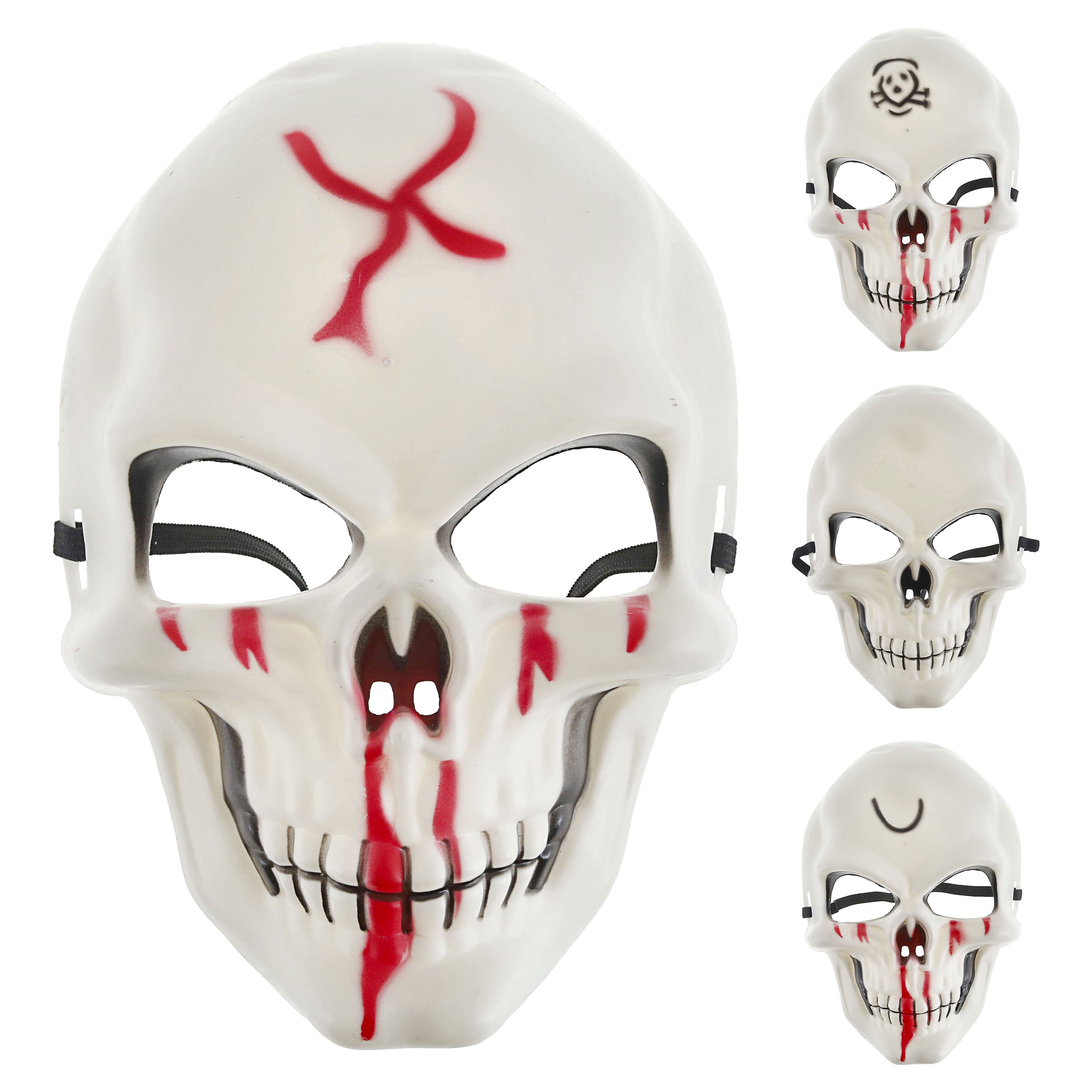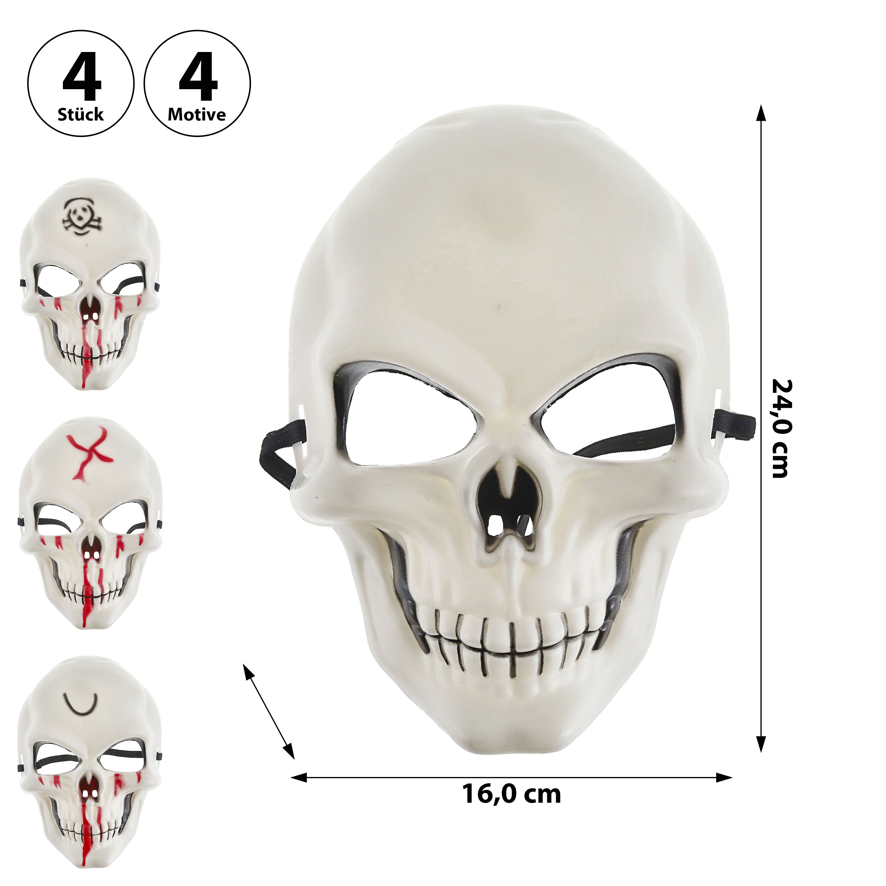 Halloween Totenkopf Maske 4er Set weiß rot 16x24cm Kunststoff Gesichtsmaske Totenschädel Horrorkostüm 4 Motive